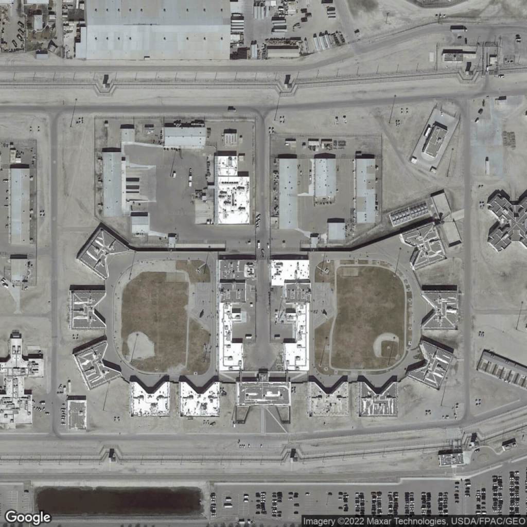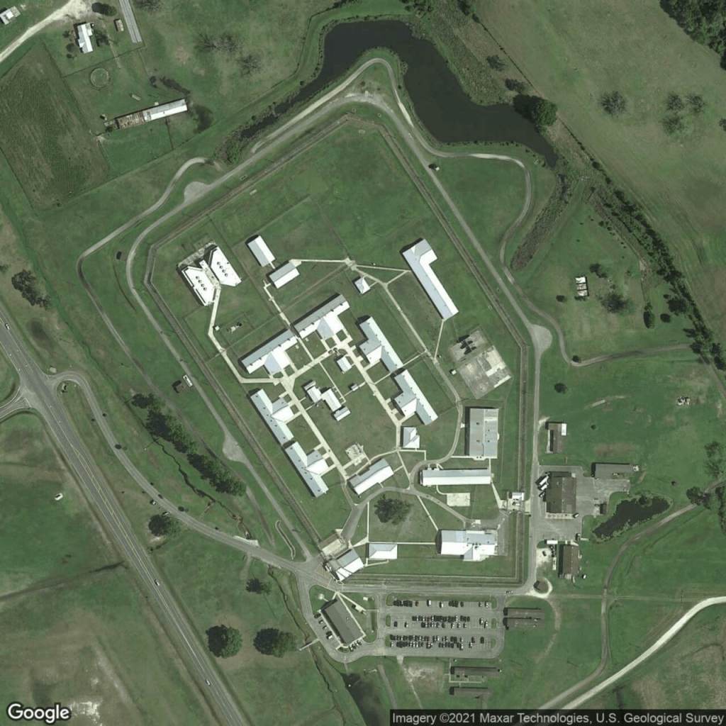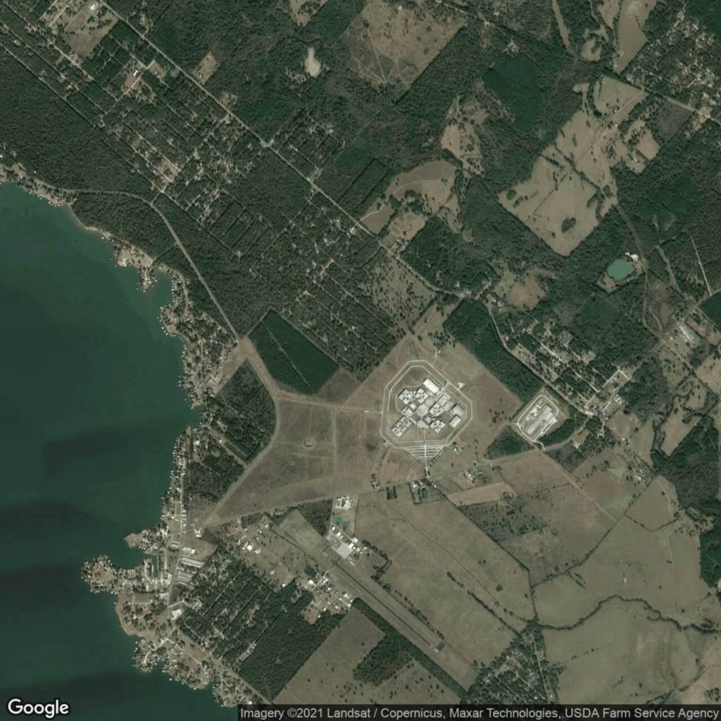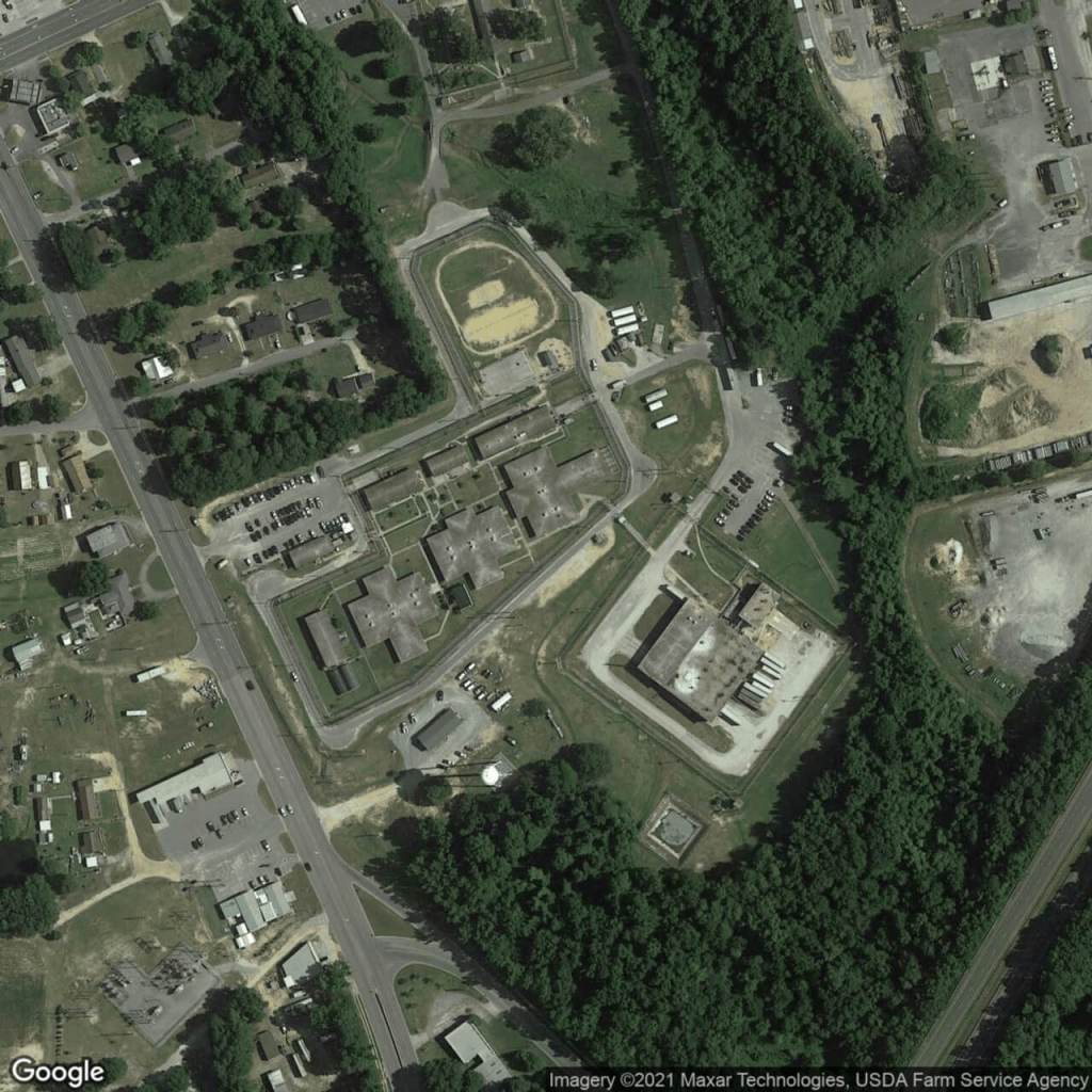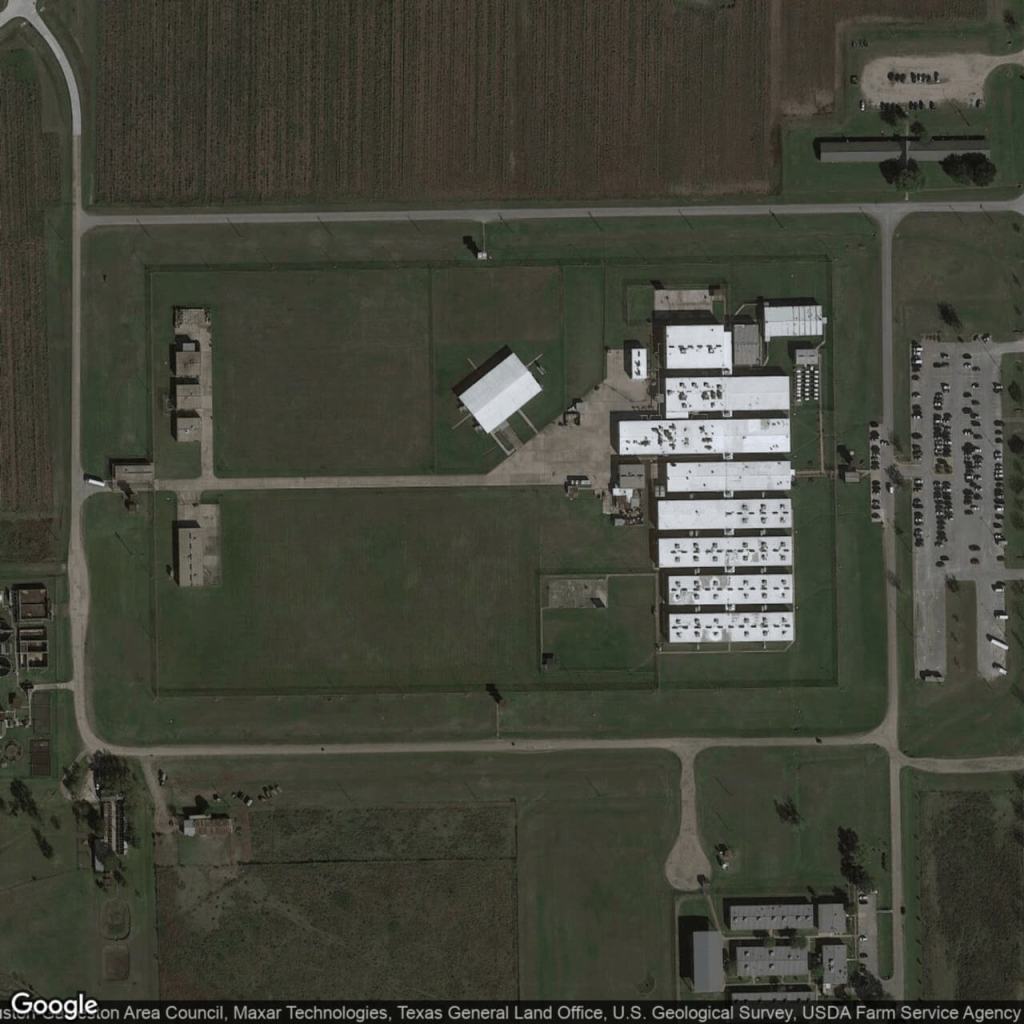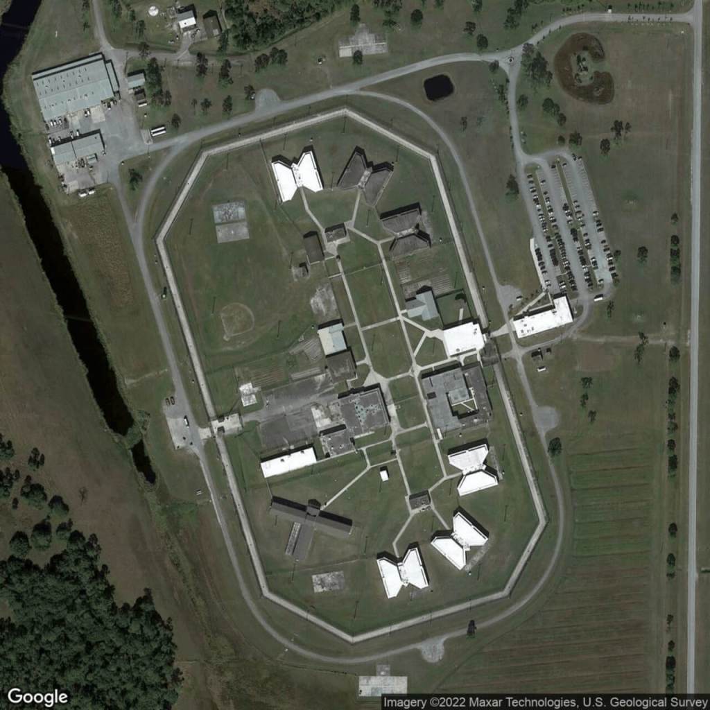 There are at least 662 prisons with prisoners who participate in some form of agriculture. This is sometimes visible from the air, revealing the carcerality of agricultural landscapes, while other times it is invisible, suggesting the carceral power to hide agricultural practices inside carceral architecture. While one could focus strictly on prisons, this would be to ignore the permeability of carceral space and the relationship of prisons to the broader social and ecological communities within which they reside. There are two images for each prison. The first is zoomed out to visually let the eyes stretch beyond prison walls, while the second is zoomed in to focus the viewer on the bricolage of agriculture and prison architecture.