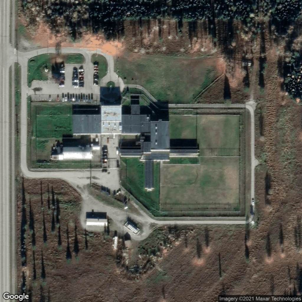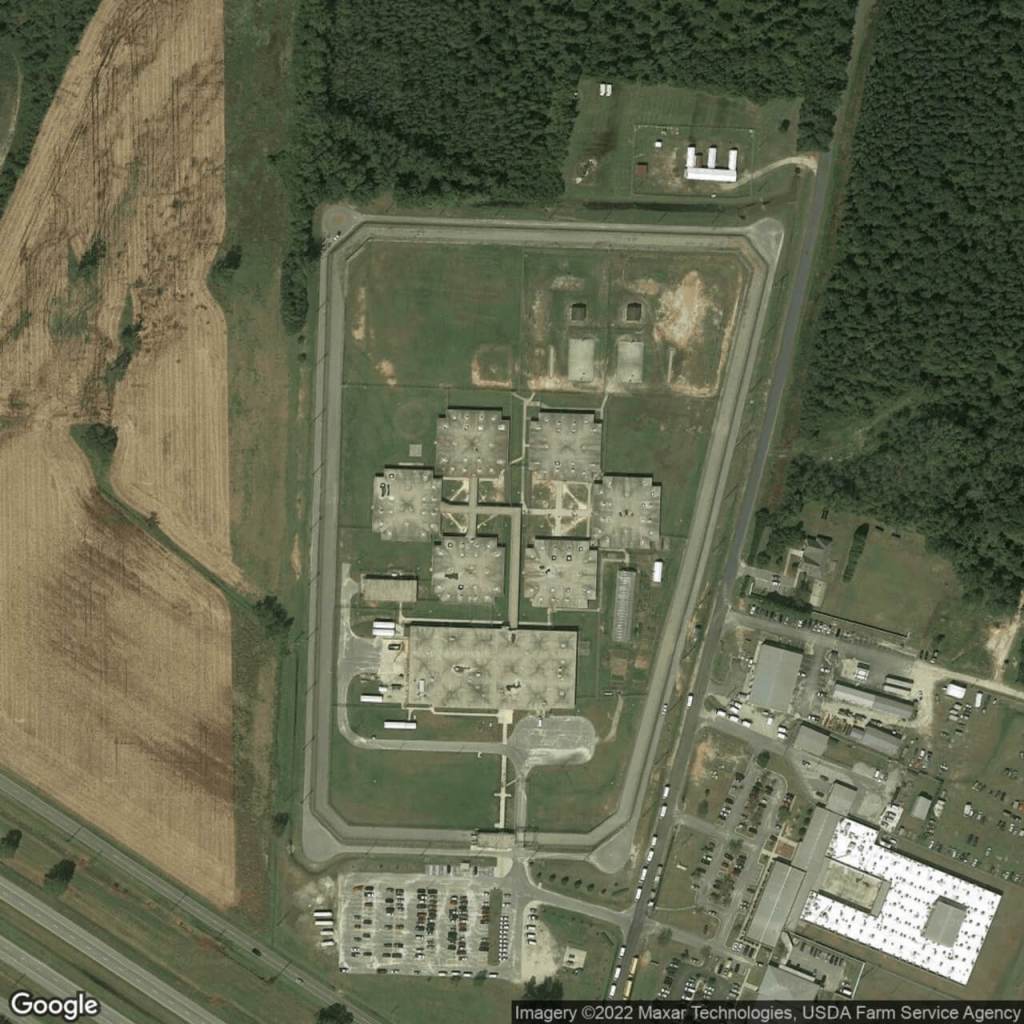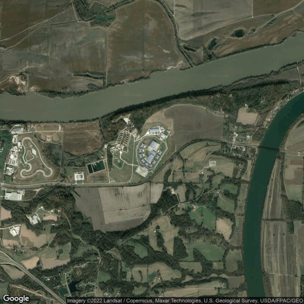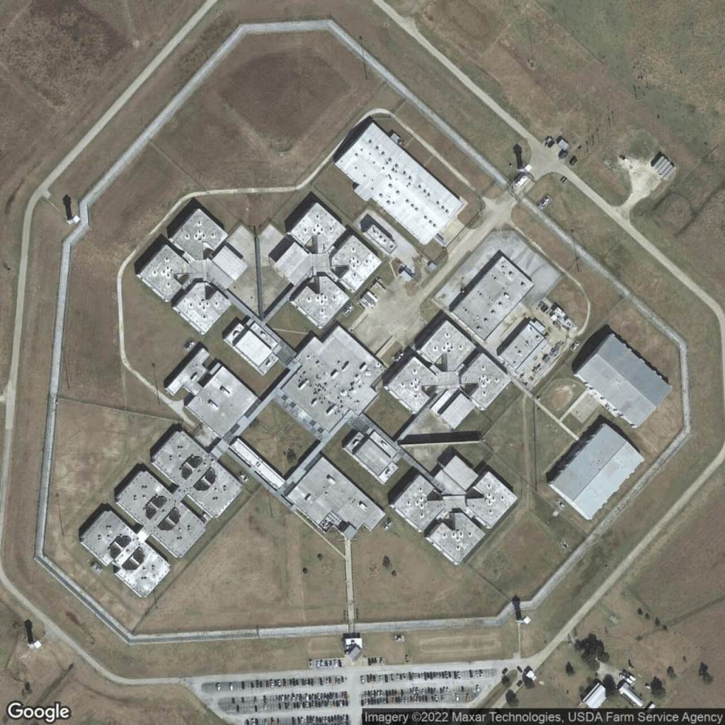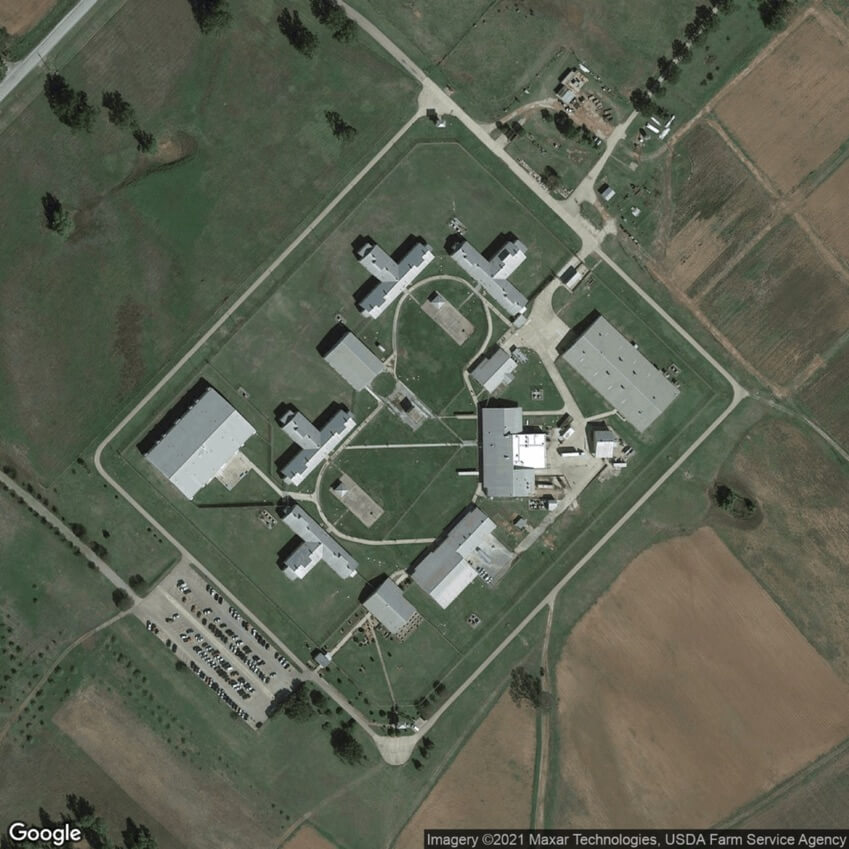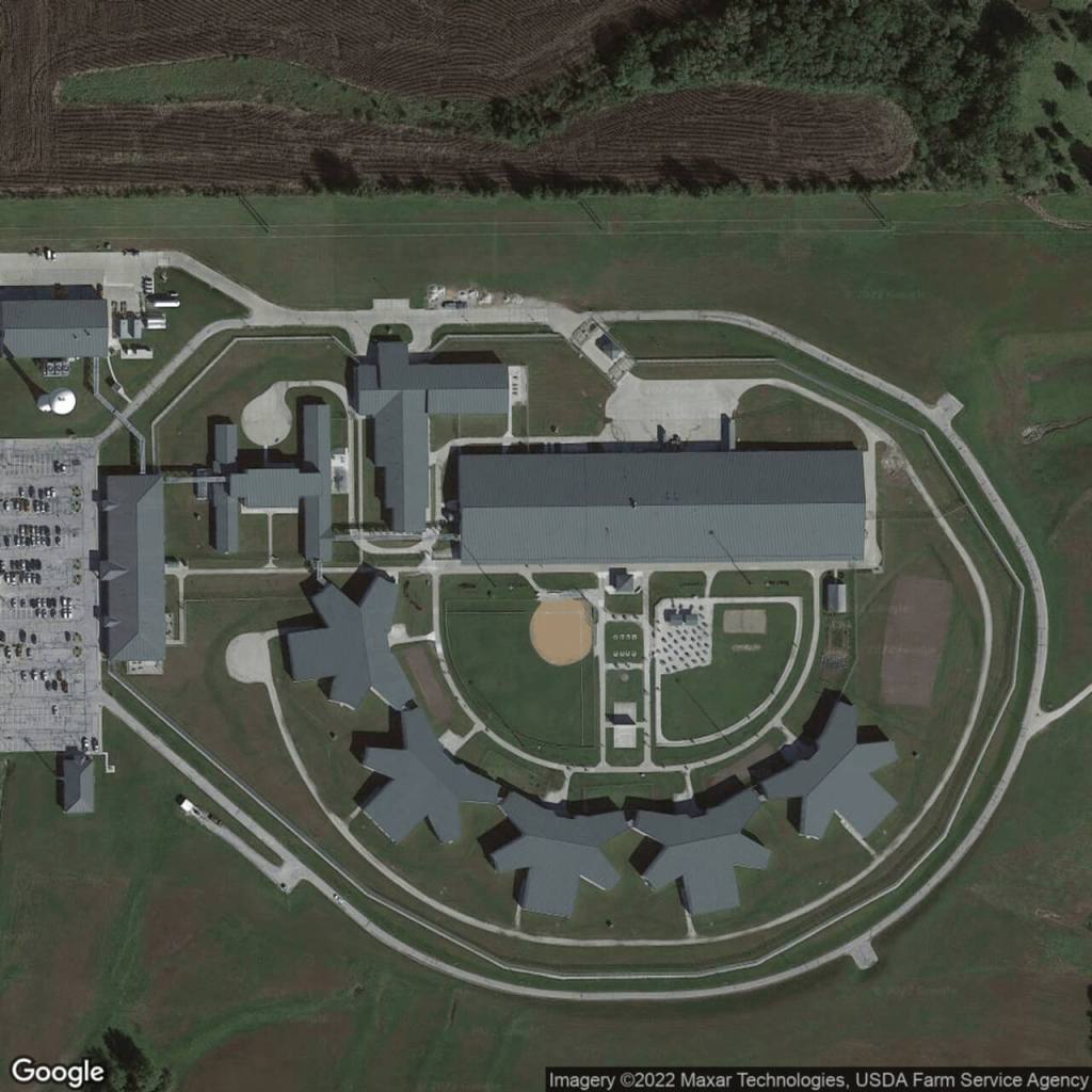 There are at least 662 prisons with prisoners who participate in some form of agriculture. This is sometimes visible from the air, revealing the carcerality of agricultural landscapes, while other times it is invisible, suggesting the carceral power to hide agricultural practices inside carceral architecture. While one could focus strictly on prisons, this would be to ignore the permeability of carceral space and the relationship of prisons to the broader social and ecological communities within which they reside. There are two images for each prison. The first is zoomed out to visually let the eyes stretch beyond prison walls, while the second is zoomed in to focus the viewer on the bricolage of agriculture and prison architecture.