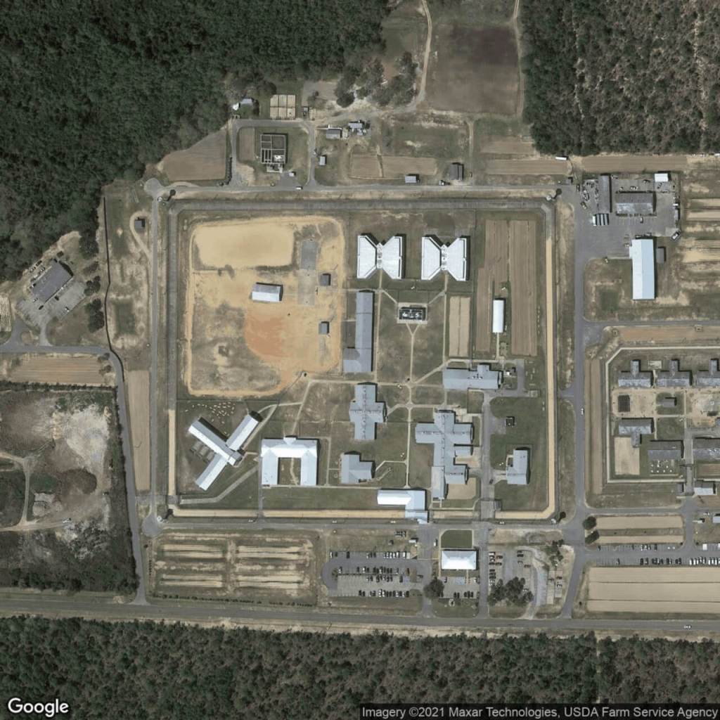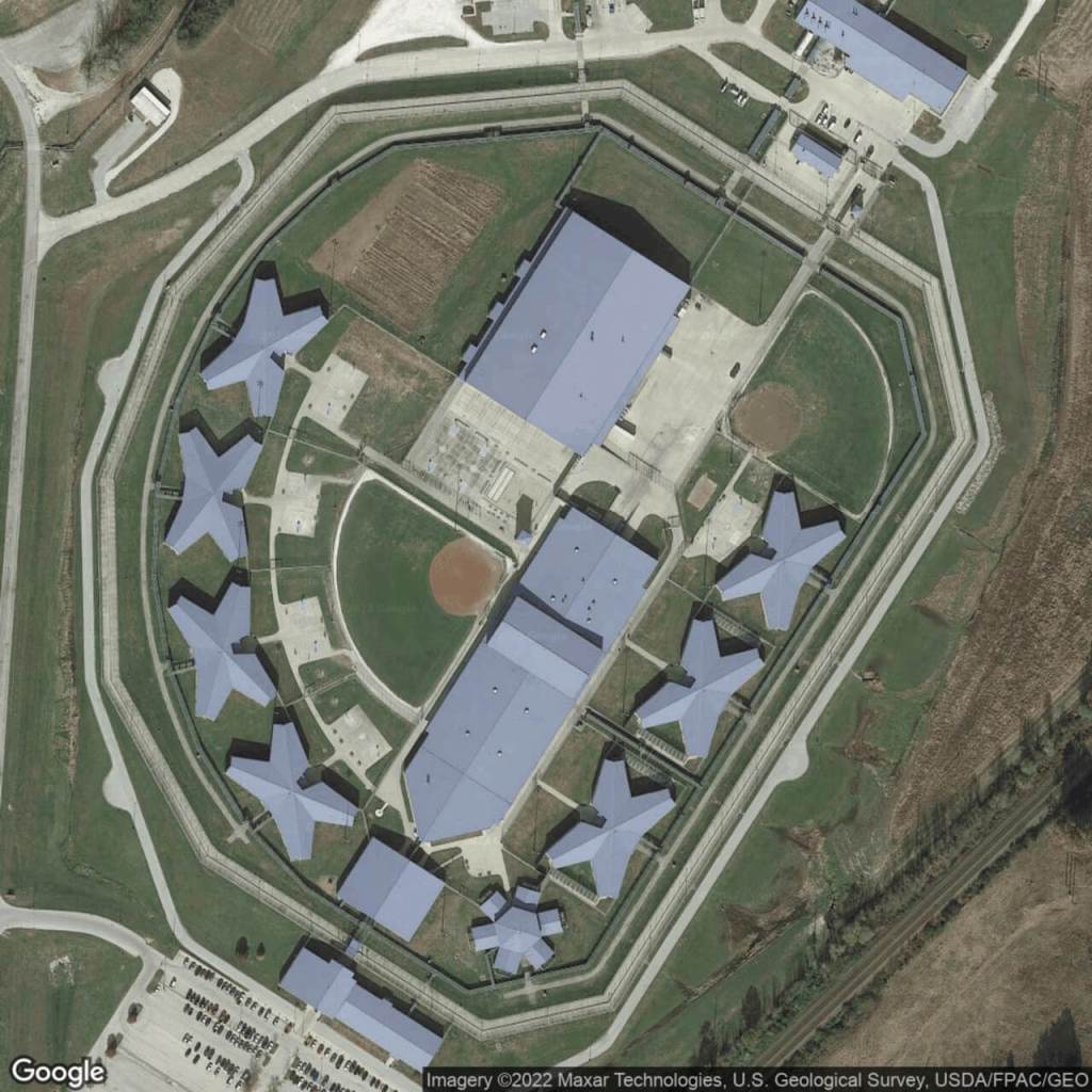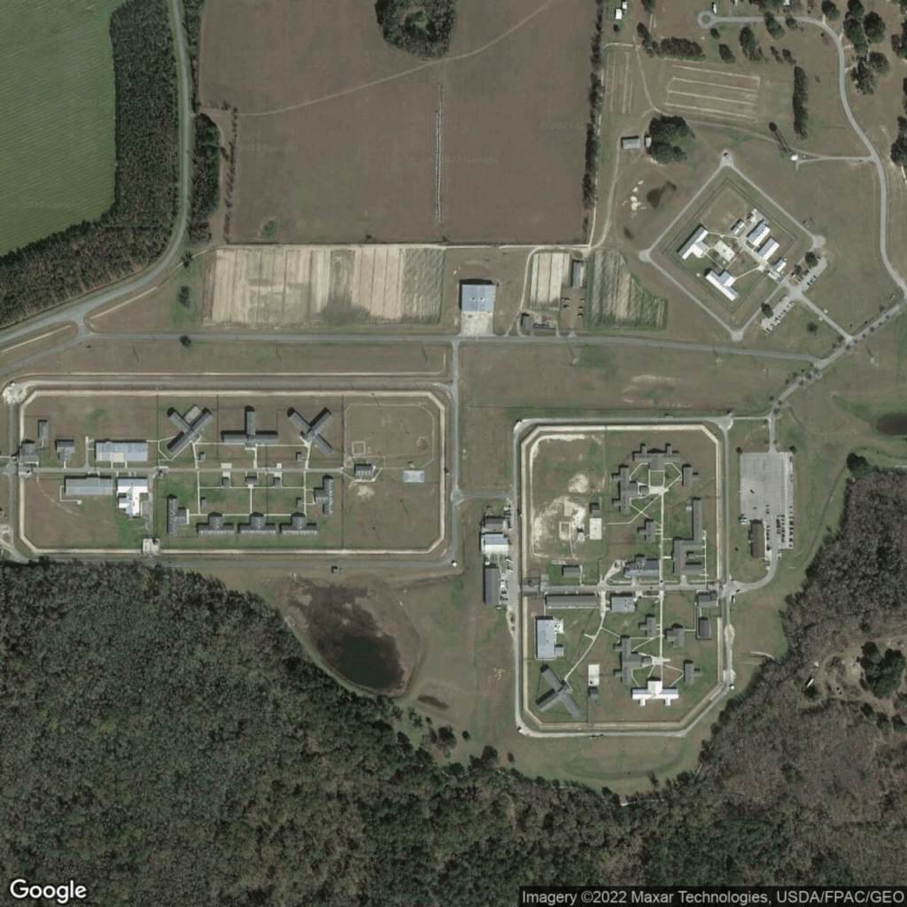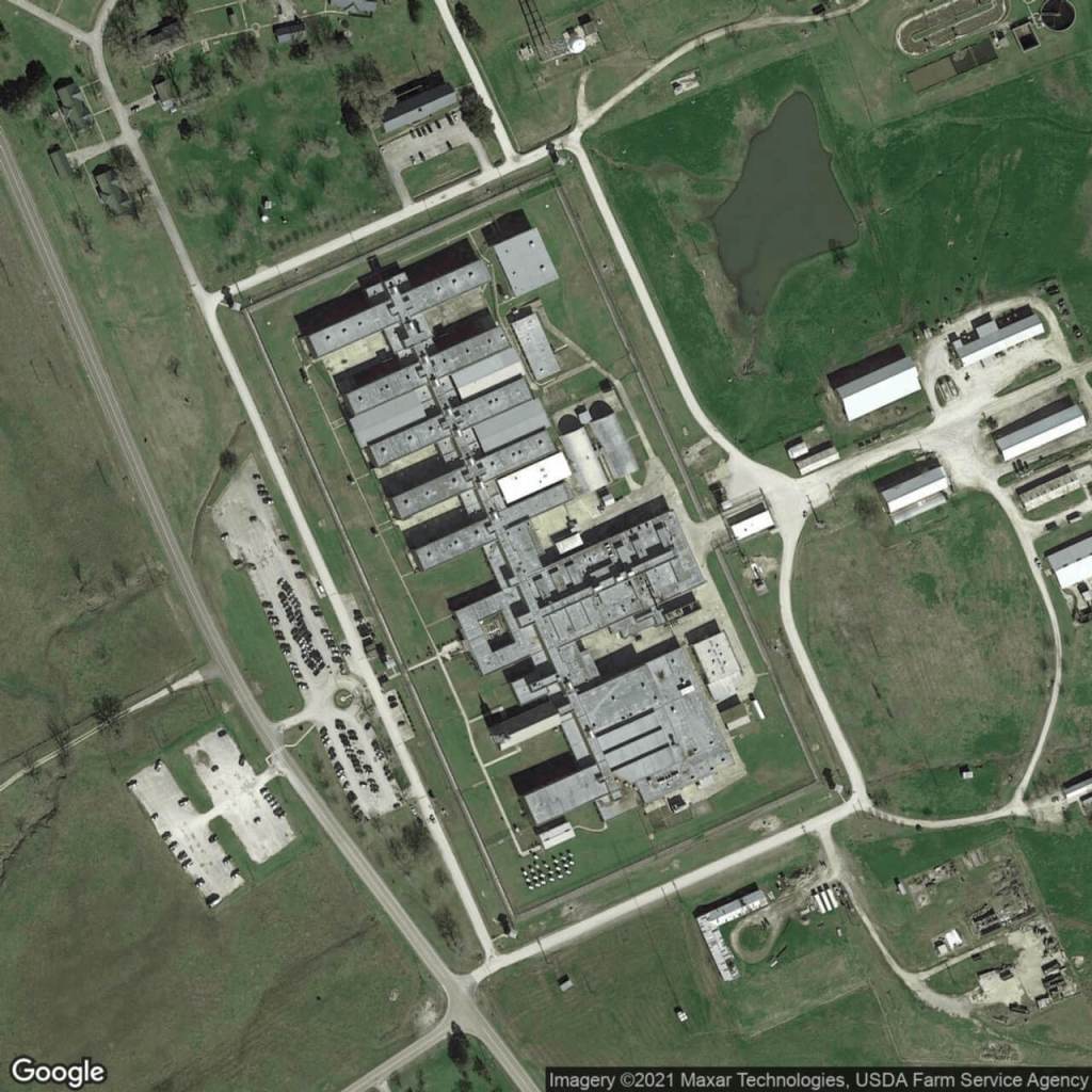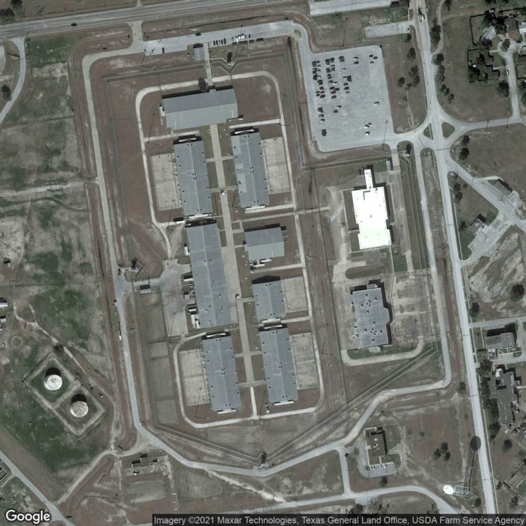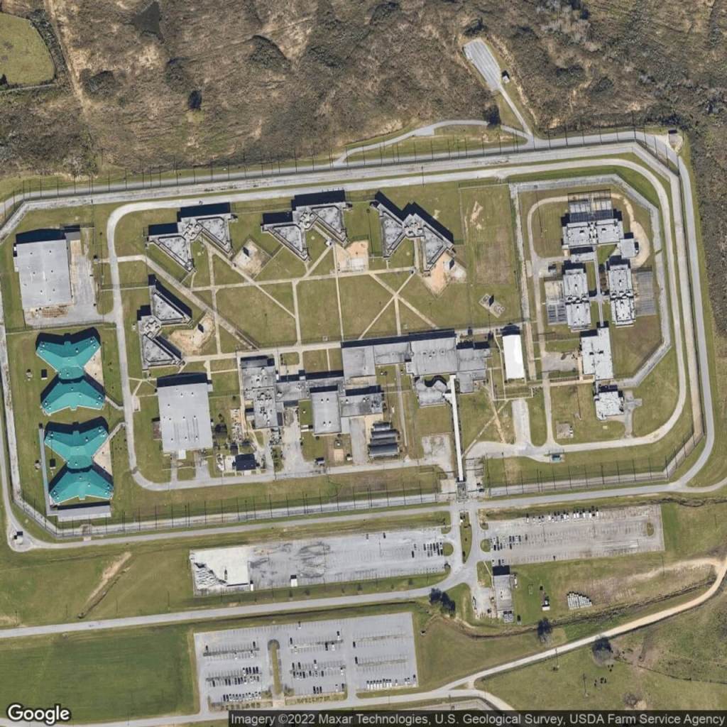 There are at least 662 prisons with prisoners who participate in some form of agriculture. This is sometimes visible from the air, revealing the carcerality of agricultural landscapes, while other times it is invisible, suggesting the carceral power to hide agricultural practices inside carceral architecture. While one could focus strictly on prisons, this would be to ignore the permeability of carceral space and the relationship of prisons to the broader social and ecological communities within which they reside. There are two images for each prison. The first is zoomed out to visually let the eyes stretch beyond prison walls, while the second is zoomed in to focus the viewer on the bricolage of agriculture and prison architecture.