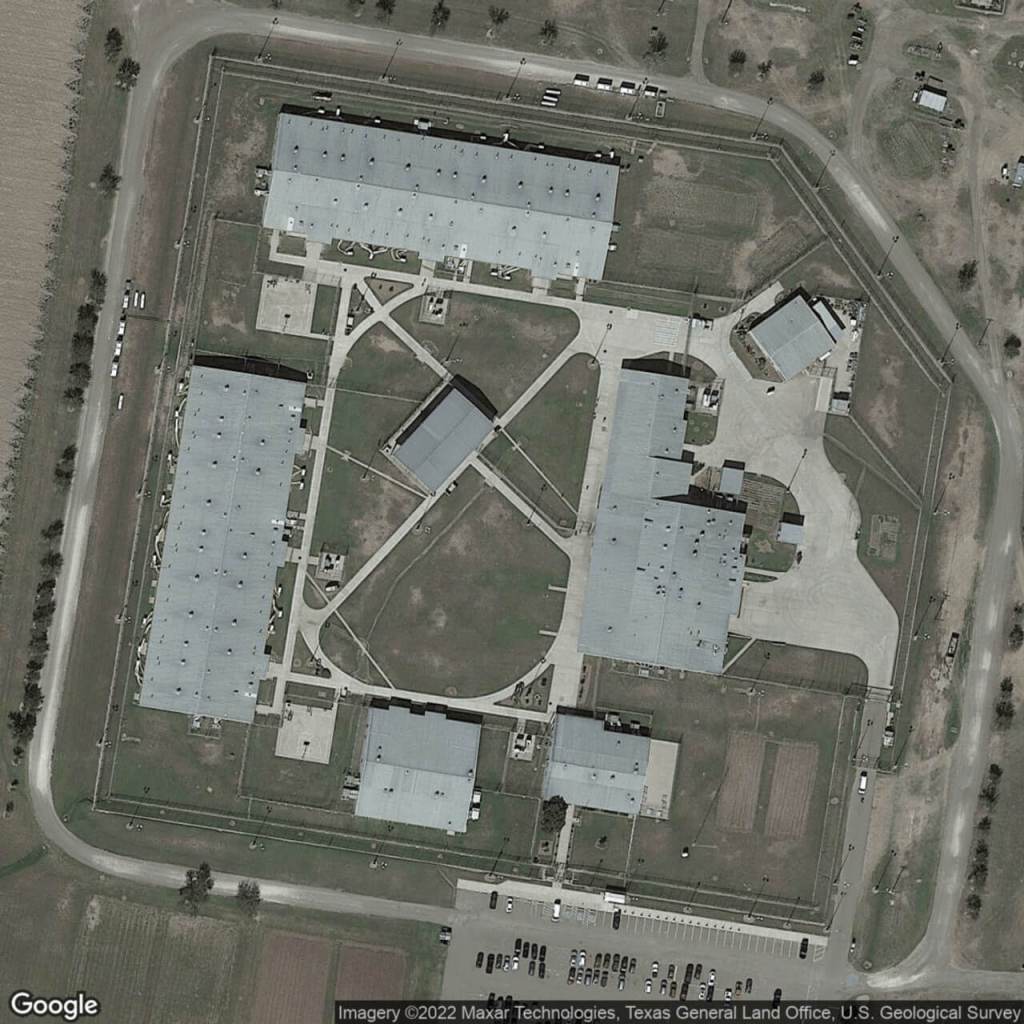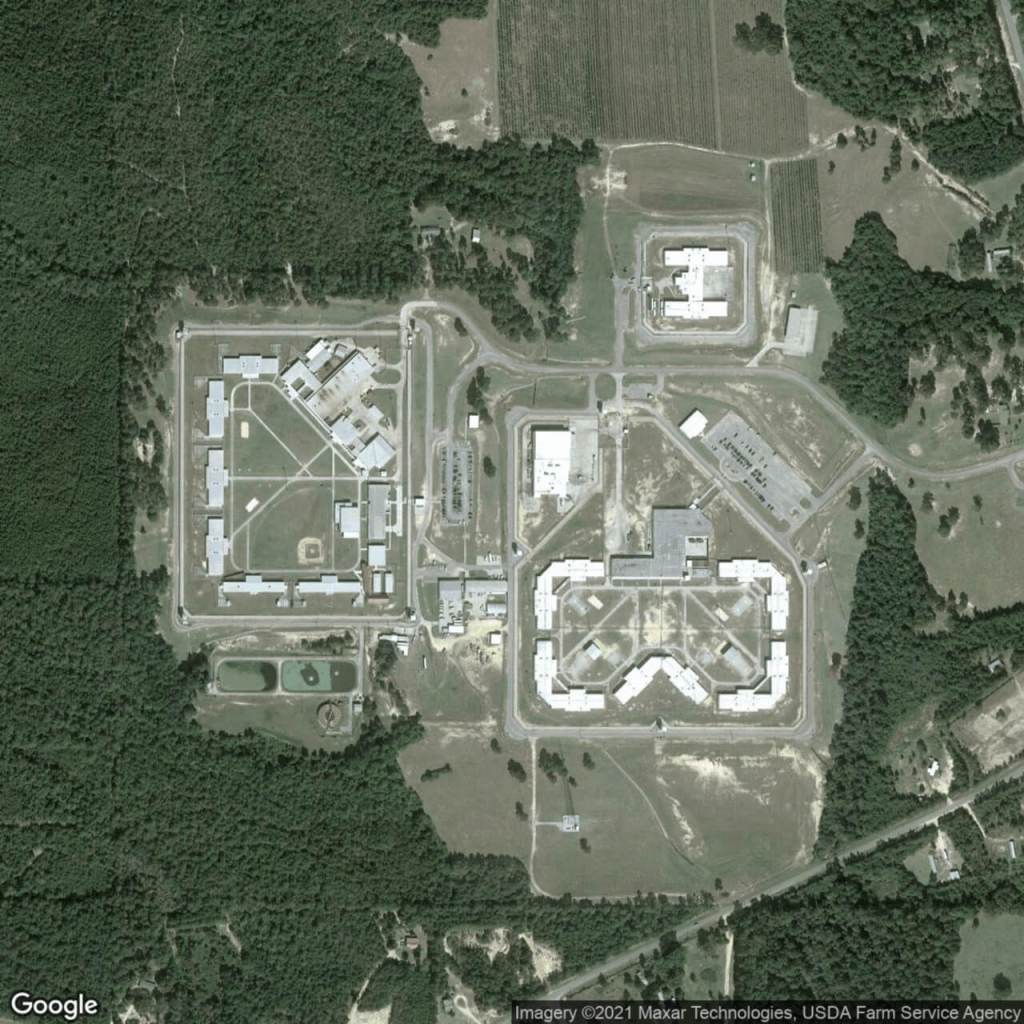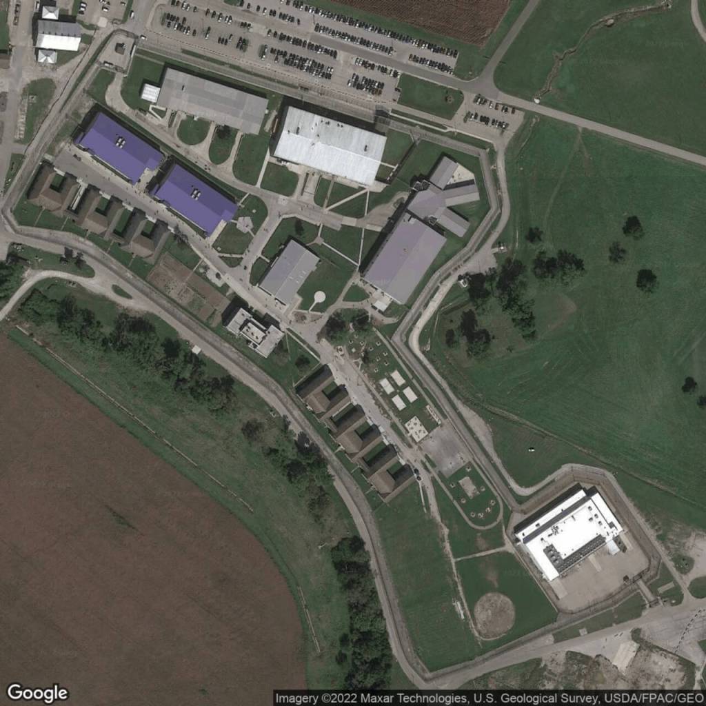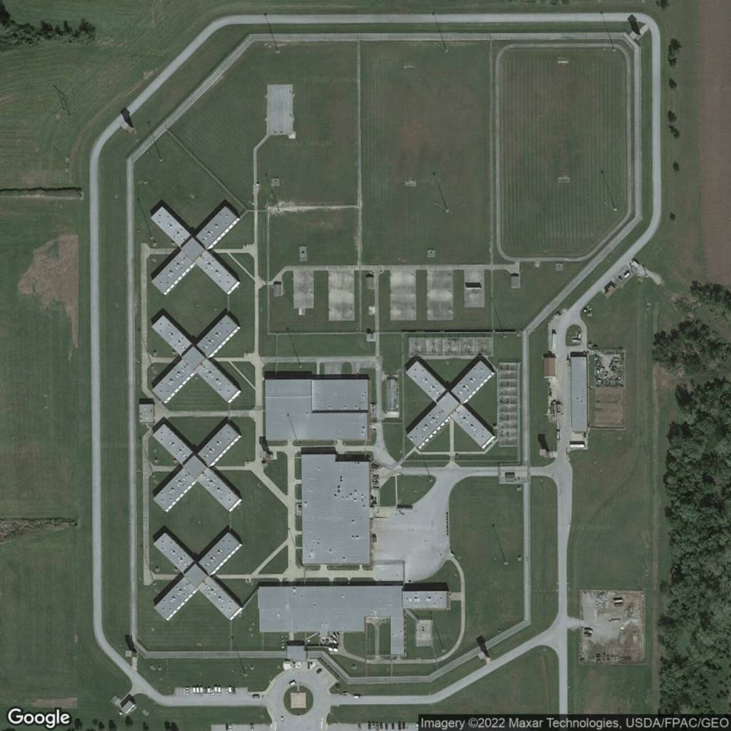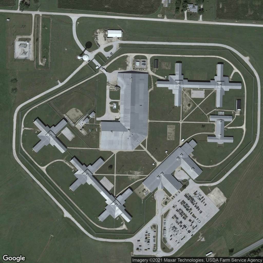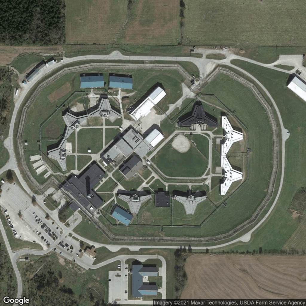 There are at least 662 prisons with prisoners who participate in some form of agriculture. This is sometimes visible from the air, revealing the carcerality of agricultural landscapes, while other times it is invisible, suggesting the carceral power to hide agricultural practices inside carceral architecture. While one could focus strictly on prisons, this would be to ignore the permeability of carceral space and the relationship of prisons to the broader social and ecological communities within which they reside. There are two images for each prison. The first is zoomed out to visually let the eyes stretch beyond prison walls, while the second is zoomed in to focus the viewer on the bricolage of agriculture and prison architecture.