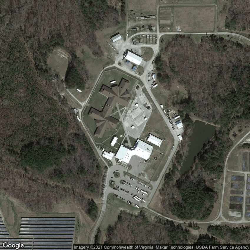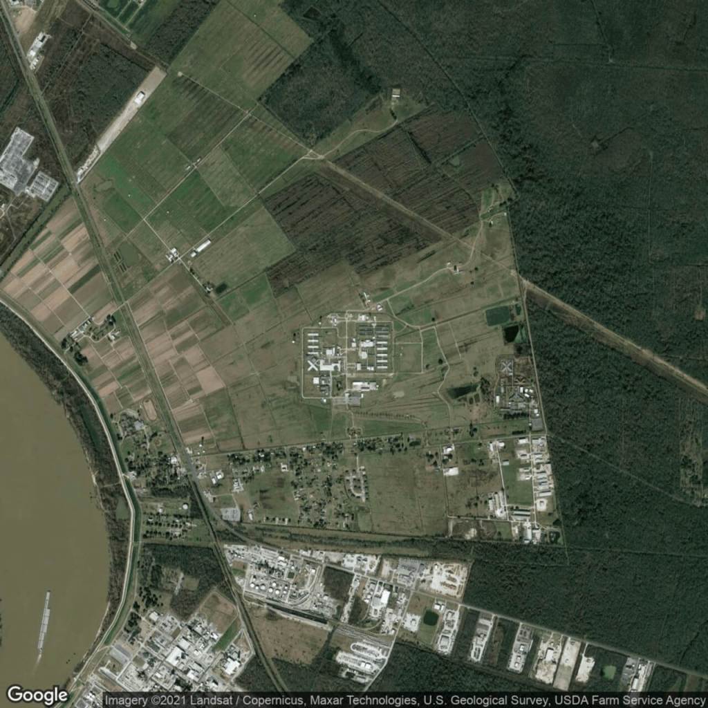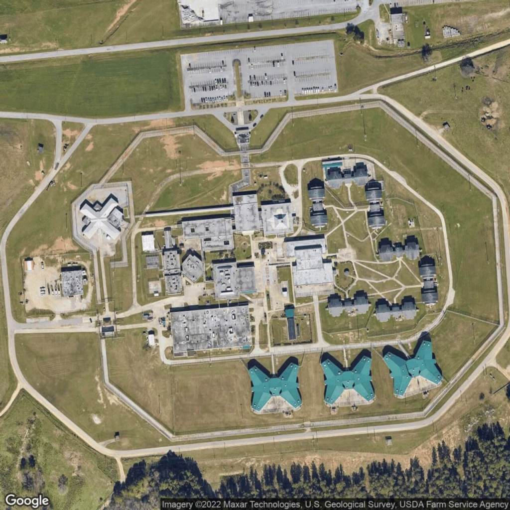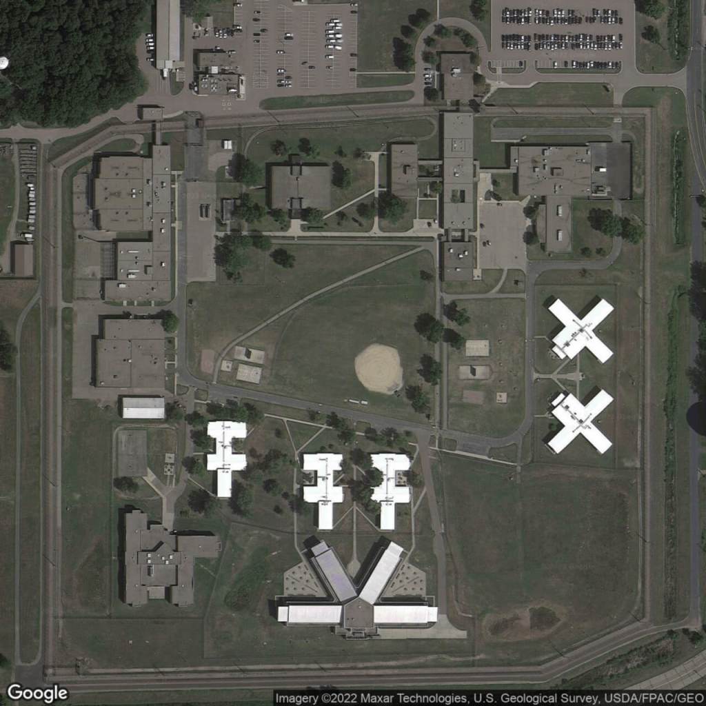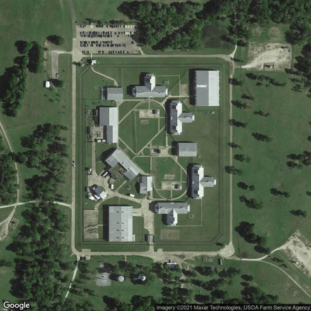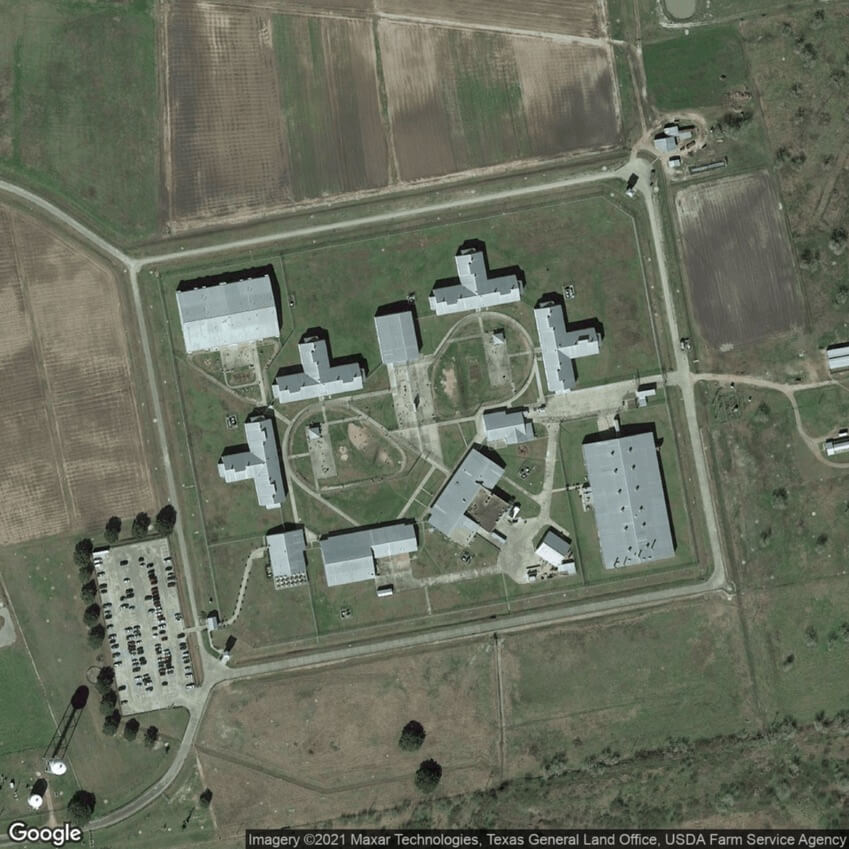 There are at least 662 prisons with prisoners who participate in some form of agriculture. This is sometimes visible from the air, revealing the carcerality of agricultural landscapes, while other times it is invisible, suggesting the carceral power to hide agricultural practices inside carceral architecture. While one could focus strictly on prisons, this would be to ignore the permeability of carceral space and the relationship of prisons to the broader social and ecological communities within which they reside. There are two images for each prison. The first is zoomed out to visually let the eyes stretch beyond prison walls, while the second is zoomed in to focus the viewer on the bricolage of agriculture and prison architecture.