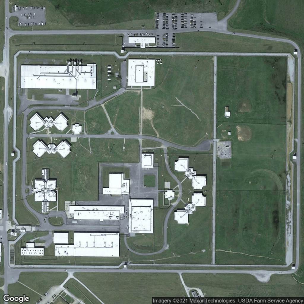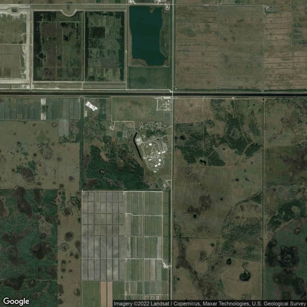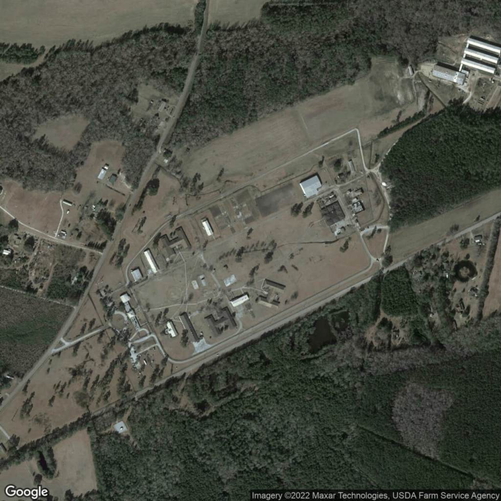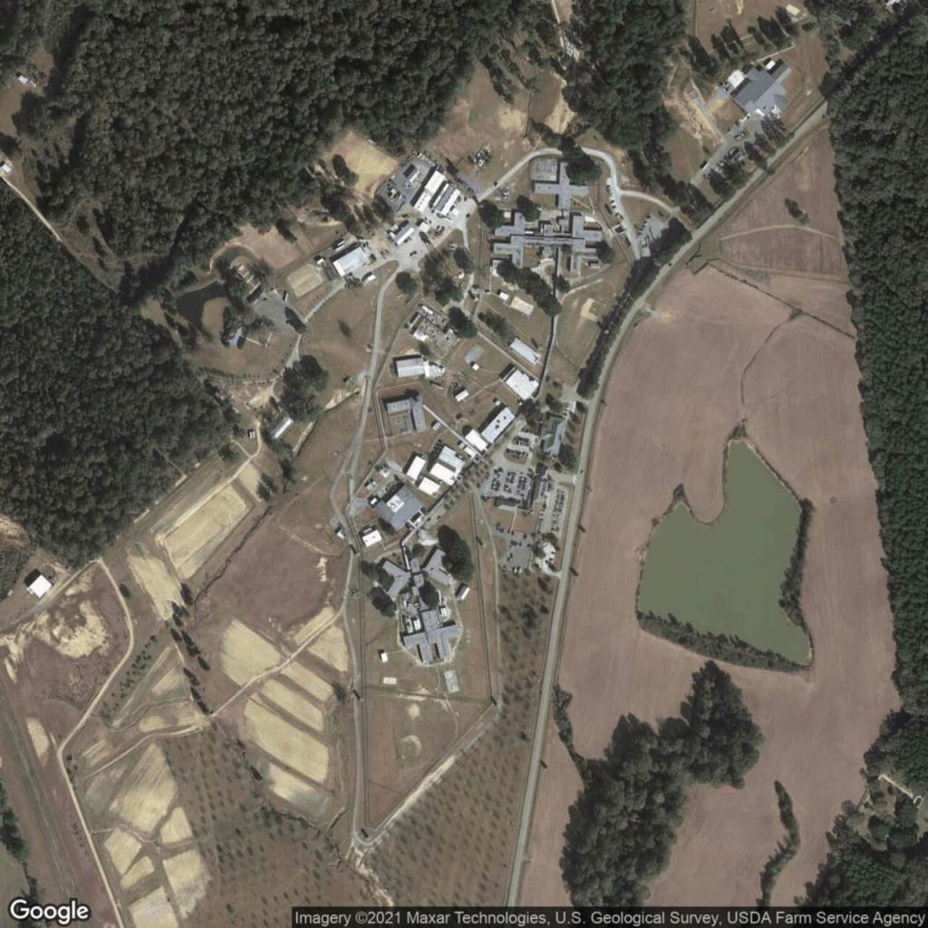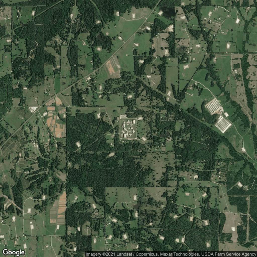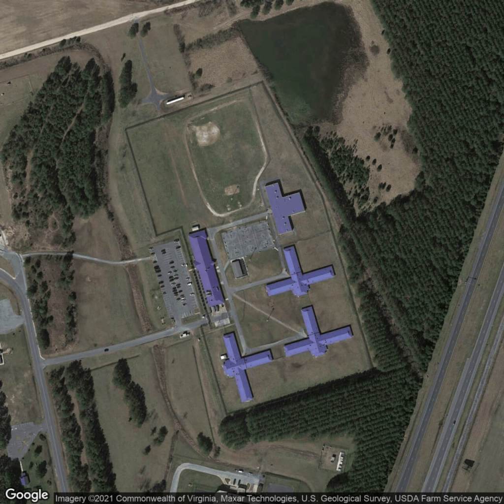 There are at least 662 prisons with prisoners who participate in some form of agriculture. This is sometimes visible from the air, revealing the carcerality of agricultural landscapes, while other times it is invisible, suggesting the carceral power to hide agricultural practices inside carceral architecture. While one could focus strictly on prisons, this would be to ignore the permeability of carceral space and the relationship of prisons to the broader social and ecological communities within which they reside. There are two images for each prison. The first is zoomed out to visually let the eyes stretch beyond prison walls, while the second is zoomed in to focus the viewer on the bricolage of agriculture and prison architecture.