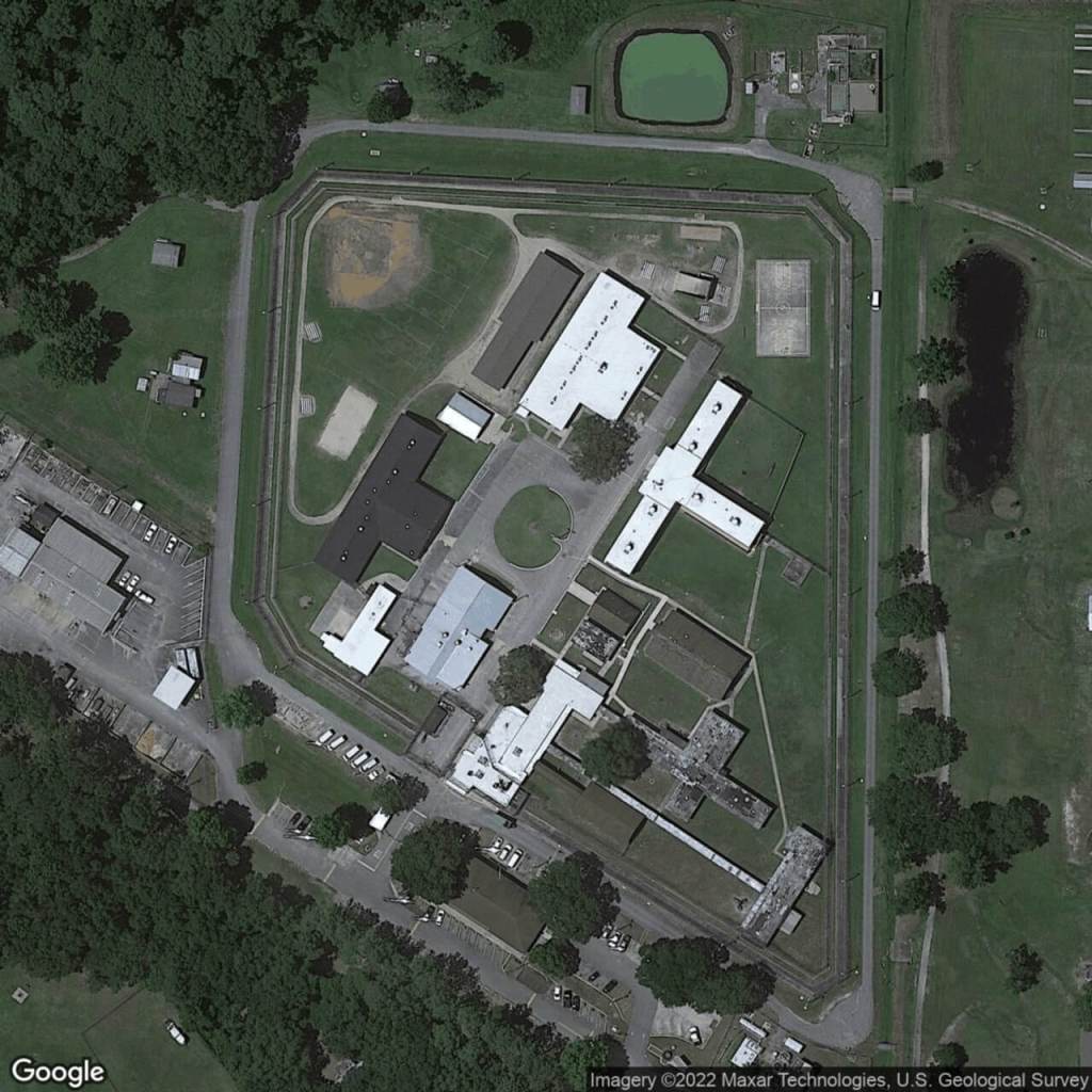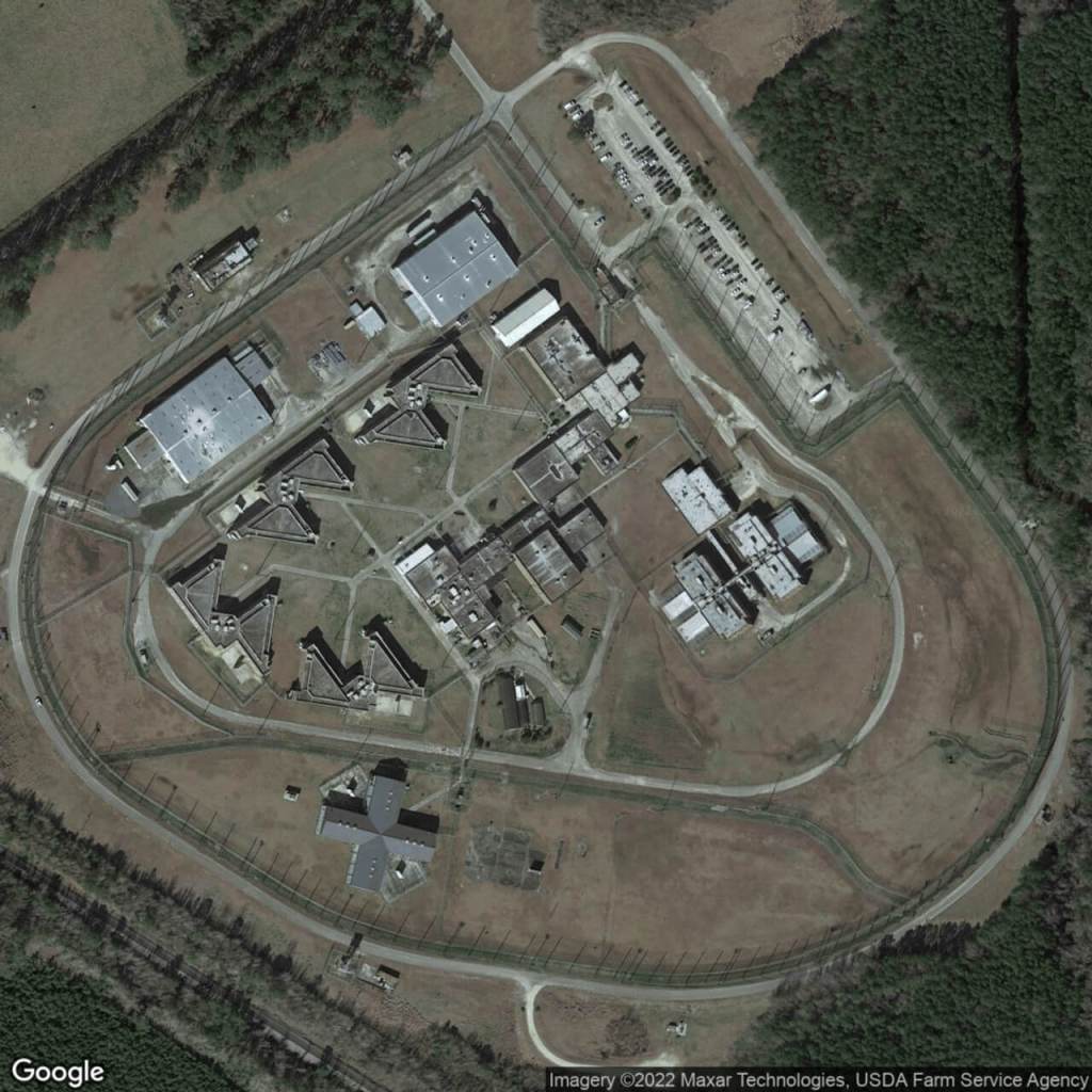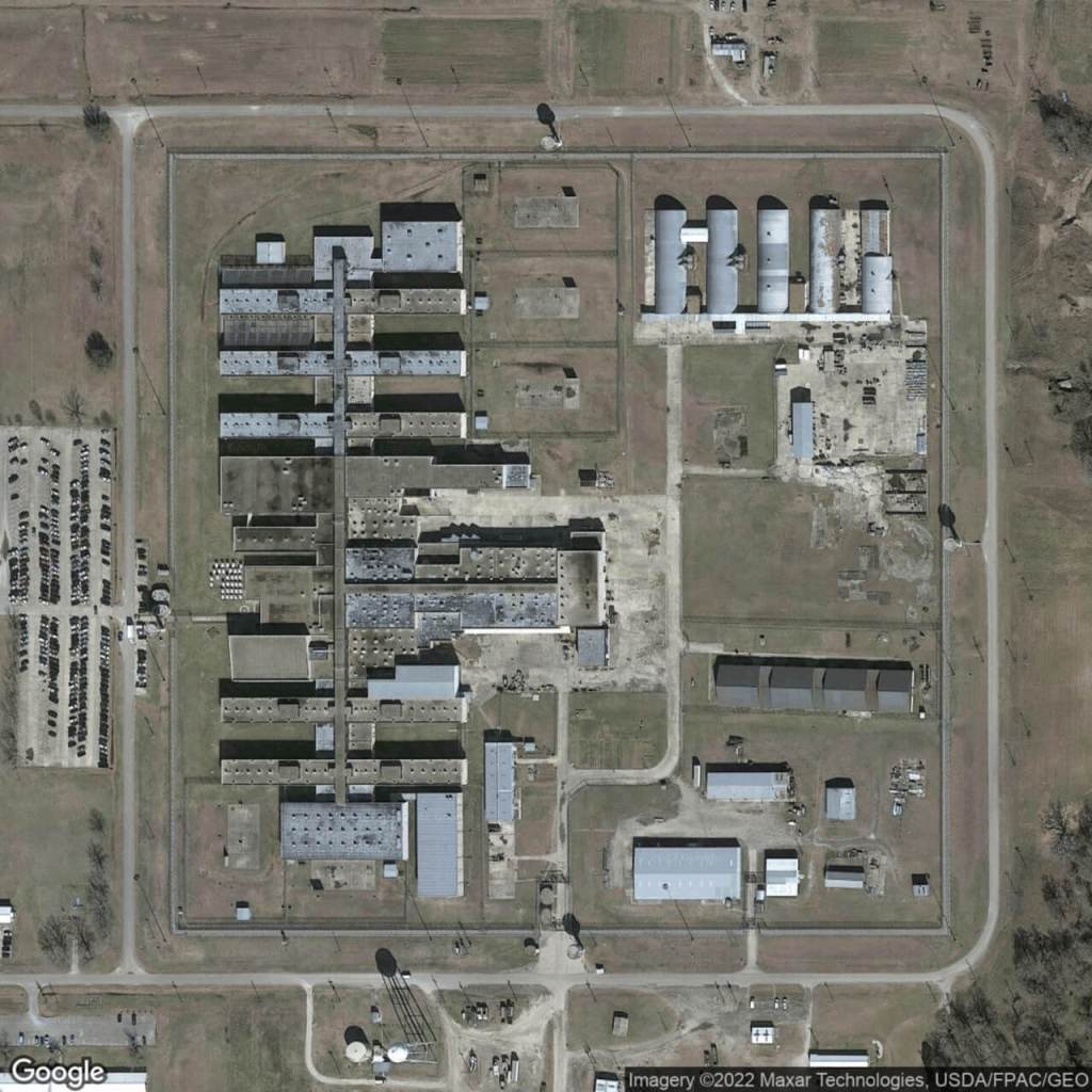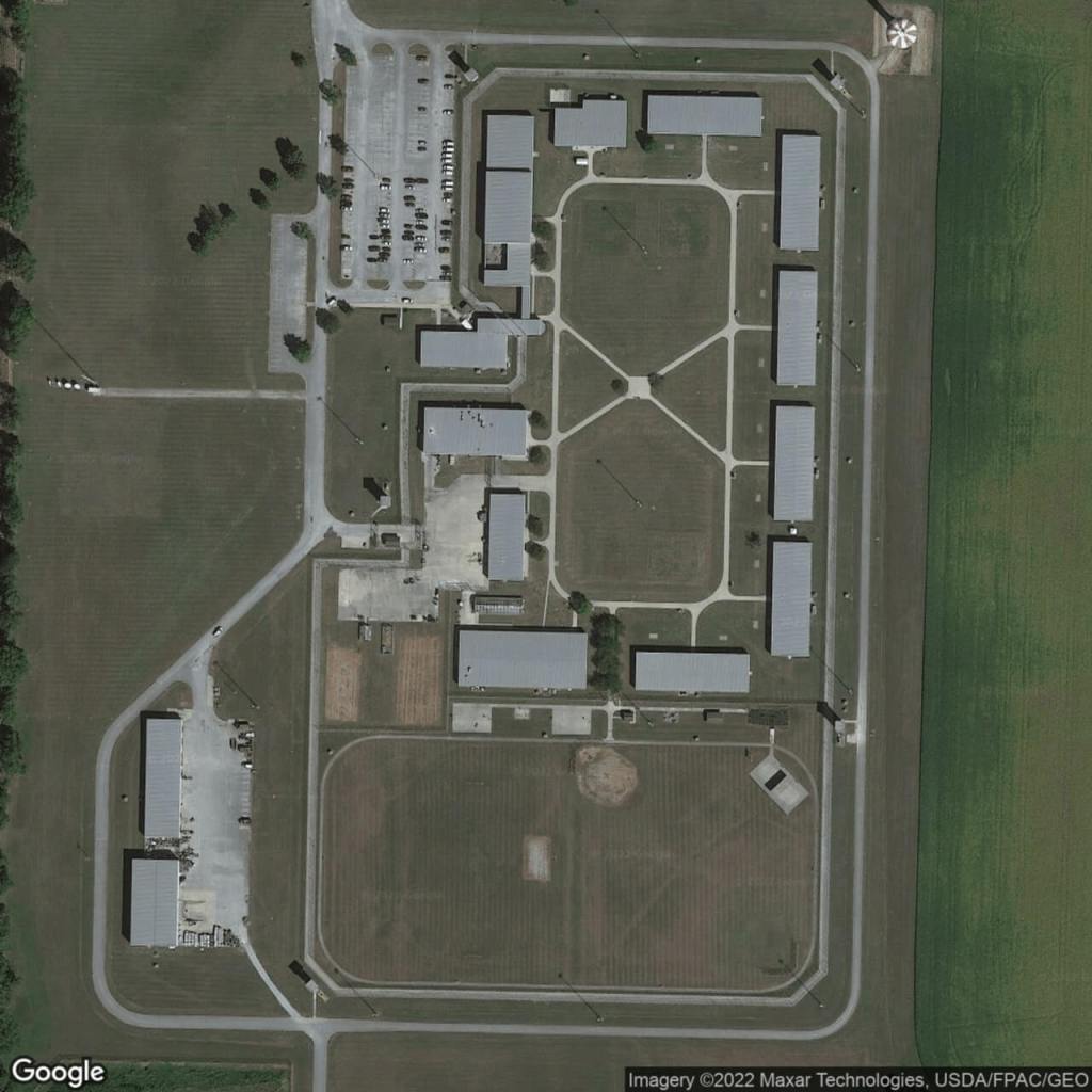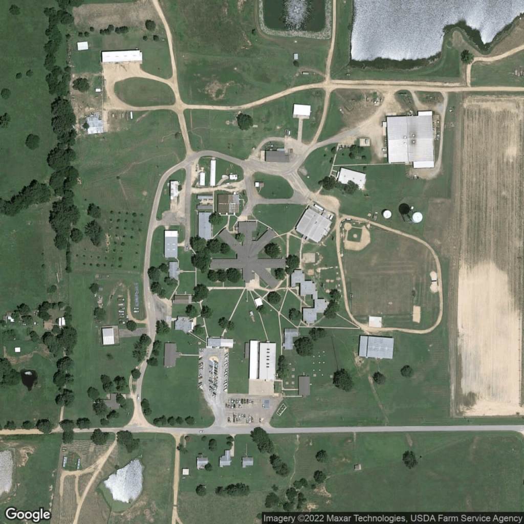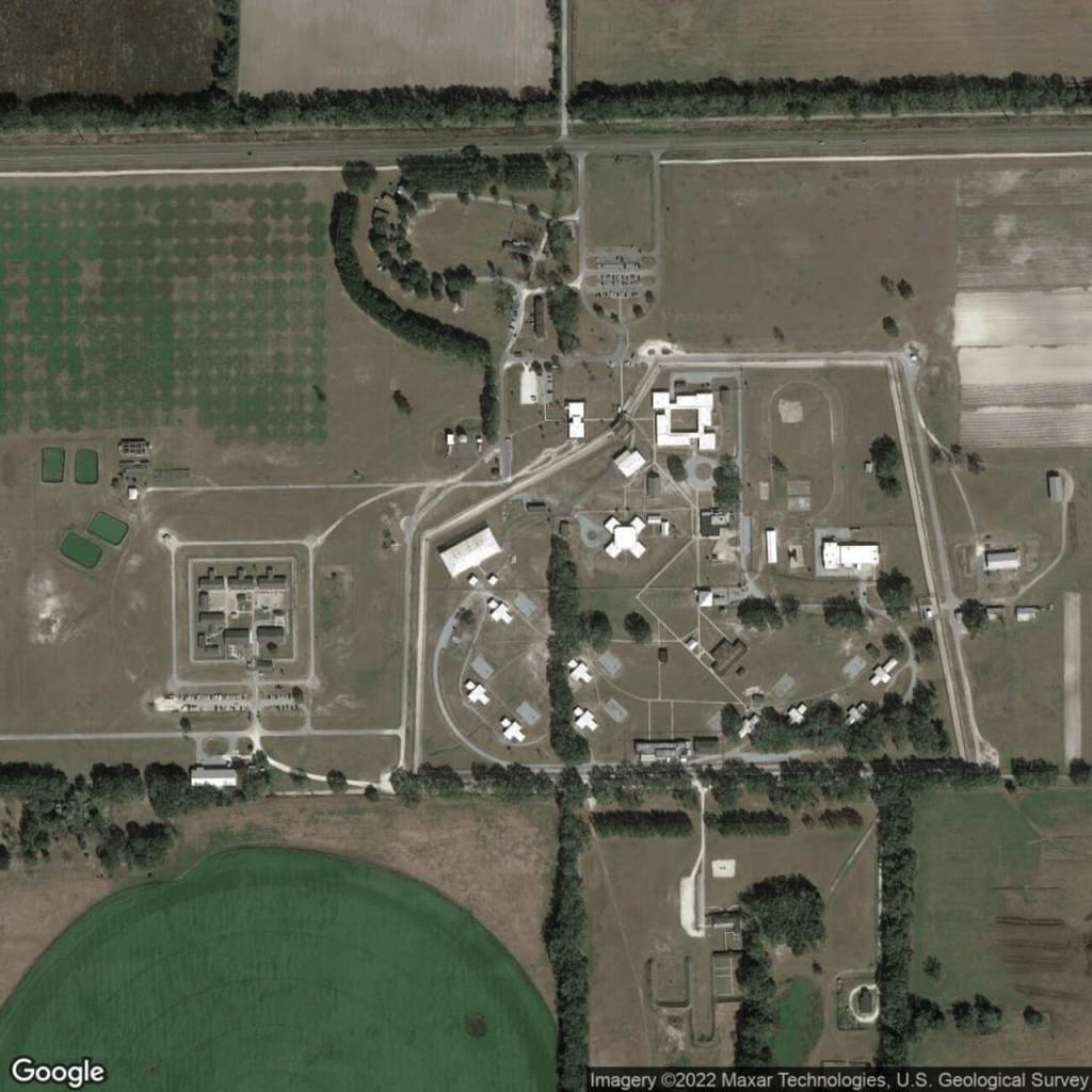 There are at least 662 prisons with prisoners who participate in some form of agriculture. This is sometimes visible from the air, revealing the carcerality of agricultural landscapes, while other times it is invisible, suggesting the carceral power to hide agricultural practices inside carceral architecture. While one could focus strictly on prisons, this would be to ignore the permeability of carceral space and the relationship of prisons to the broader social and ecological communities within which they reside. There are two images for each prison. The first is zoomed out to visually let the eyes stretch beyond prison walls, while the second is zoomed in to focus the viewer on the bricolage of agriculture and prison architecture.