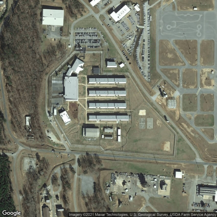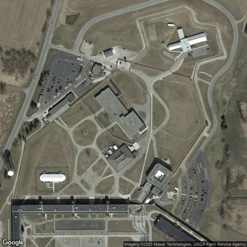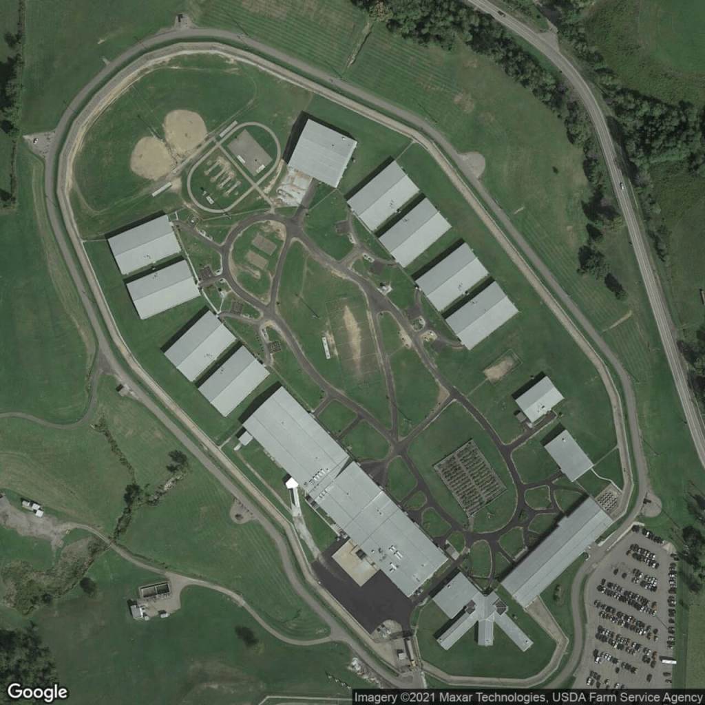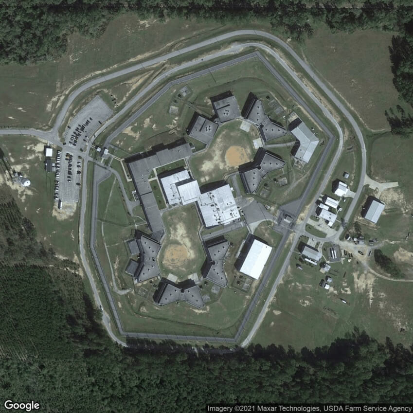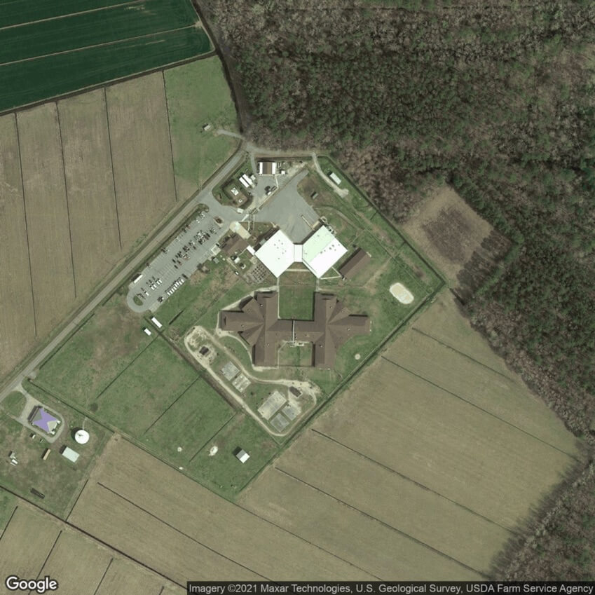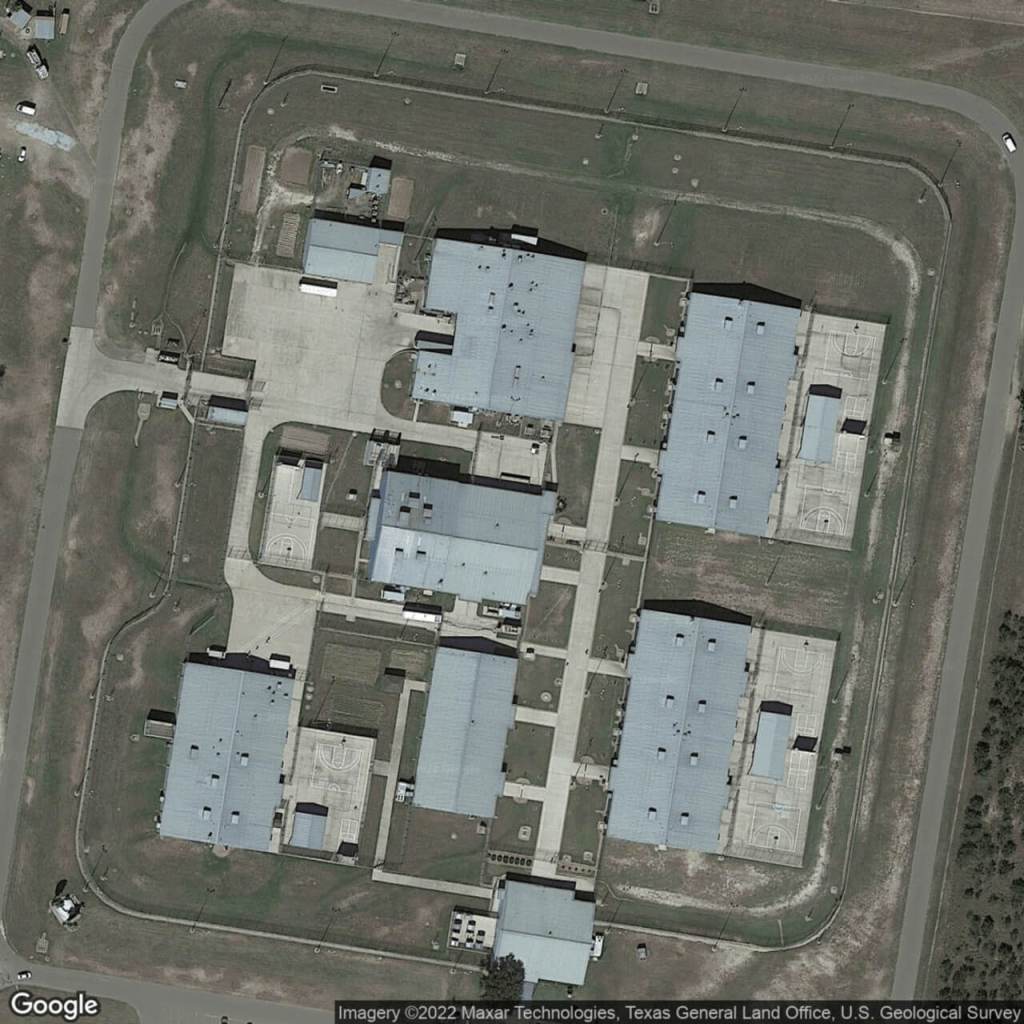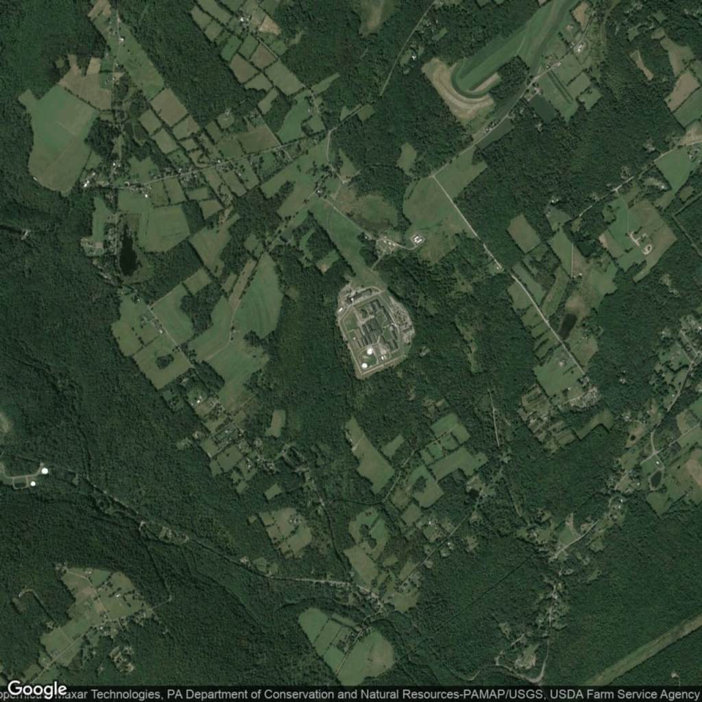 There are at least 662 prisons with prisoners who participate in some form of agriculture. This is sometimes visible from the air, revealing the carcerality of agricultural landscapes, while other times it is invisible, suggesting the carceral power to hide agricultural practices inside carceral architecture. While one could focus strictly on prisons, this would be to ignore the permeability of carceral space and the relationship of prisons to the broader social and ecological communities within which they reside. There are two images for each prison. The first is zoomed out to visually let the eyes stretch beyond prison walls, while the second is zoomed in to focus the viewer on the bricolage of agriculture and prison architecture.