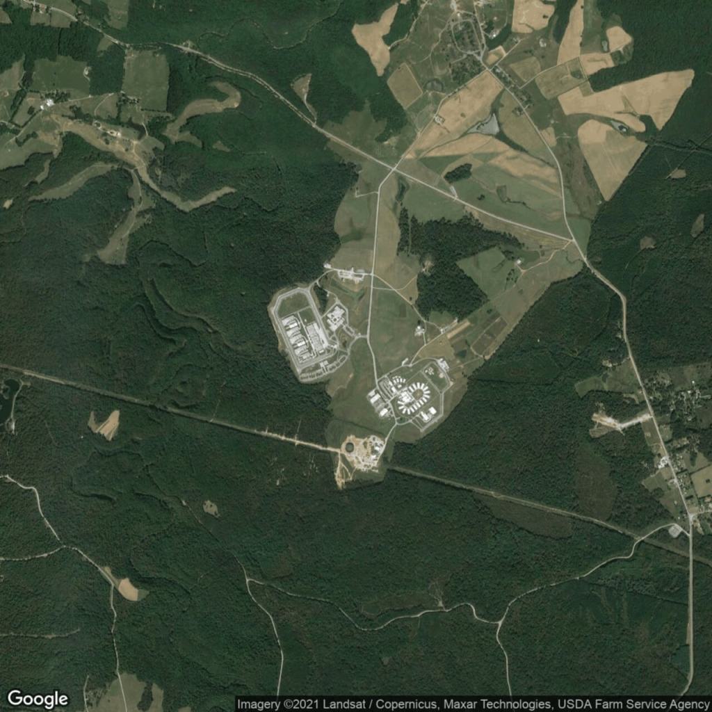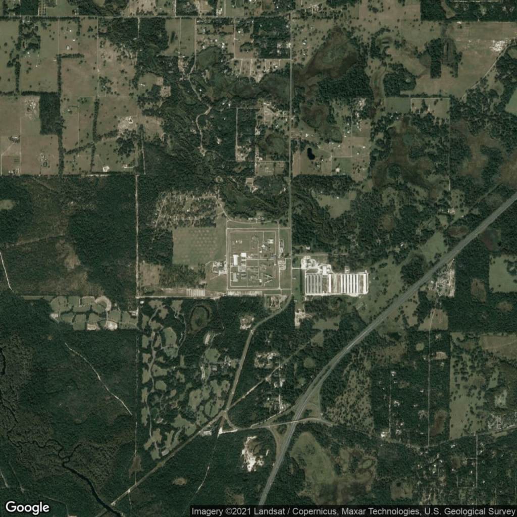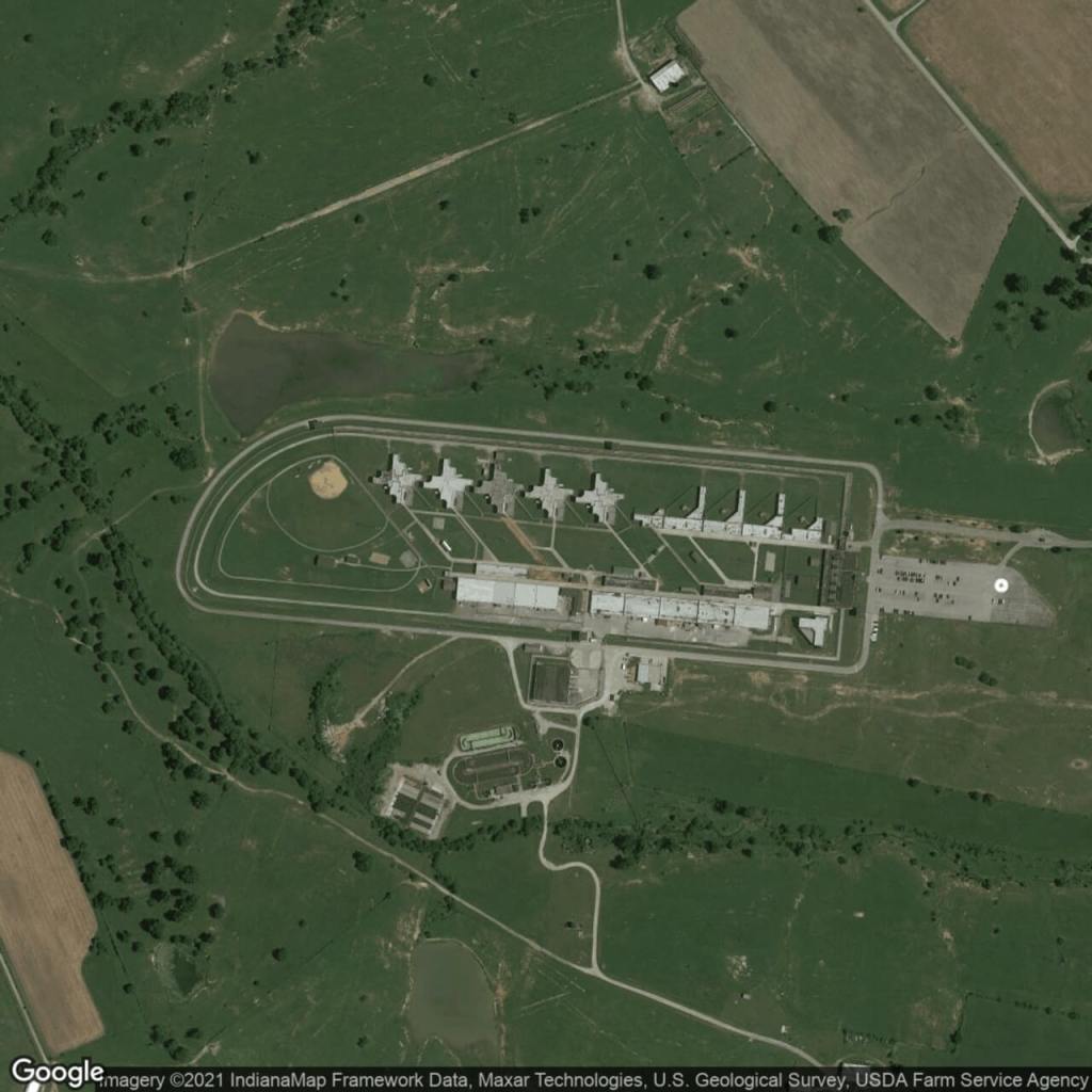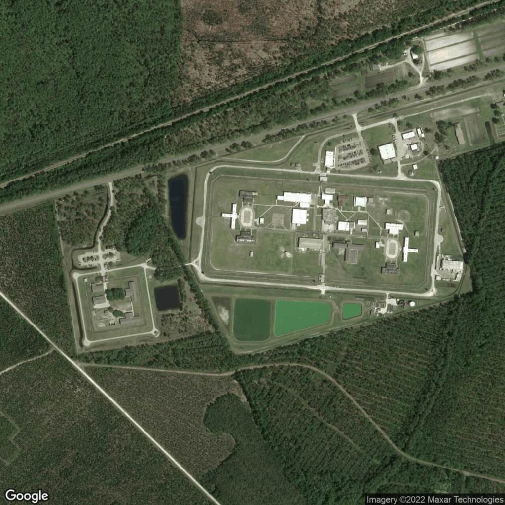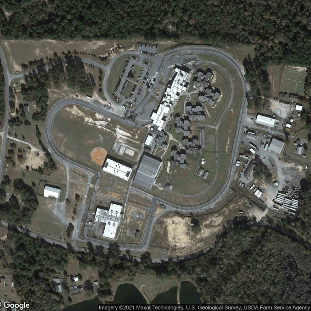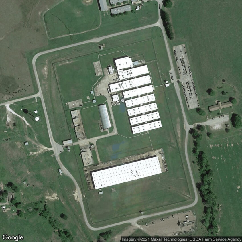 There are at least 662 prisons with prisoners who participate in some form of agriculture. This is sometimes visible from the air, revealing the carcerality of agricultural landscapes, while other times it is invisible, suggesting the carceral power to hide agricultural practices inside carceral architecture. While one could focus strictly on prisons, this would be to ignore the permeability of carceral space and the relationship of prisons to the broader social and ecological communities within which they reside. There are two images for each prison. The first is zoomed out to visually let the eyes stretch beyond prison walls, while the second is zoomed in to focus the viewer on the bricolage of agriculture and prison architecture.