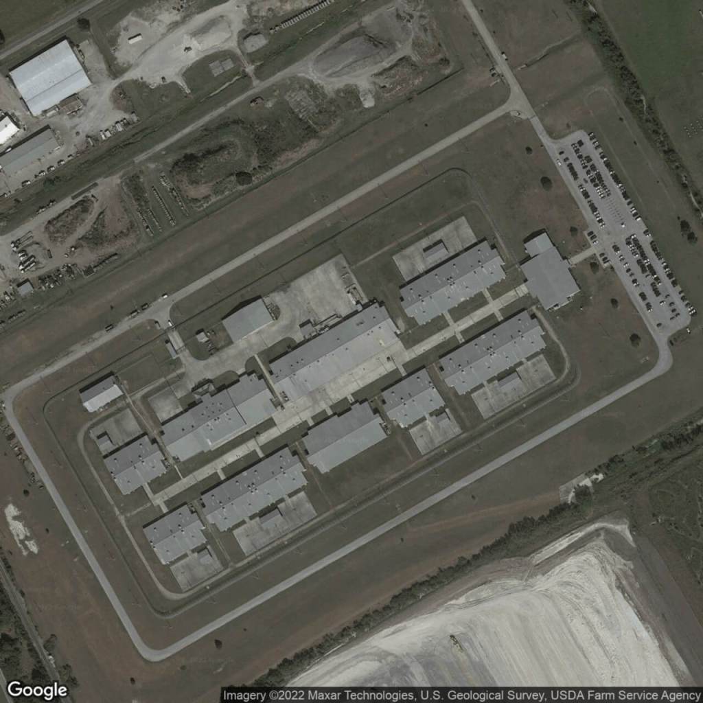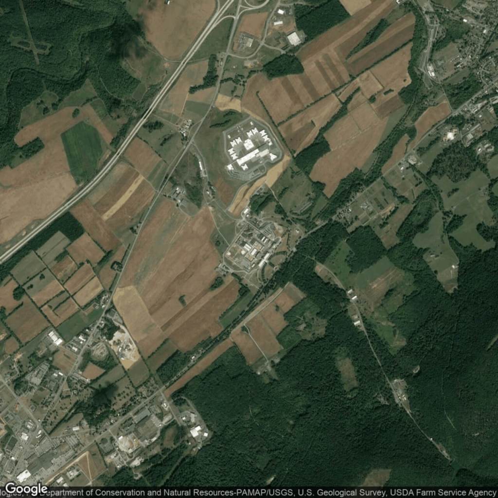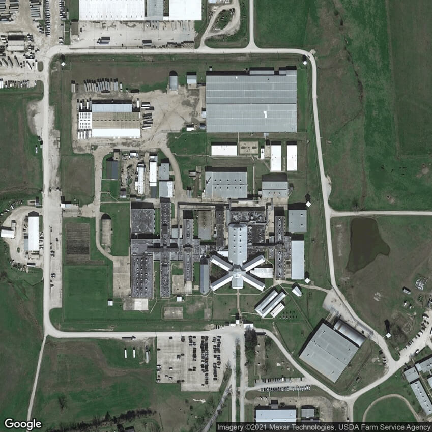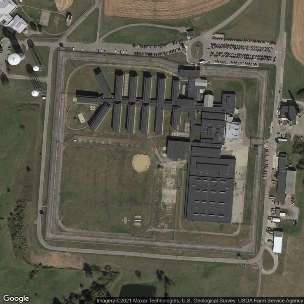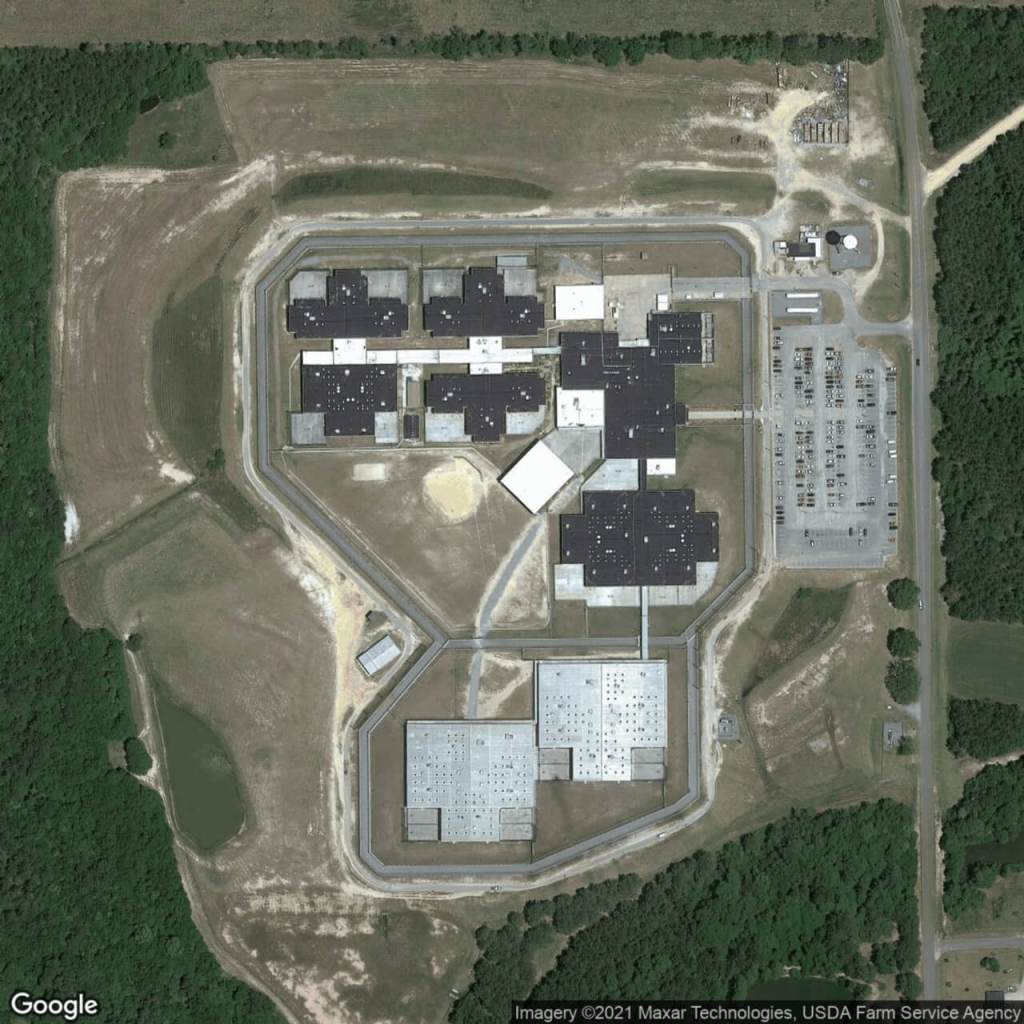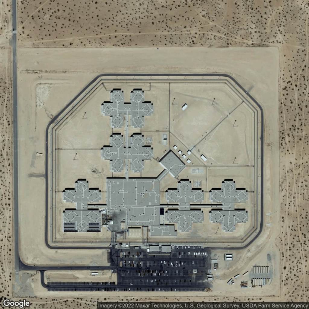 There are at least 662 prisons with prisoners who participate in some form of agriculture. This is sometimes visible from the air, revealing the carcerality of agricultural landscapes, while other times it is invisible, suggesting the carceral power to hide agricultural practices inside carceral architecture. While one could focus strictly on prisons, this would be to ignore the permeability of carceral space and the relationship of prisons to the broader social and ecological communities within which they reside. There are two images for each prison. The first is zoomed out to visually let the eyes stretch beyond prison walls, while the second is zoomed in to focus the viewer on the bricolage of agriculture and prison architecture.