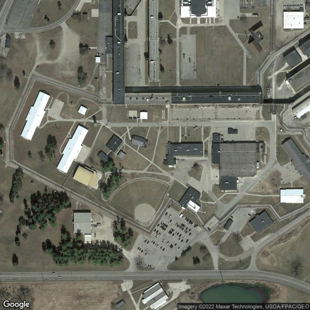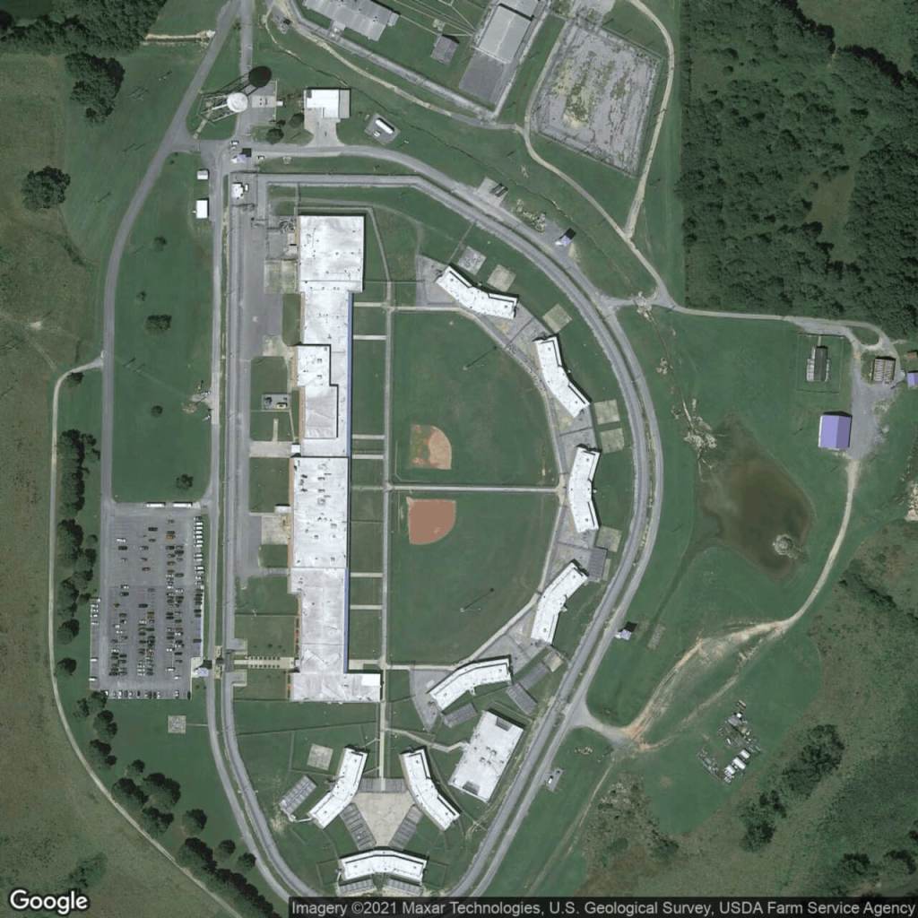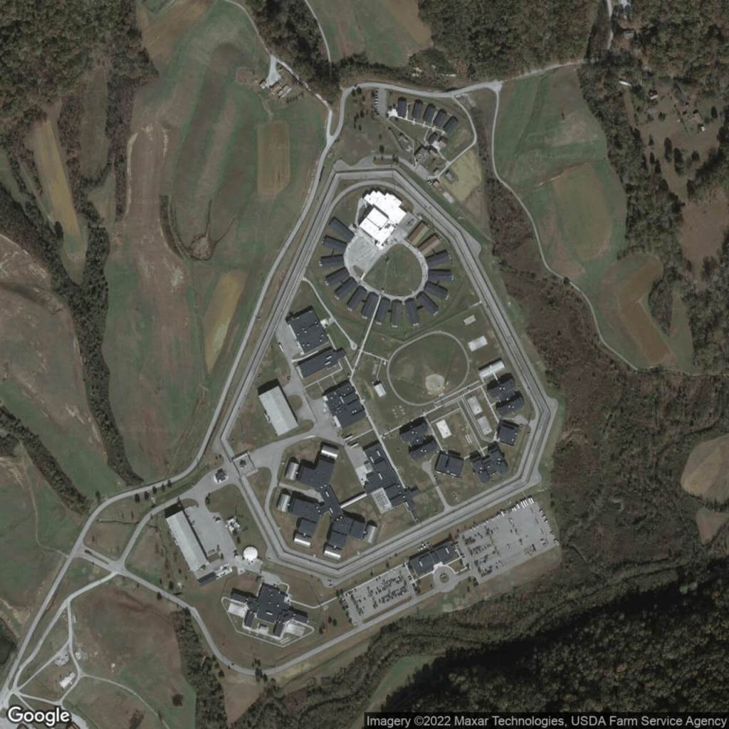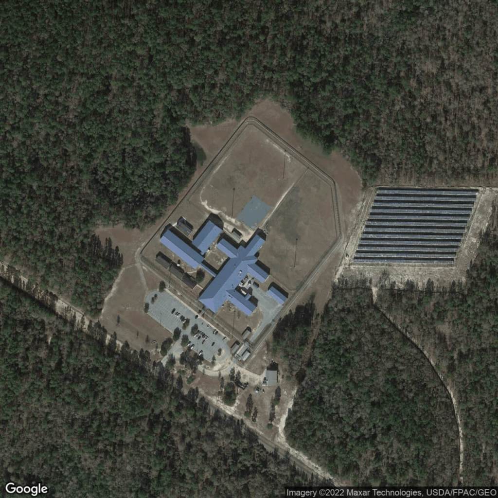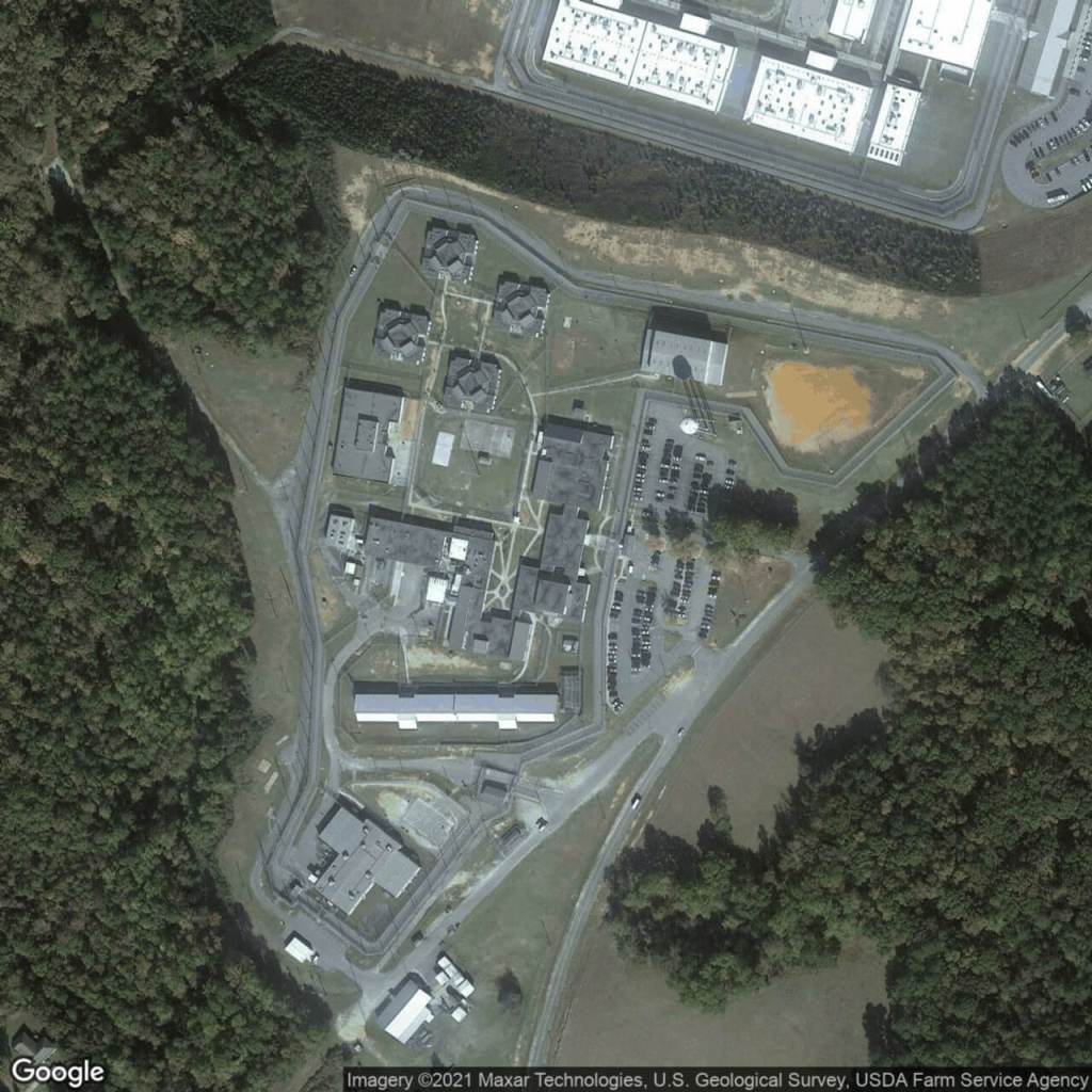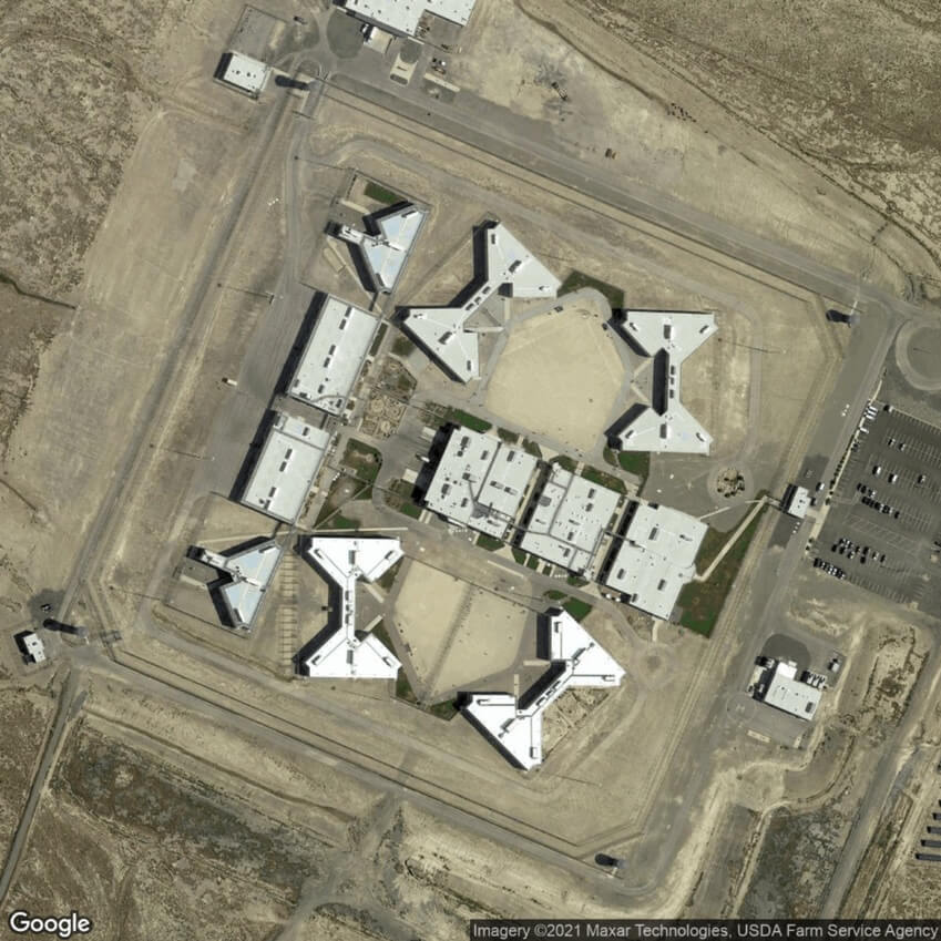 There are at least 662 prisons with prisoners who participate in some form of agriculture. This is sometimes visible from the air, revealing the carcerality of agricultural landscapes, while other times it is invisible, suggesting the carceral power to hide agricultural practices inside carceral architecture. While one could focus strictly on prisons, this would be to ignore the permeability of carceral space and the relationship of prisons to the broader social and ecological communities within which they reside. There are two images for each prison. The first is zoomed out to visually let the eyes stretch beyond prison walls, while the second is zoomed in to focus the viewer on the bricolage of agriculture and prison architecture.