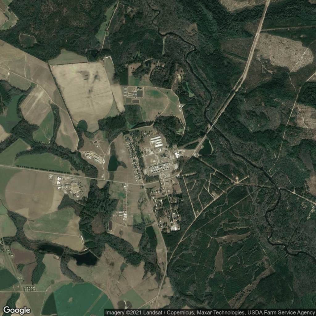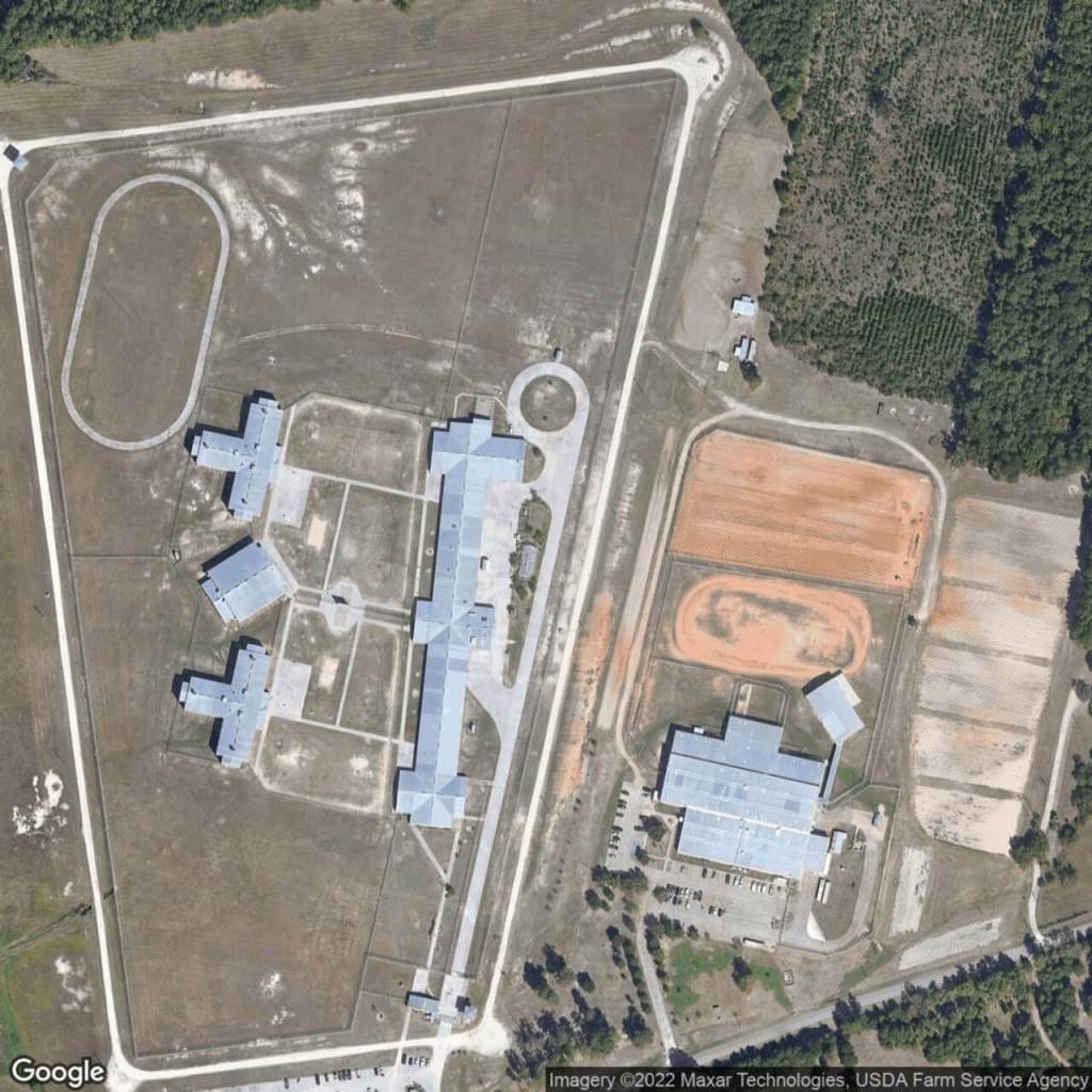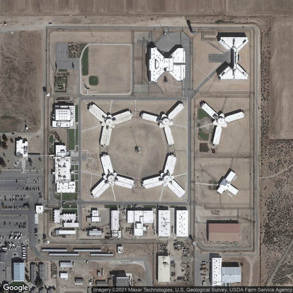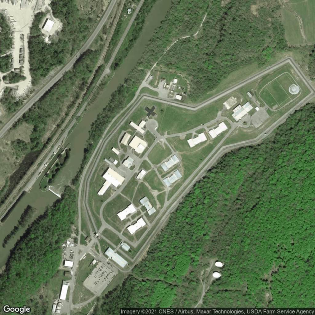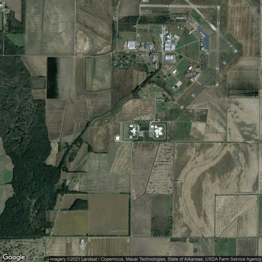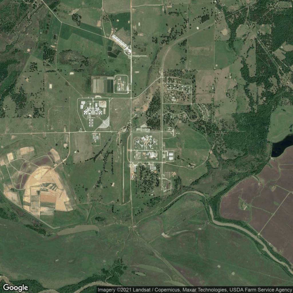 There are at least 662 prisons with prisoners who participate in some form of agriculture. This is sometimes visible from the air, revealing the carcerality of agricultural landscapes, while other times it is invisible, suggesting the carceral power to hide agricultural practices inside carceral architecture. While one could focus strictly on prisons, this would be to ignore the permeability of carceral space and the relationship of prisons to the broader social and ecological communities within which they reside. There are two images for each prison. The first is zoomed out to visually let the eyes stretch beyond prison walls, while the second is zoomed in to focus the viewer on the bricolage of agriculture and prison architecture.