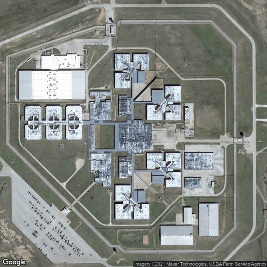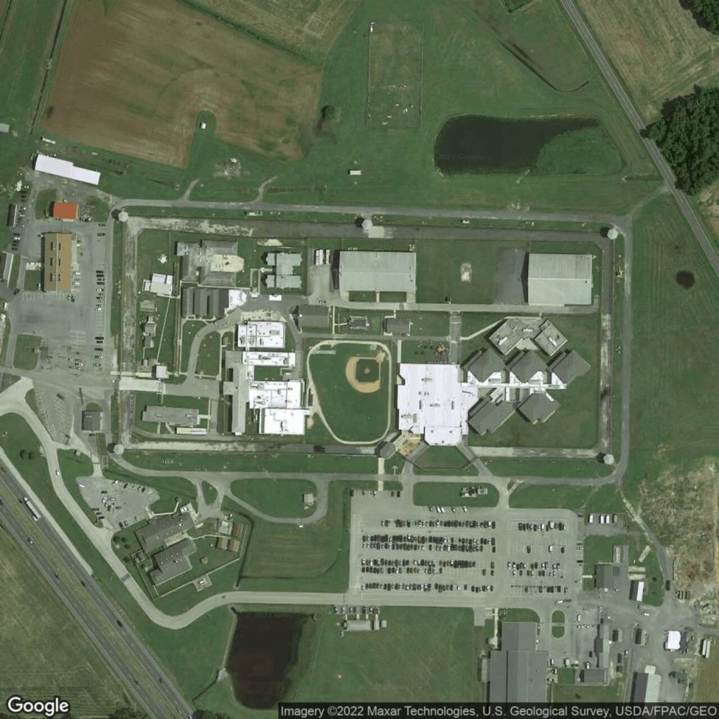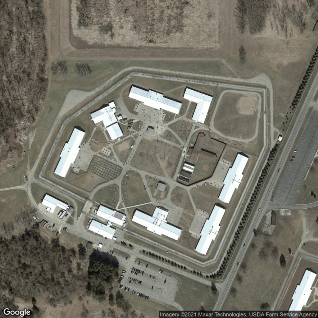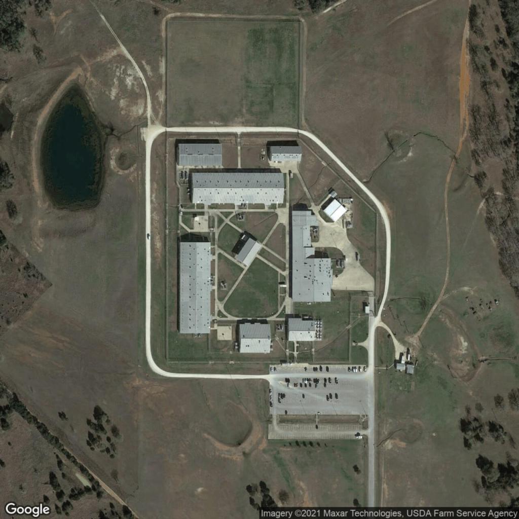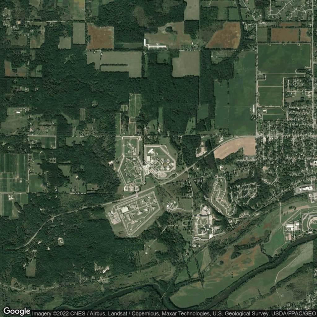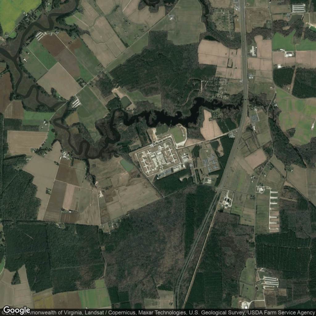 There are at least 662 prisons with prisoners who participate in some form of agriculture. This is sometimes visible from the air, revealing the carcerality of agricultural landscapes, while other times it is invisible, suggesting the carceral power to hide agricultural practices inside carceral architecture. While one could focus strictly on prisons, this would be to ignore the permeability of carceral space and the relationship of prisons to the broader social and ecological communities within which they reside. There are two images for each prison. The first is zoomed out to visually let the eyes stretch beyond prison walls, while the second is zoomed in to focus the viewer on the bricolage of agriculture and prison architecture.