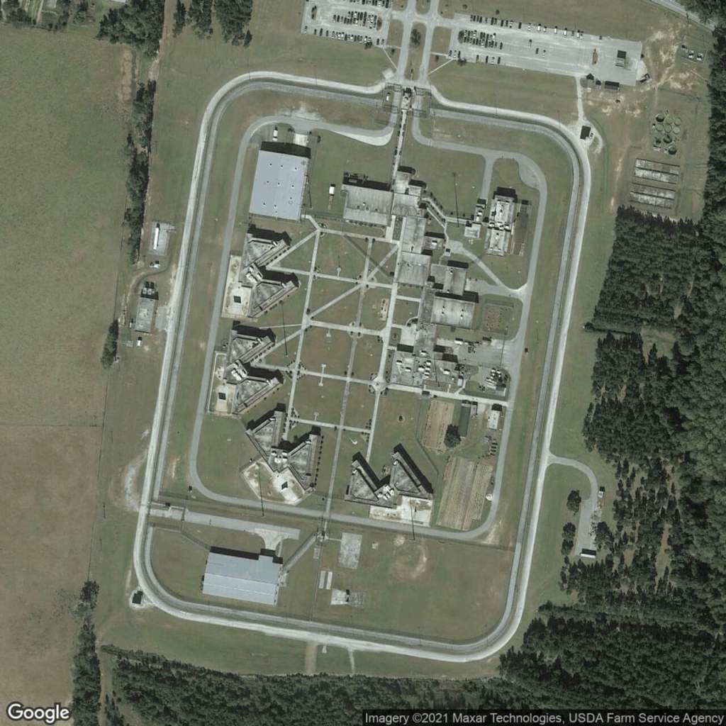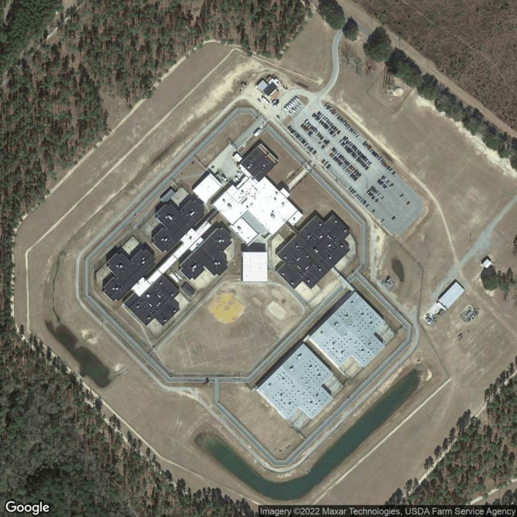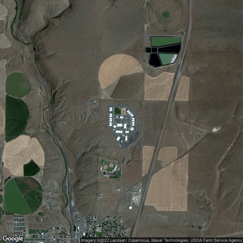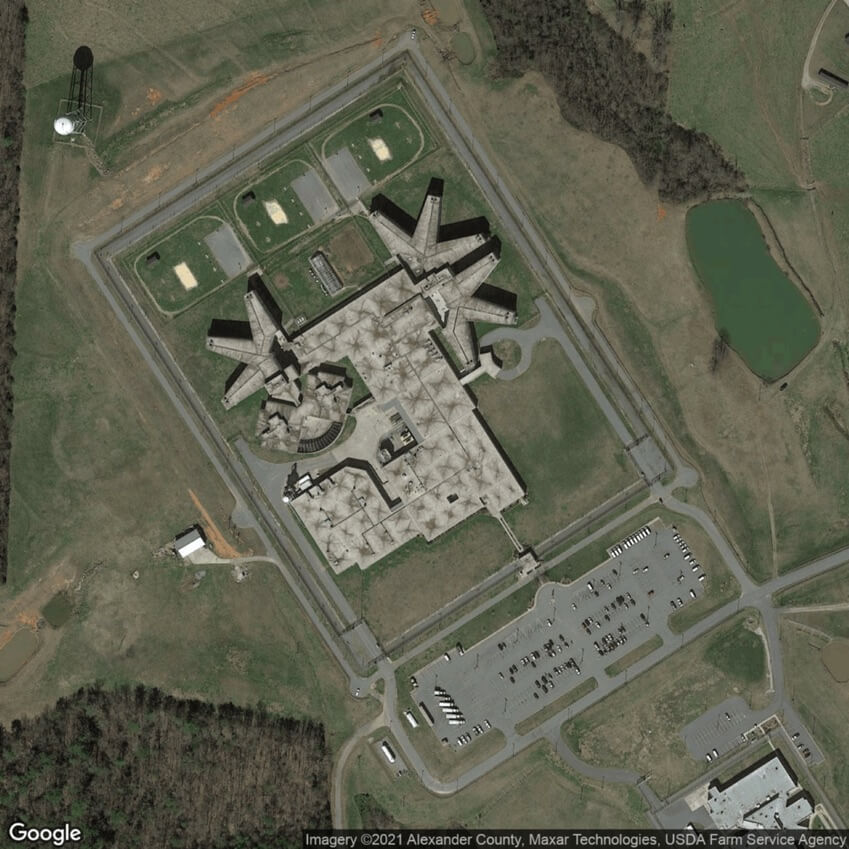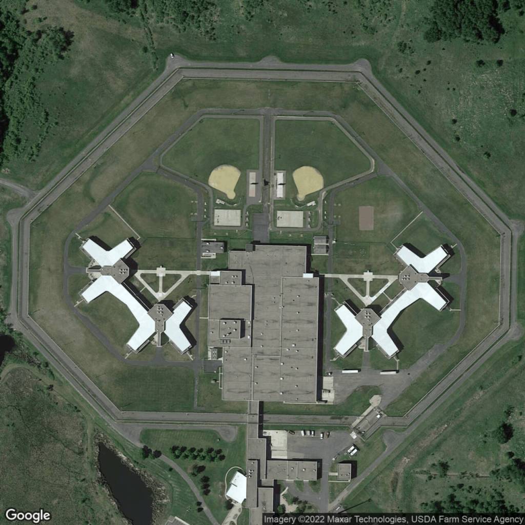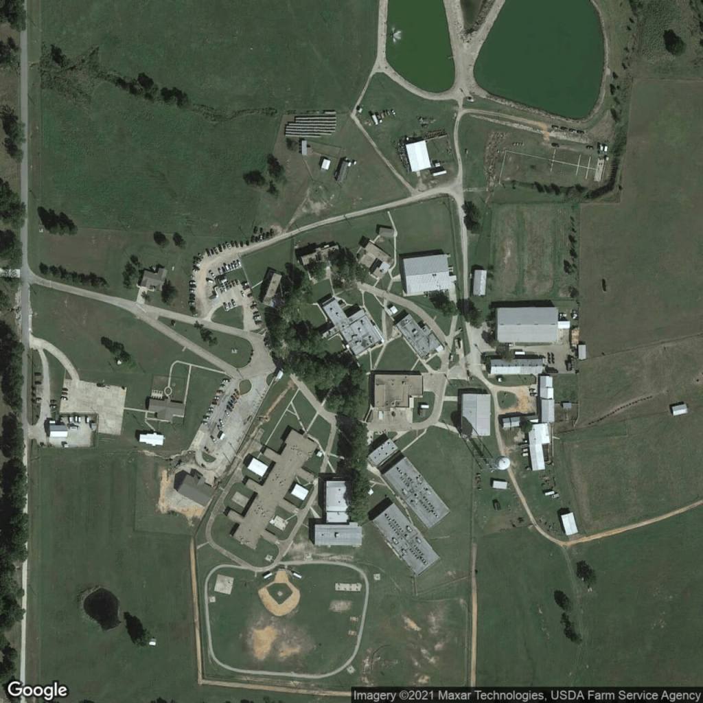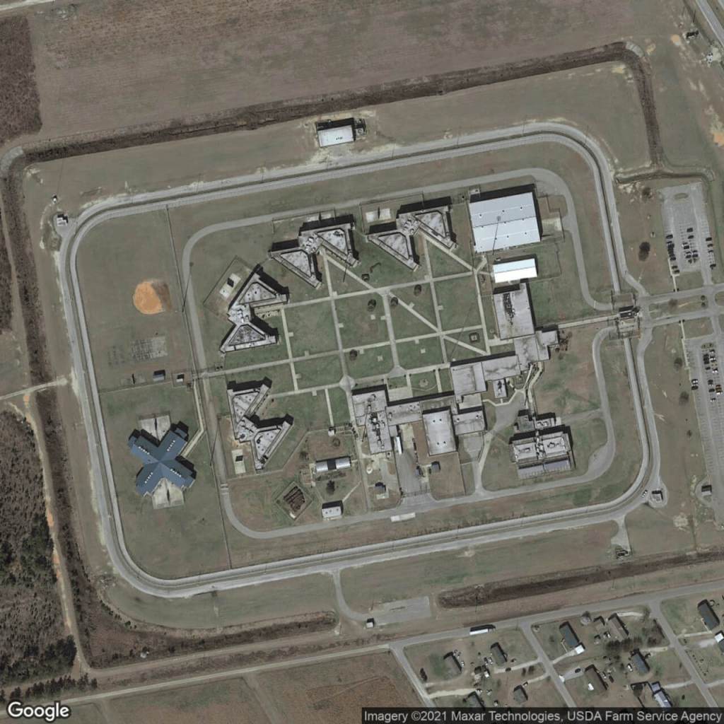 There are at least 662 prisons with prisoners who participate in some form of agriculture. This is sometimes visible from the air, revealing the carcerality of agricultural landscapes, while other times it is invisible, suggesting the carceral power to hide agricultural practices inside carceral architecture. While one could focus strictly on prisons, this would be to ignore the permeability of carceral space and the relationship of prisons to the broader social and ecological communities within which they reside. There are two images for each prison. The first is zoomed out to visually let the eyes stretch beyond prison walls, while the second is zoomed in to focus the viewer on the bricolage of agriculture and prison architecture.