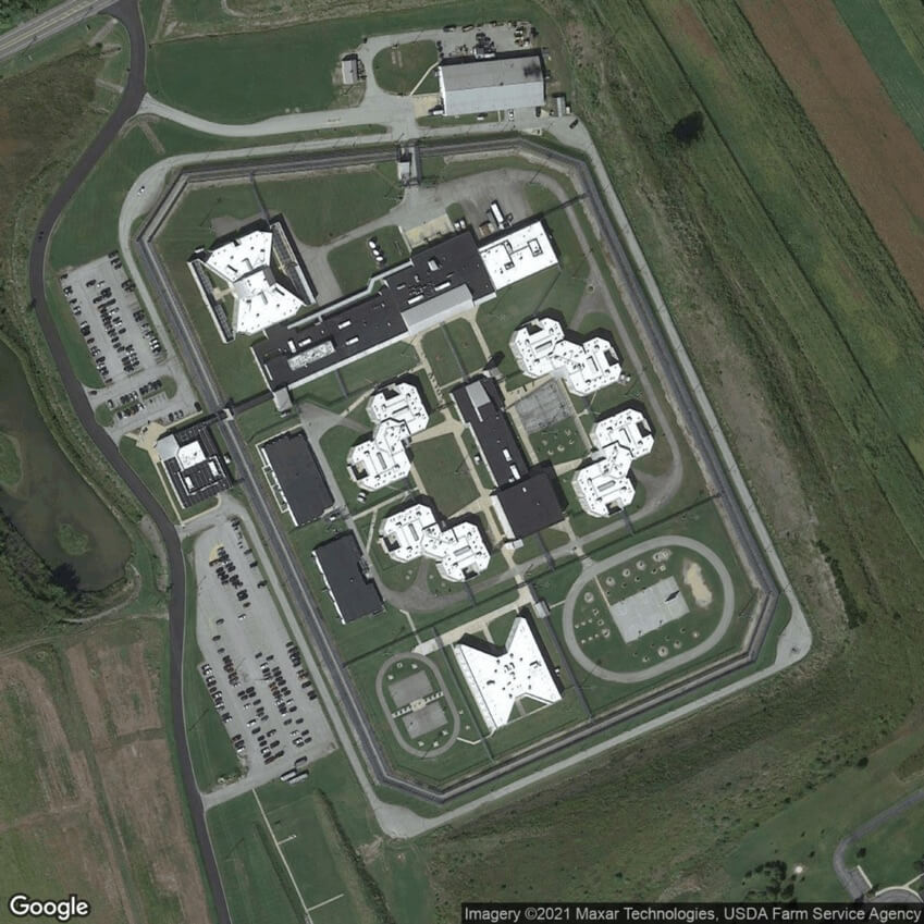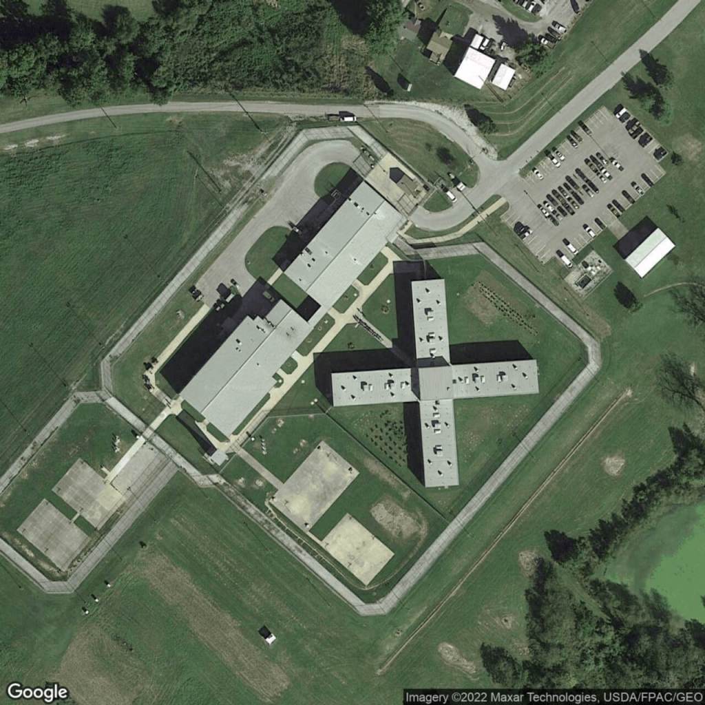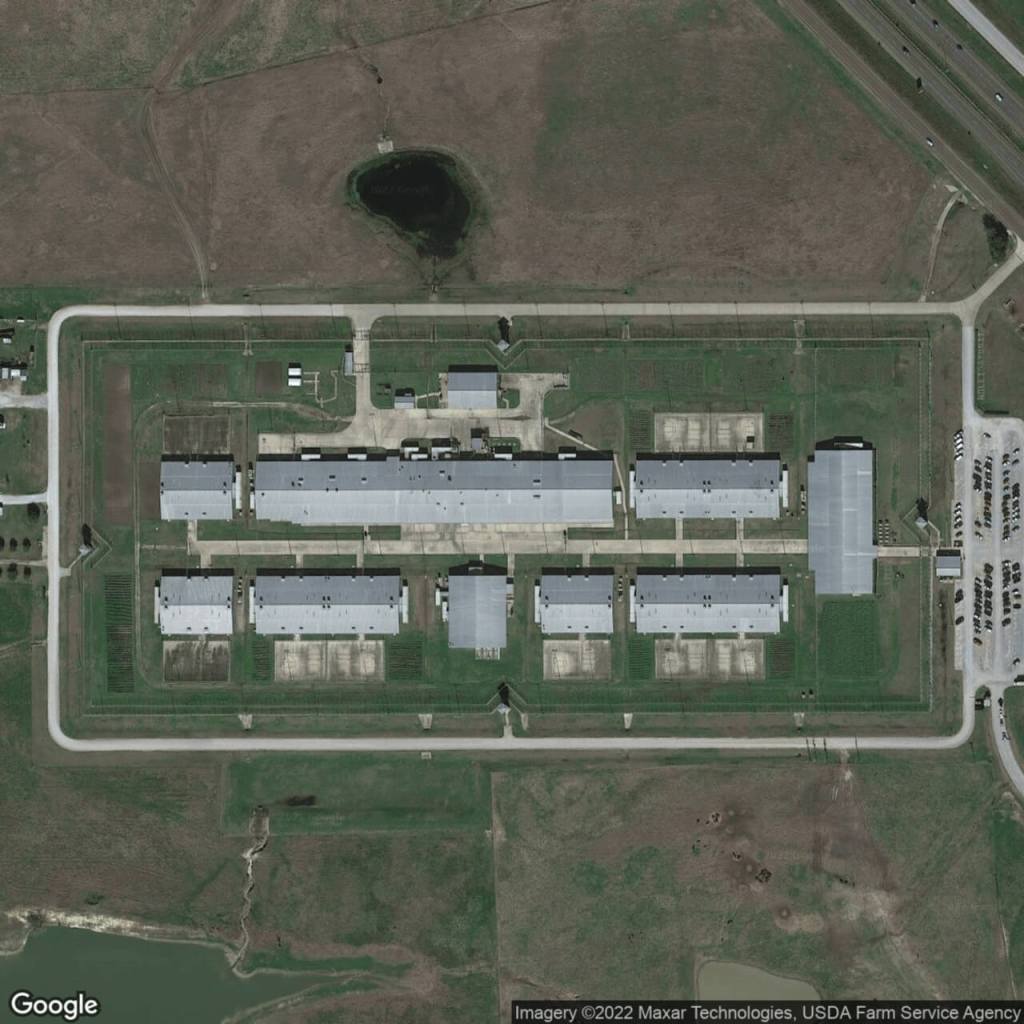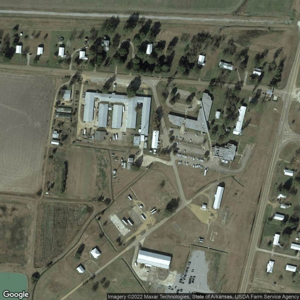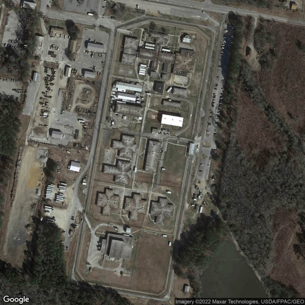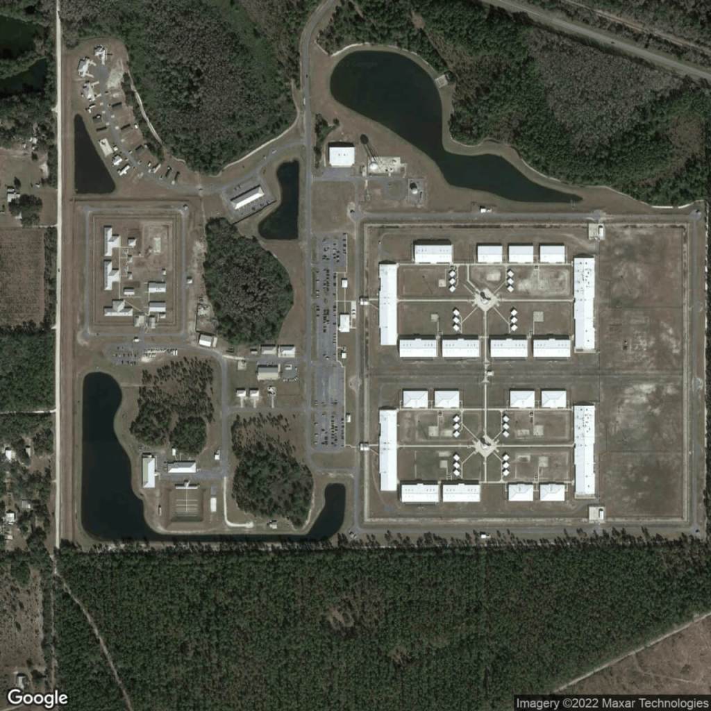 There are at least 662 prisons with prisoners who participate in some form of agriculture. This is sometimes visible from the air, revealing the carcerality of agricultural landscapes, while other times it is invisible, suggesting the carceral power to hide agricultural practices inside carceral architecture. While one could focus strictly on prisons, this would be to ignore the permeability of carceral space and the relationship of prisons to the broader social and ecological communities within which they reside. There are two images for each prison. The first is zoomed out to visually let the eyes stretch beyond prison walls, while the second is zoomed in to focus the viewer on the bricolage of agriculture and prison architecture.