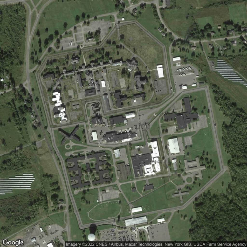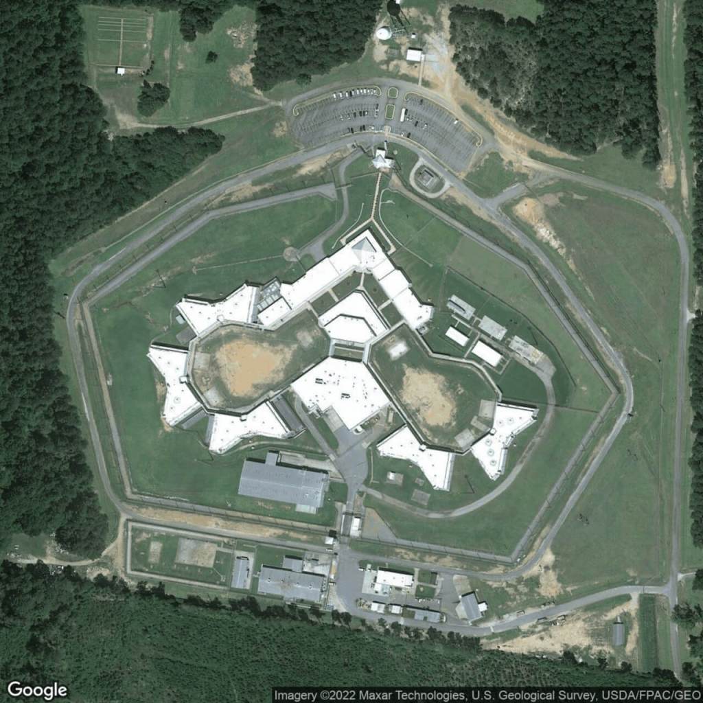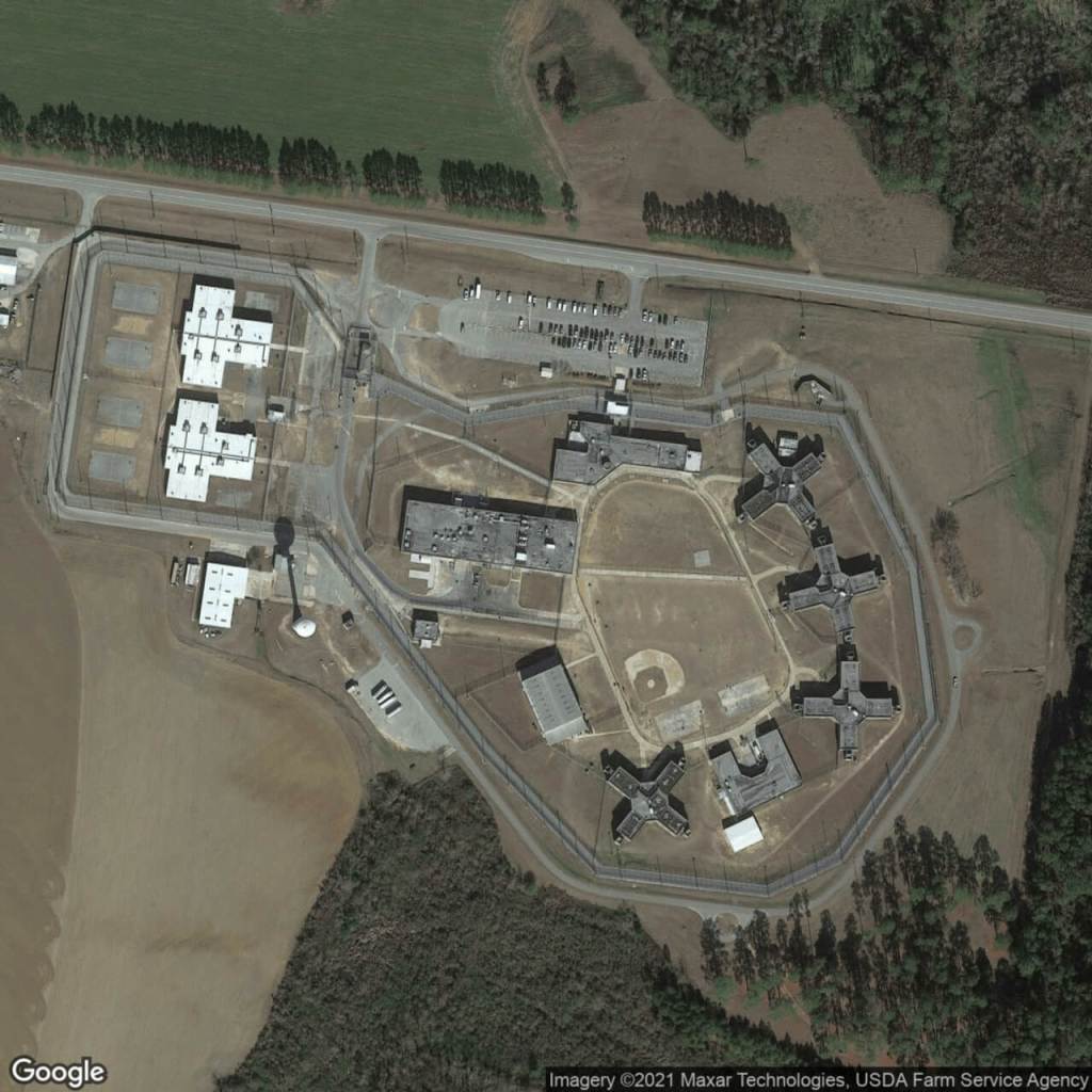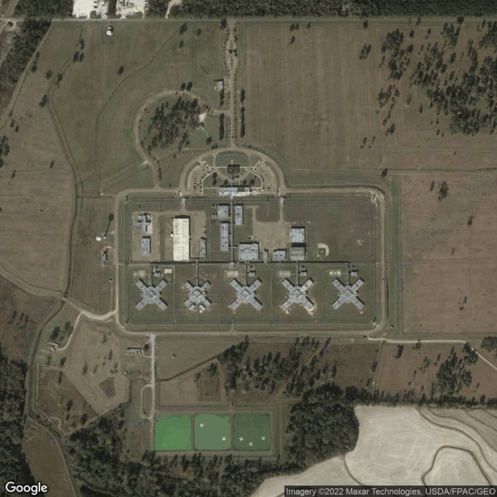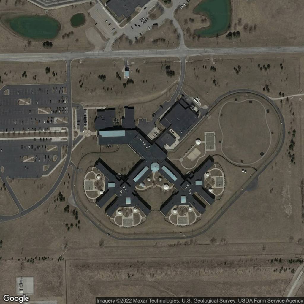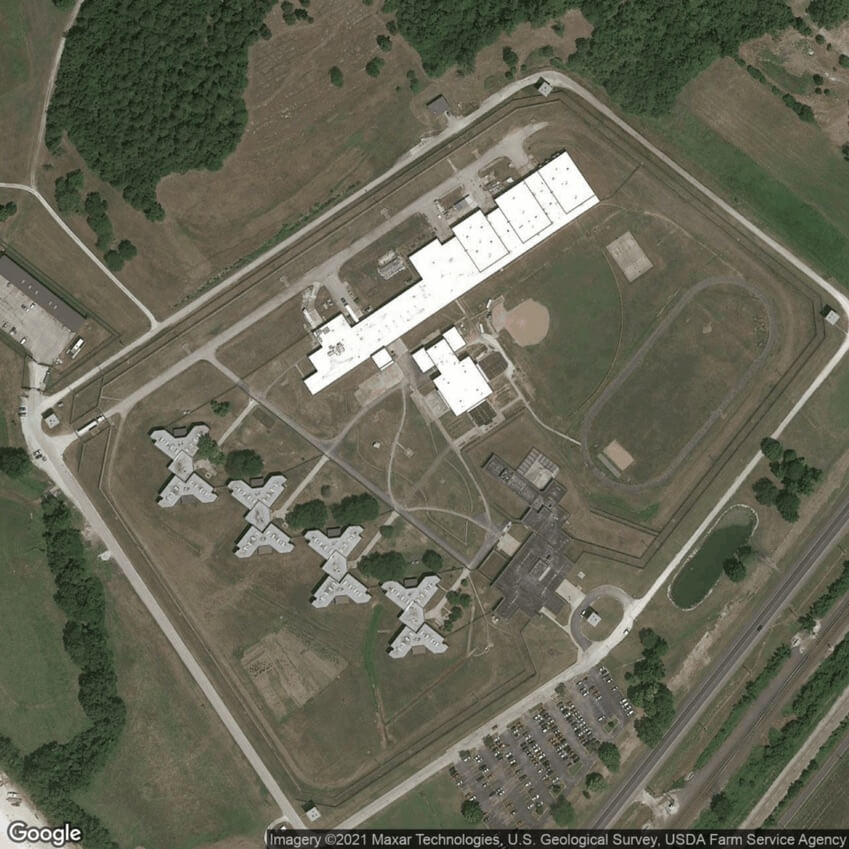 There are at least 662 prisons with prisoners who participate in some form of agriculture. This is sometimes visible from the air, revealing the carcerality of agricultural landscapes, while other times it is invisible, suggesting the carceral power to hide agricultural practices inside carceral architecture. While one could focus strictly on prisons, this would be to ignore the permeability of carceral space and the relationship of prisons to the broader social and ecological communities within which they reside. There are two images for each prison. The first is zoomed out to visually let the eyes stretch beyond prison walls, while the second is zoomed in to focus the viewer on the bricolage of agriculture and prison architecture.