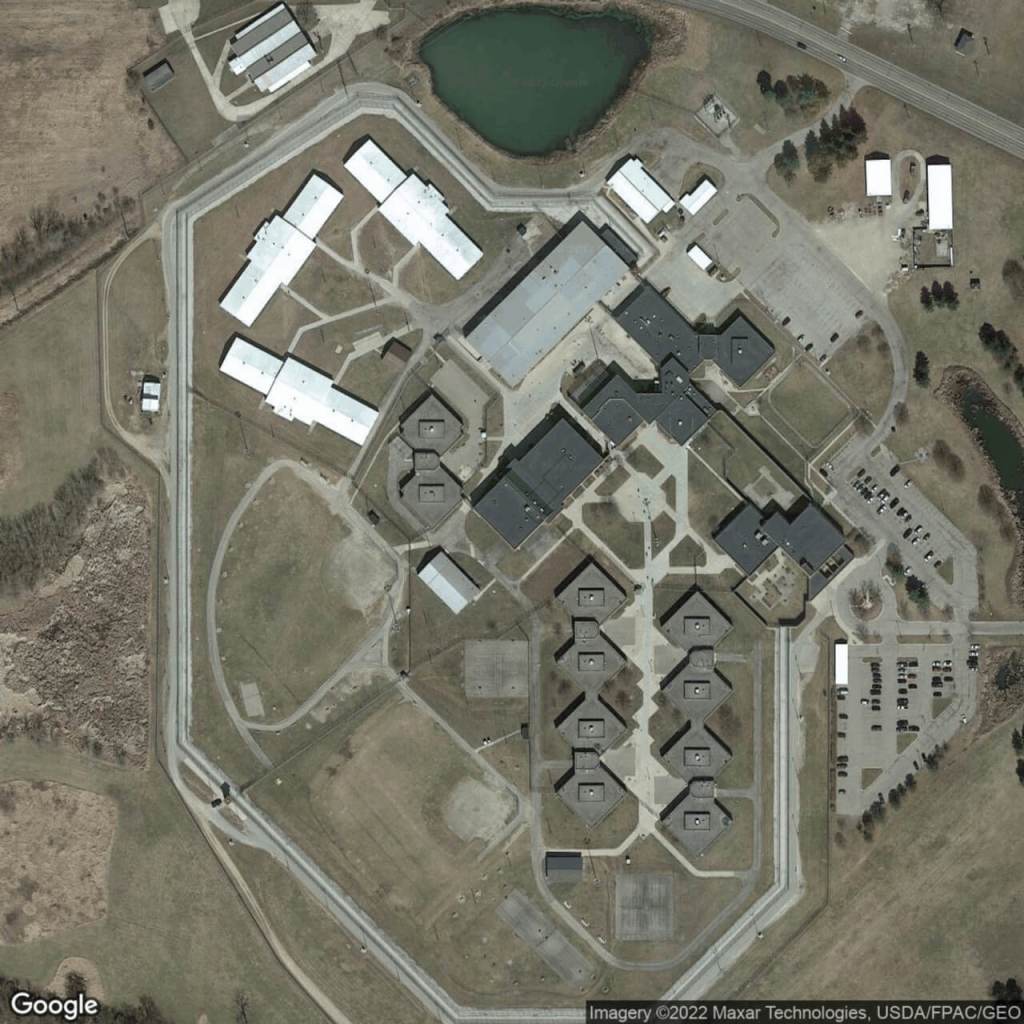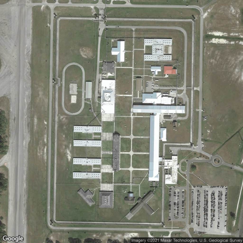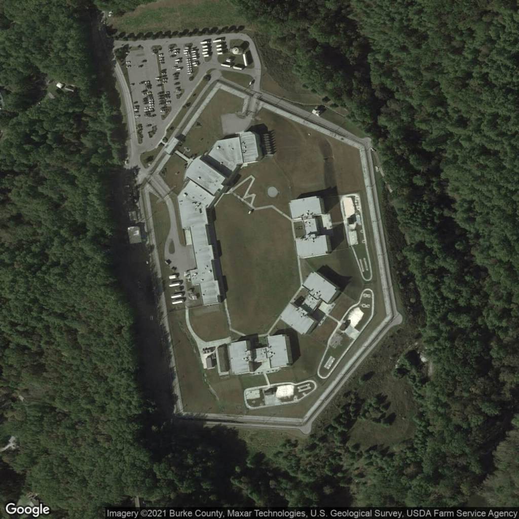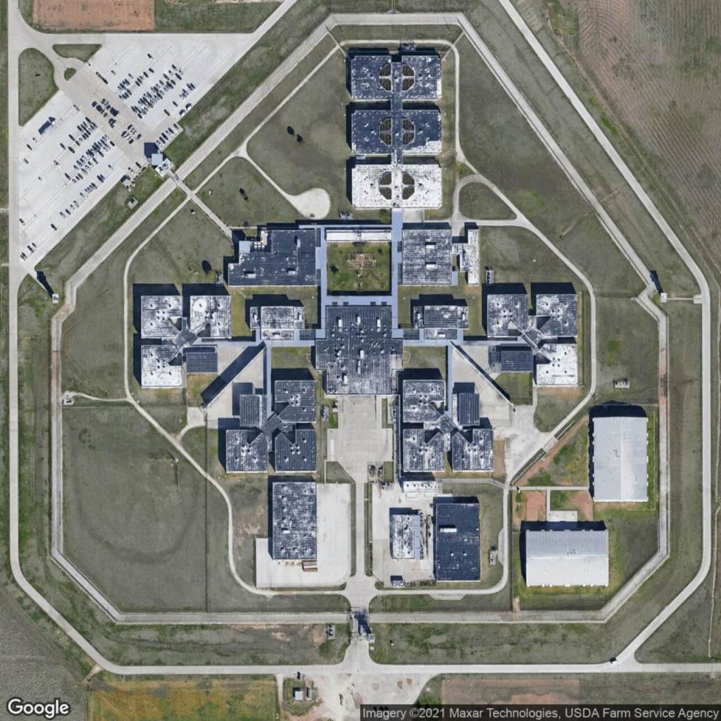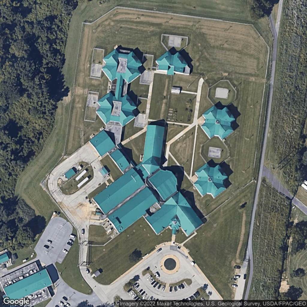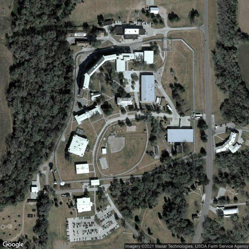 There are at least 662 prisons with prisoners who participate in some form of agriculture. This is sometimes visible from the air, revealing the carcerality of agricultural landscapes, while other times it is invisible, suggesting the carceral power to hide agricultural practices inside carceral architecture. While one could focus strictly on prisons, this would be to ignore the permeability of carceral space and the relationship of prisons to the broader social and ecological communities within which they reside. There are two images for each prison. The first is zoomed out to visually let the eyes stretch beyond prison walls, while the second is zoomed in to focus the viewer on the bricolage of agriculture and prison architecture.