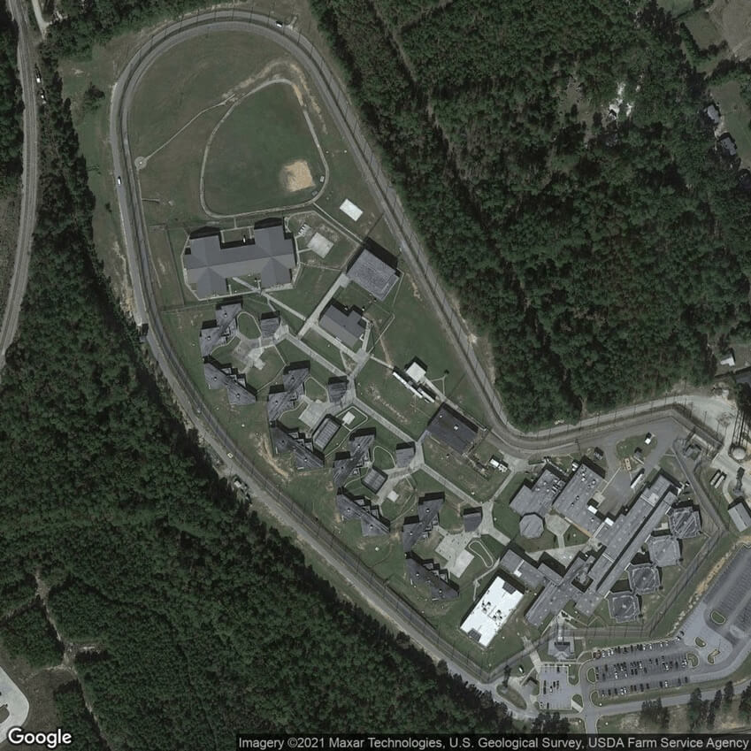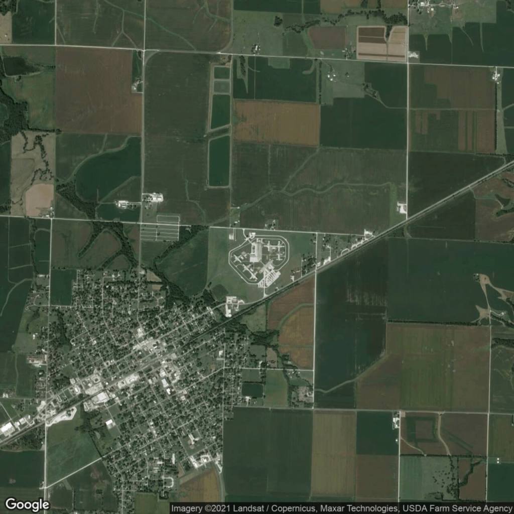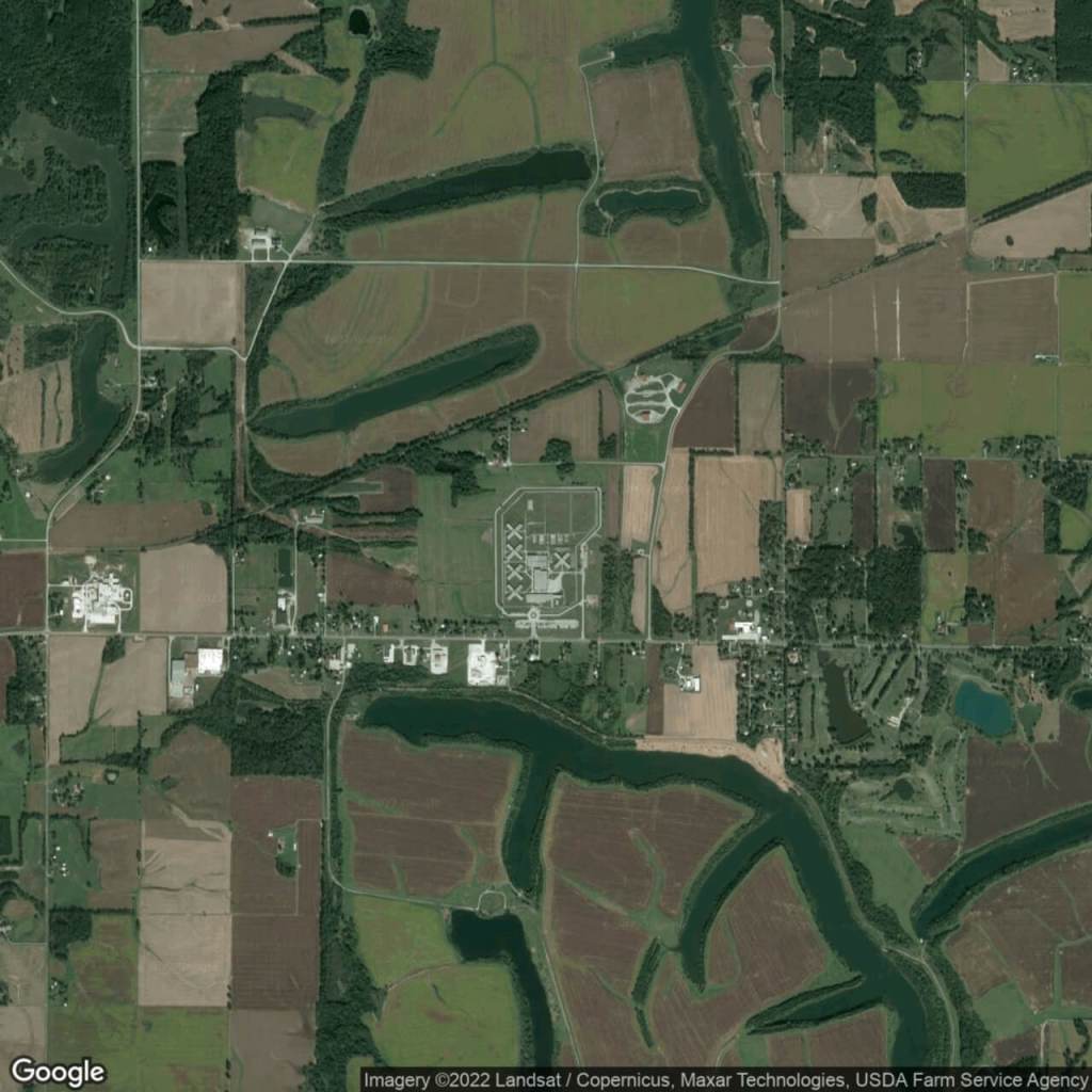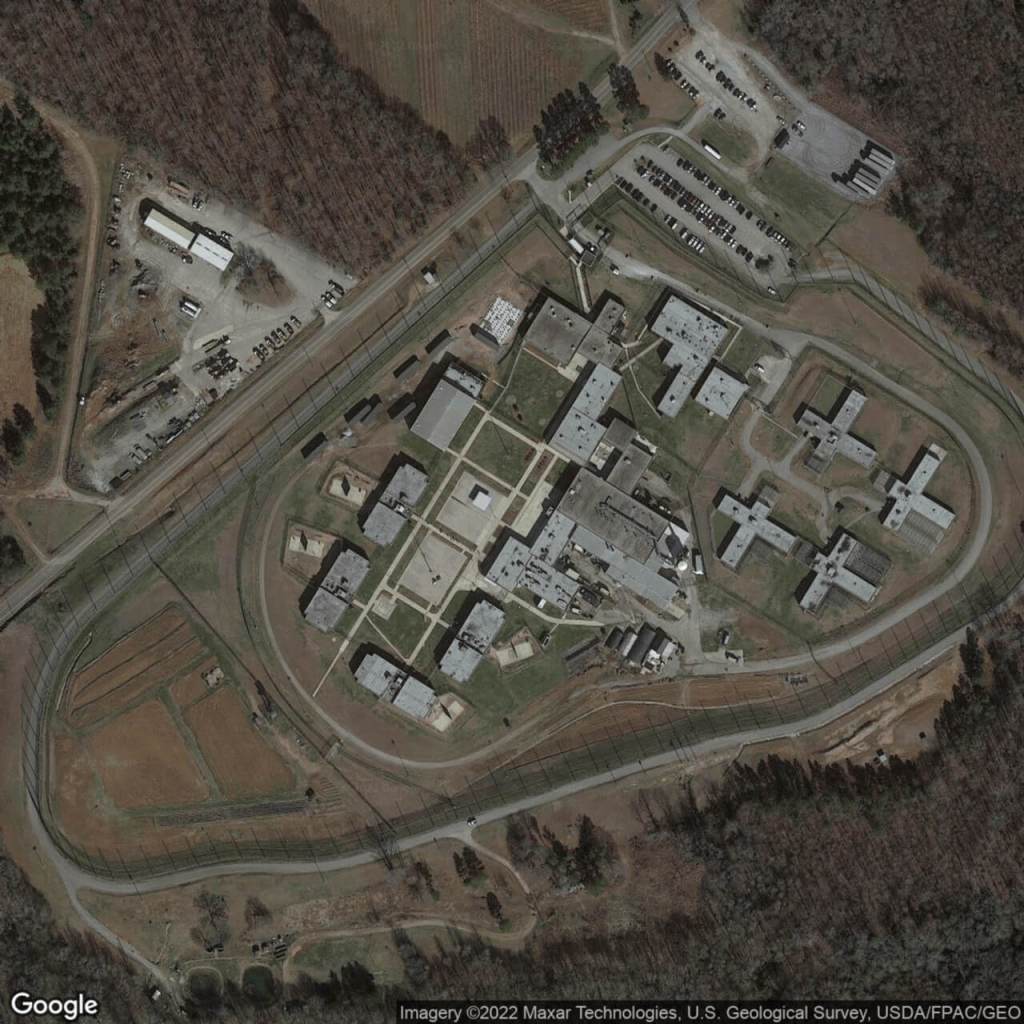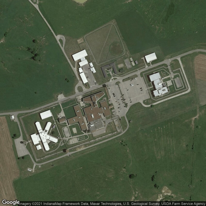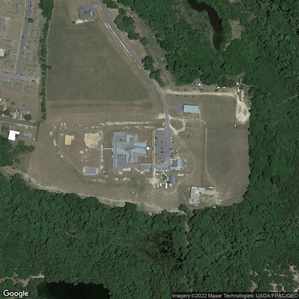 There are at least 662 prisons with prisoners who participate in some form of agriculture. This is sometimes visible from the air, revealing the carcerality of agricultural landscapes, while other times it is invisible, suggesting the carceral power to hide agricultural practices inside carceral architecture. While one could focus strictly on prisons, this would be to ignore the permeability of carceral space and the relationship of prisons to the broader social and ecological communities within which they reside. There are two images for each prison. The first is zoomed out to visually let the eyes stretch beyond prison walls, while the second is zoomed in to focus the viewer on the bricolage of agriculture and prison architecture.