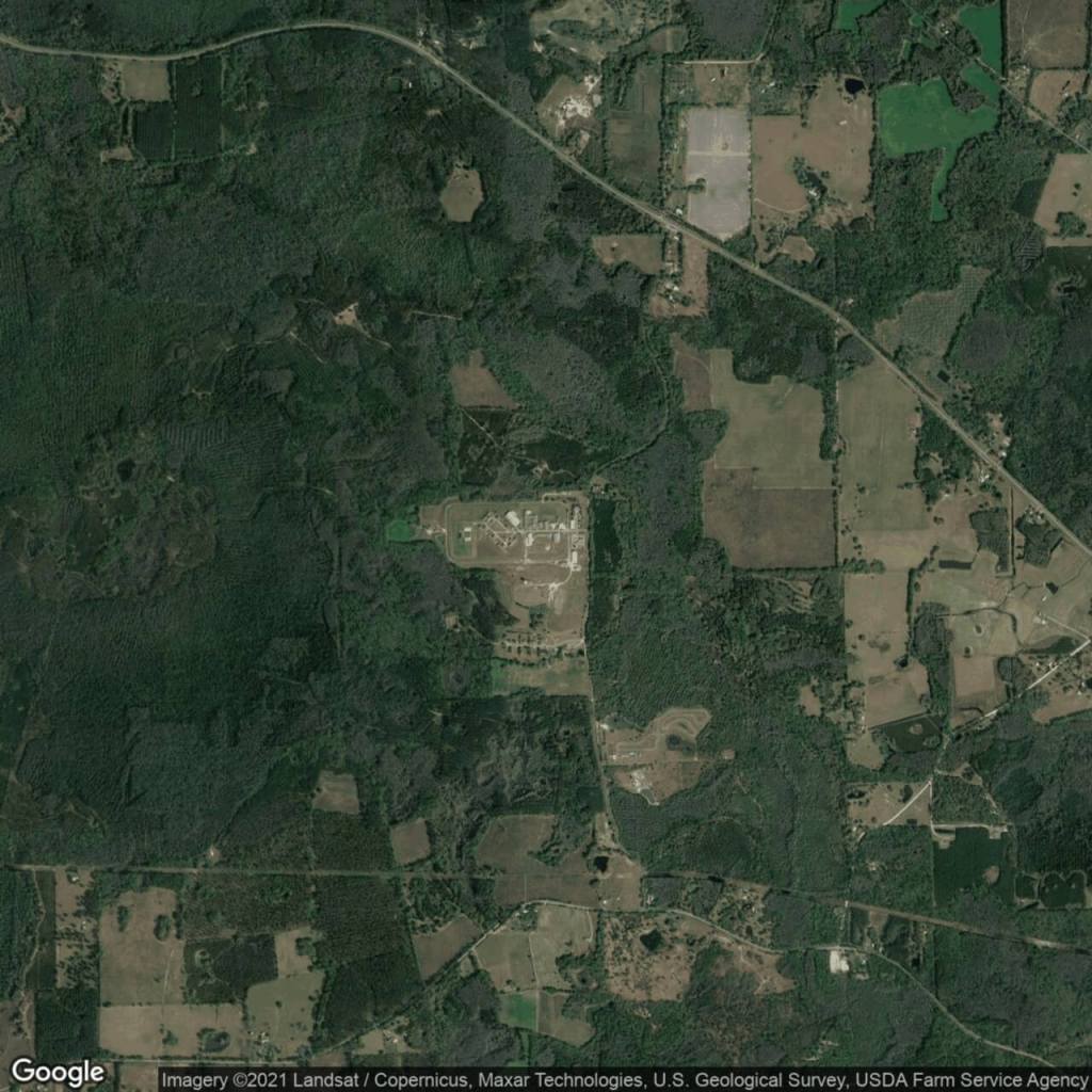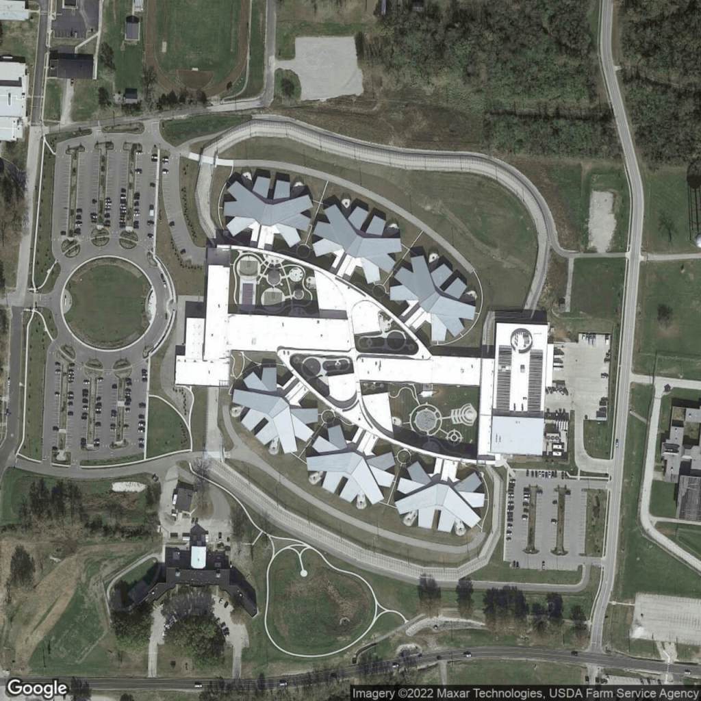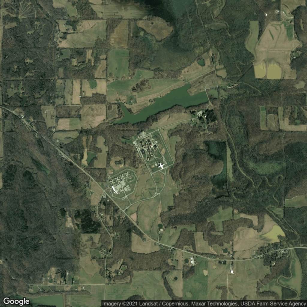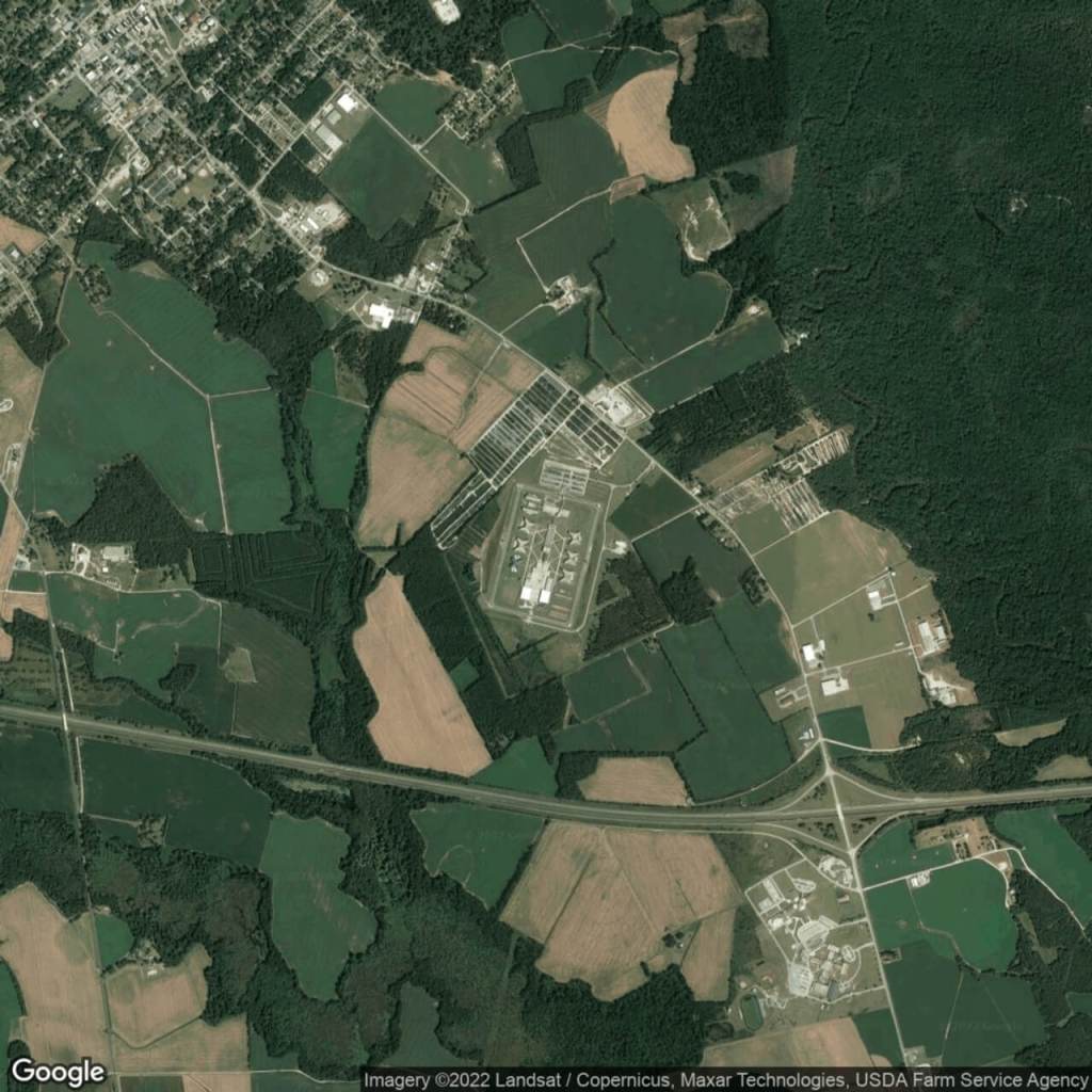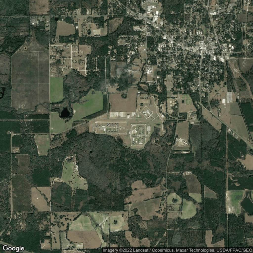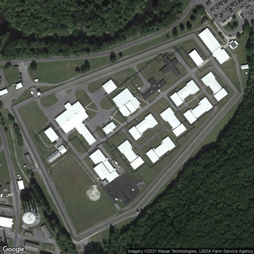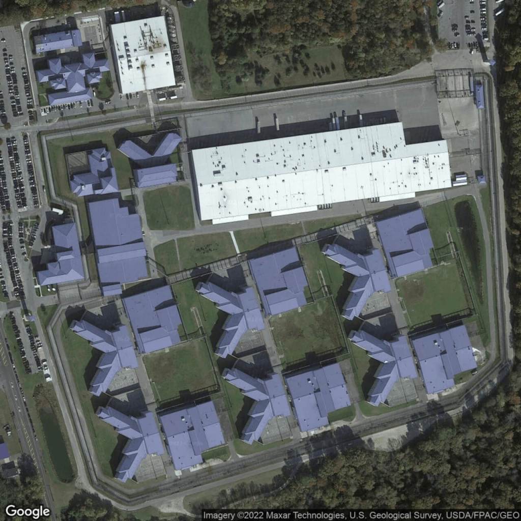 There are at least 662 prisons with prisoners who participate in some form of agriculture. This is sometimes visible from the air, revealing the carcerality of agricultural landscapes, while other times it is invisible, suggesting the carceral power to hide agricultural practices inside carceral architecture. While one could focus strictly on prisons, this would be to ignore the permeability of carceral space and the relationship of prisons to the broader social and ecological communities within which they reside. There are two images for each prison. The first is zoomed out to visually let the eyes stretch beyond prison walls, while the second is zoomed in to focus the viewer on the bricolage of agriculture and prison architecture.