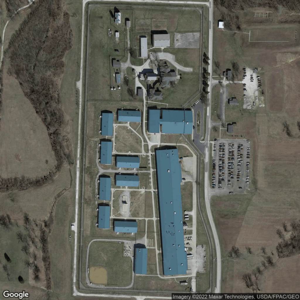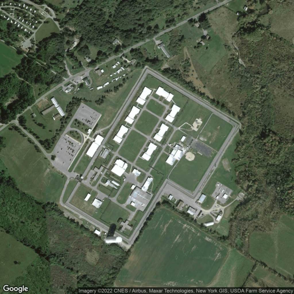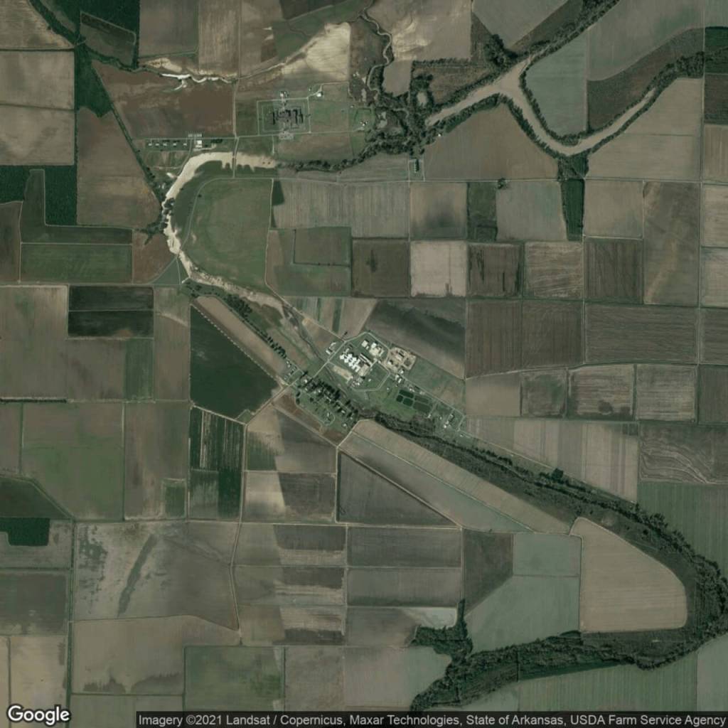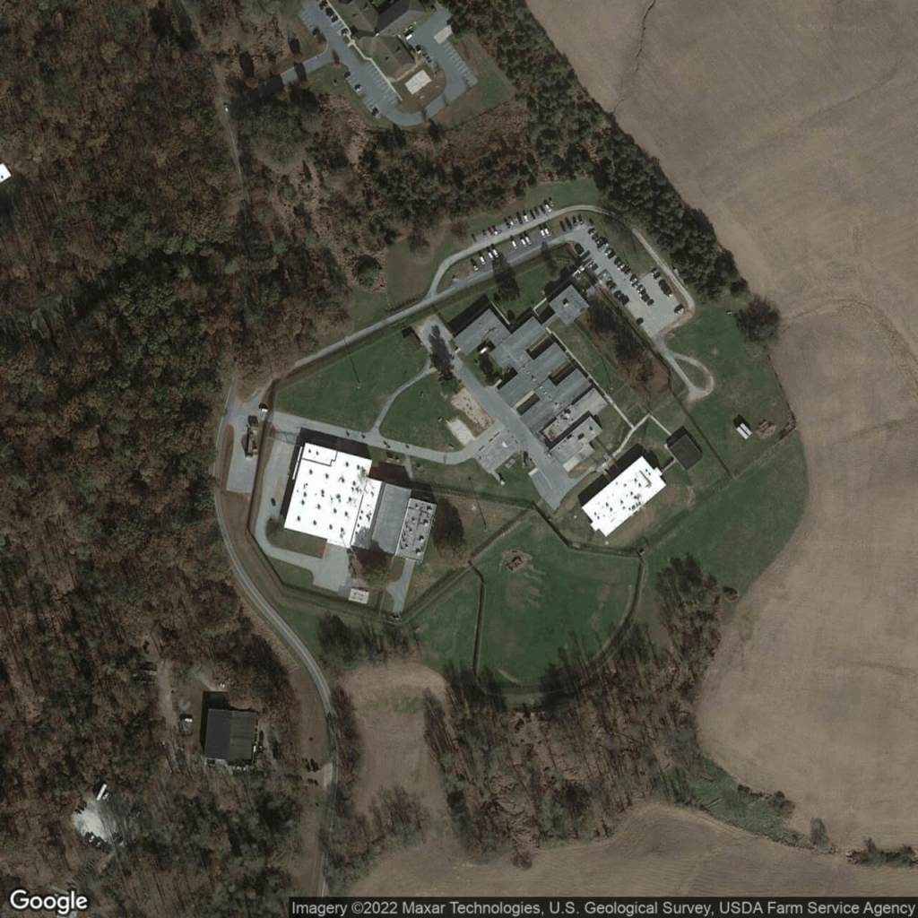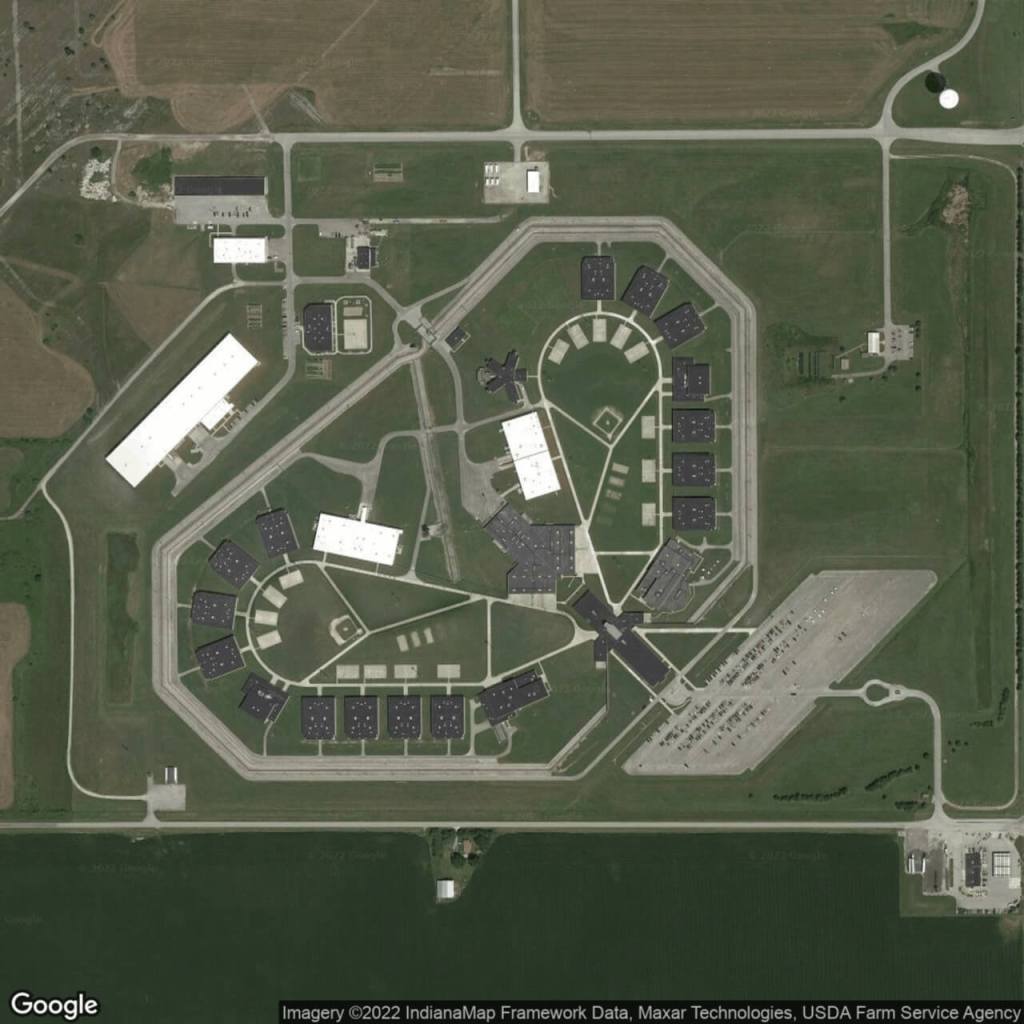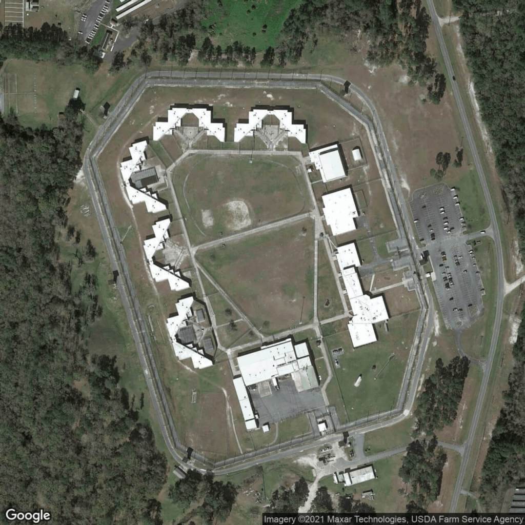 There are at least 662 prisons with prisoners who participate in some form of agriculture. This is sometimes visible from the air, revealing the carcerality of agricultural landscapes, while other times it is invisible, suggesting the carceral power to hide agricultural practices inside carceral architecture. While one could focus strictly on prisons, this would be to ignore the permeability of carceral space and the relationship of prisons to the broader social and ecological communities within which they reside. There are two images for each prison. The first is zoomed out to visually let the eyes stretch beyond prison walls, while the second is zoomed in to focus the viewer on the bricolage of agriculture and prison architecture.