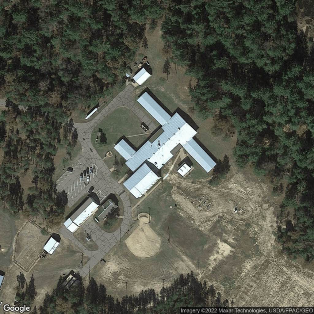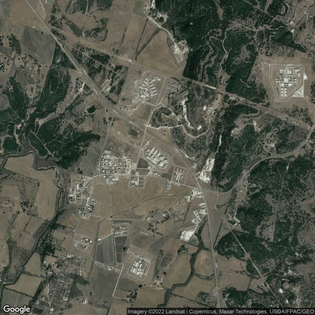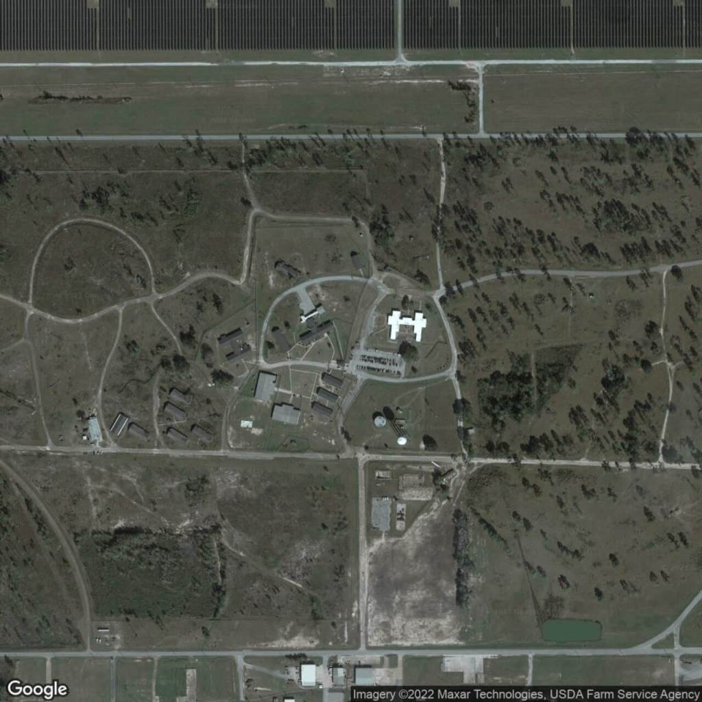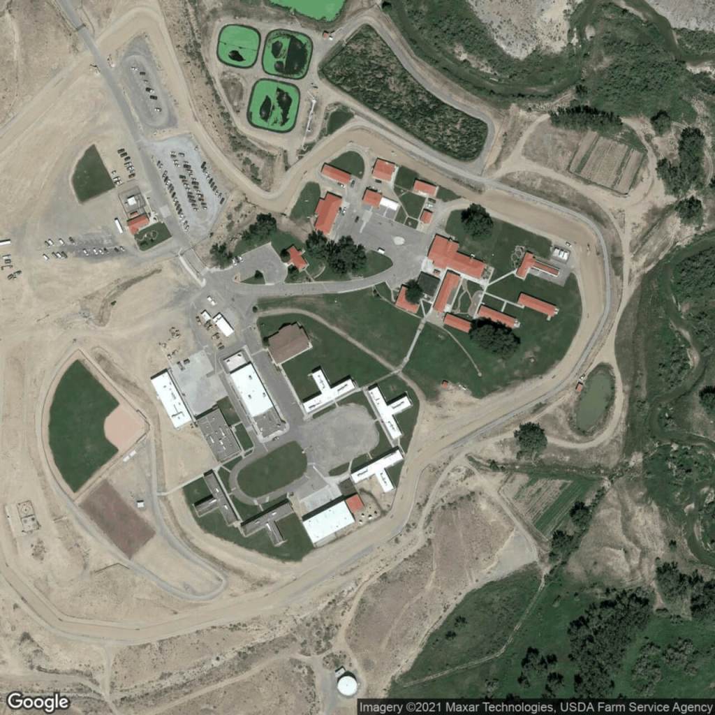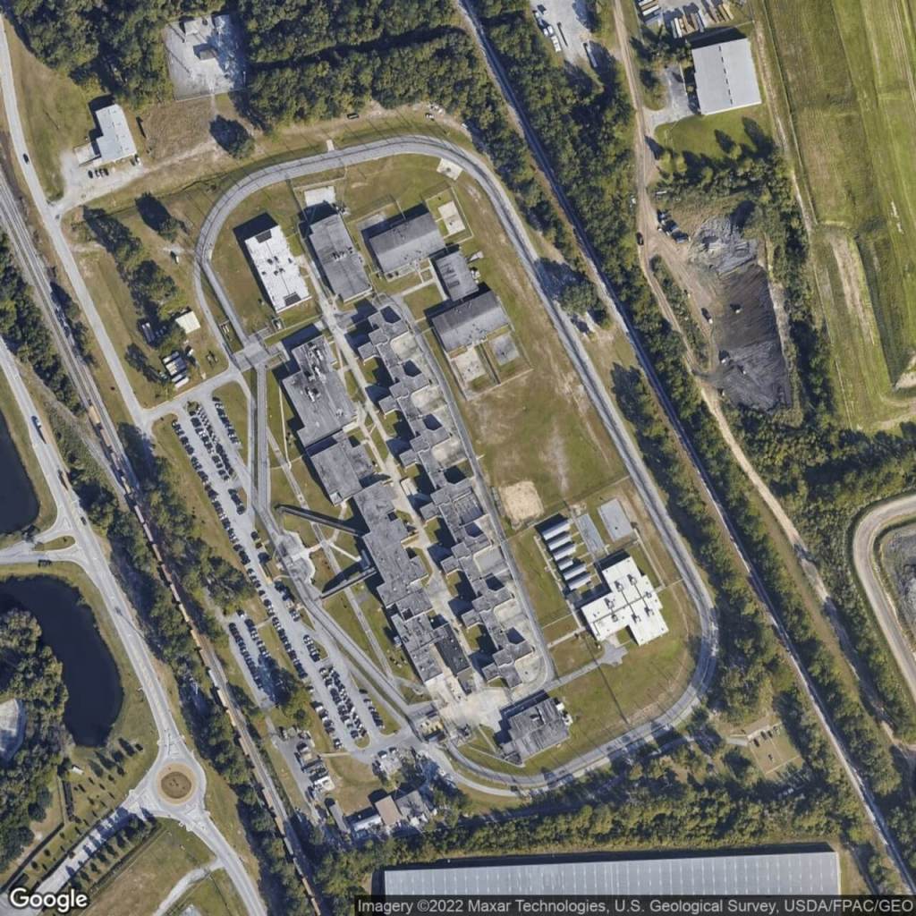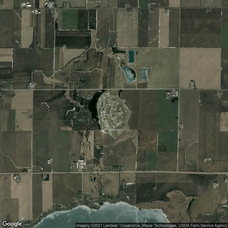 There are at least 662 prisons with prisoners who participate in some form of agriculture. This is sometimes visible from the air, revealing the carcerality of agricultural landscapes, while other times it is invisible, suggesting the carceral power to hide agricultural practices inside carceral architecture. While one could focus strictly on prisons, this would be to ignore the permeability of carceral space and the relationship of prisons to the broader social and ecological communities within which they reside. There are two images for each prison. The first is zoomed out to visually let the eyes stretch beyond prison walls, while the second is zoomed in to focus the viewer on the bricolage of agriculture and prison architecture.