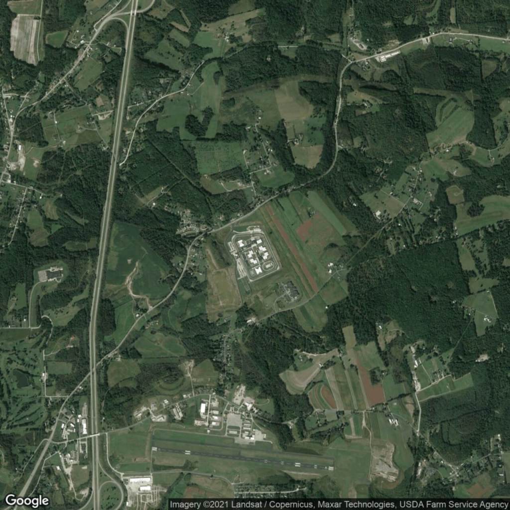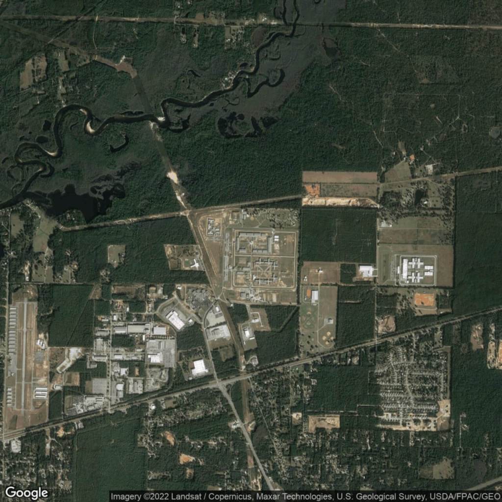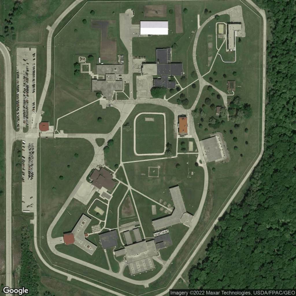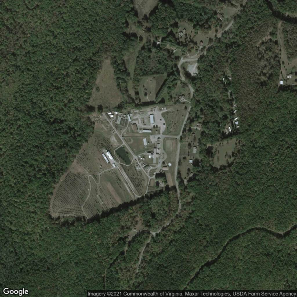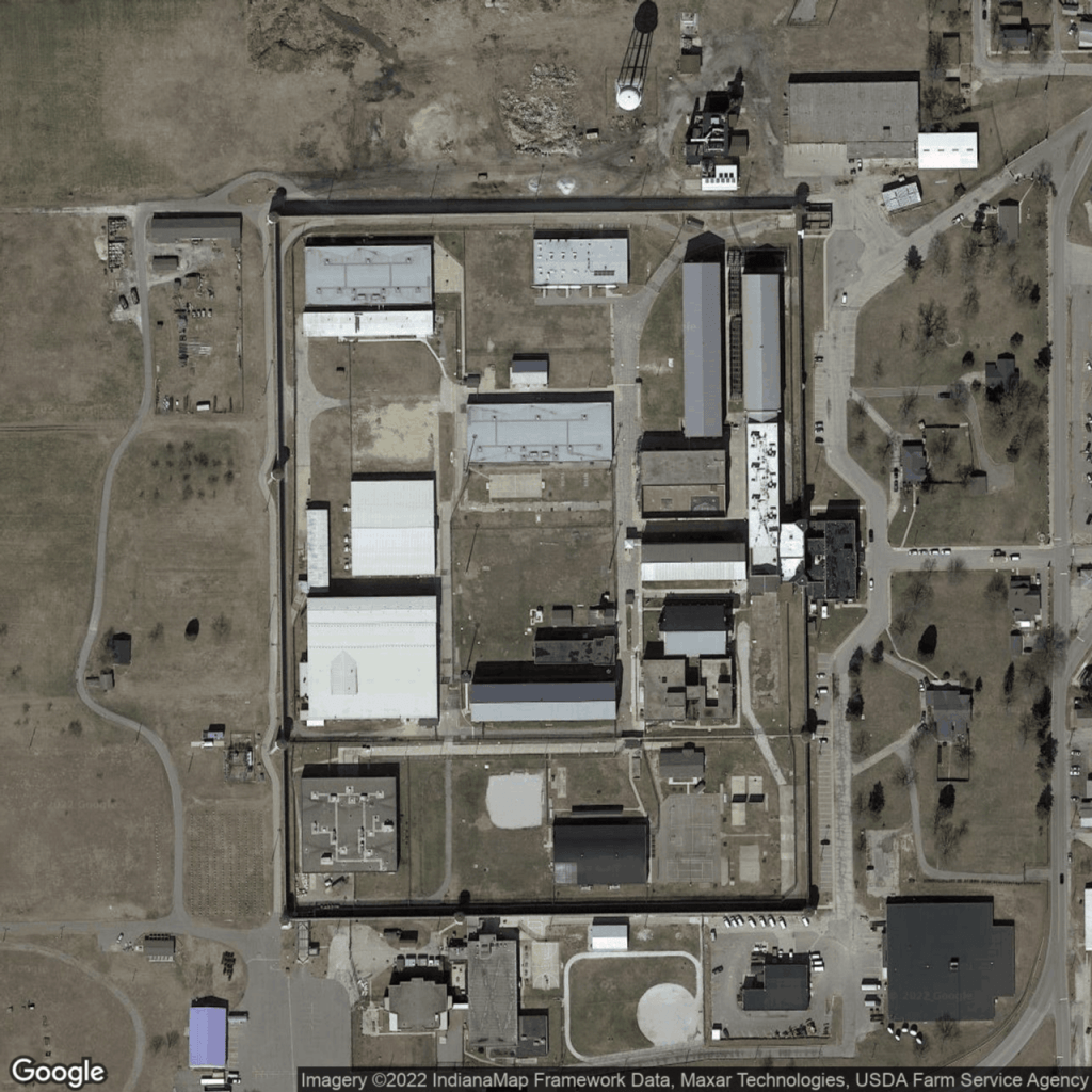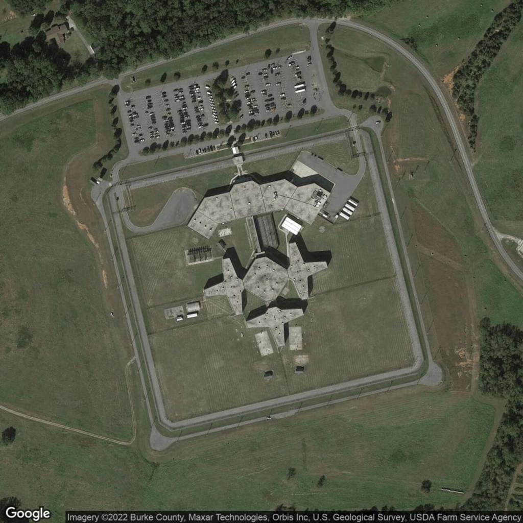 There are at least 662 prisons with prisoners who participate in some form of agriculture. This is sometimes visible from the air, revealing the carcerality of agricultural landscapes, while other times it is invisible, suggesting the carceral power to hide agricultural practices inside carceral architecture. While one could focus strictly on prisons, this would be to ignore the permeability of carceral space and the relationship of prisons to the broader social and ecological communities within which they reside. There are two images for each prison. The first is zoomed out to visually let the eyes stretch beyond prison walls, while the second is zoomed in to focus the viewer on the bricolage of agriculture and prison architecture.