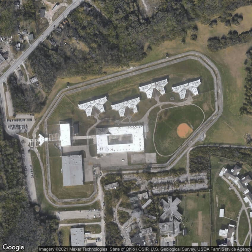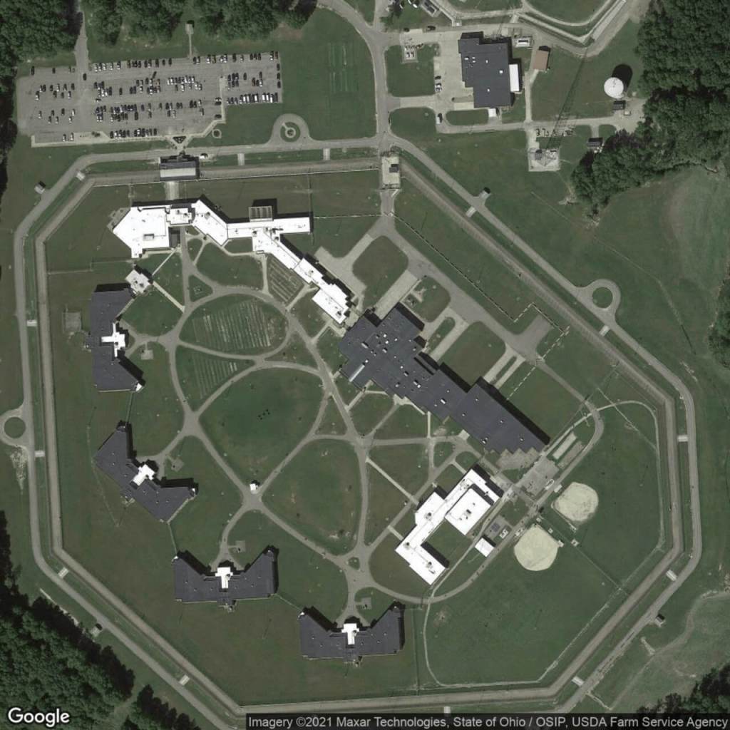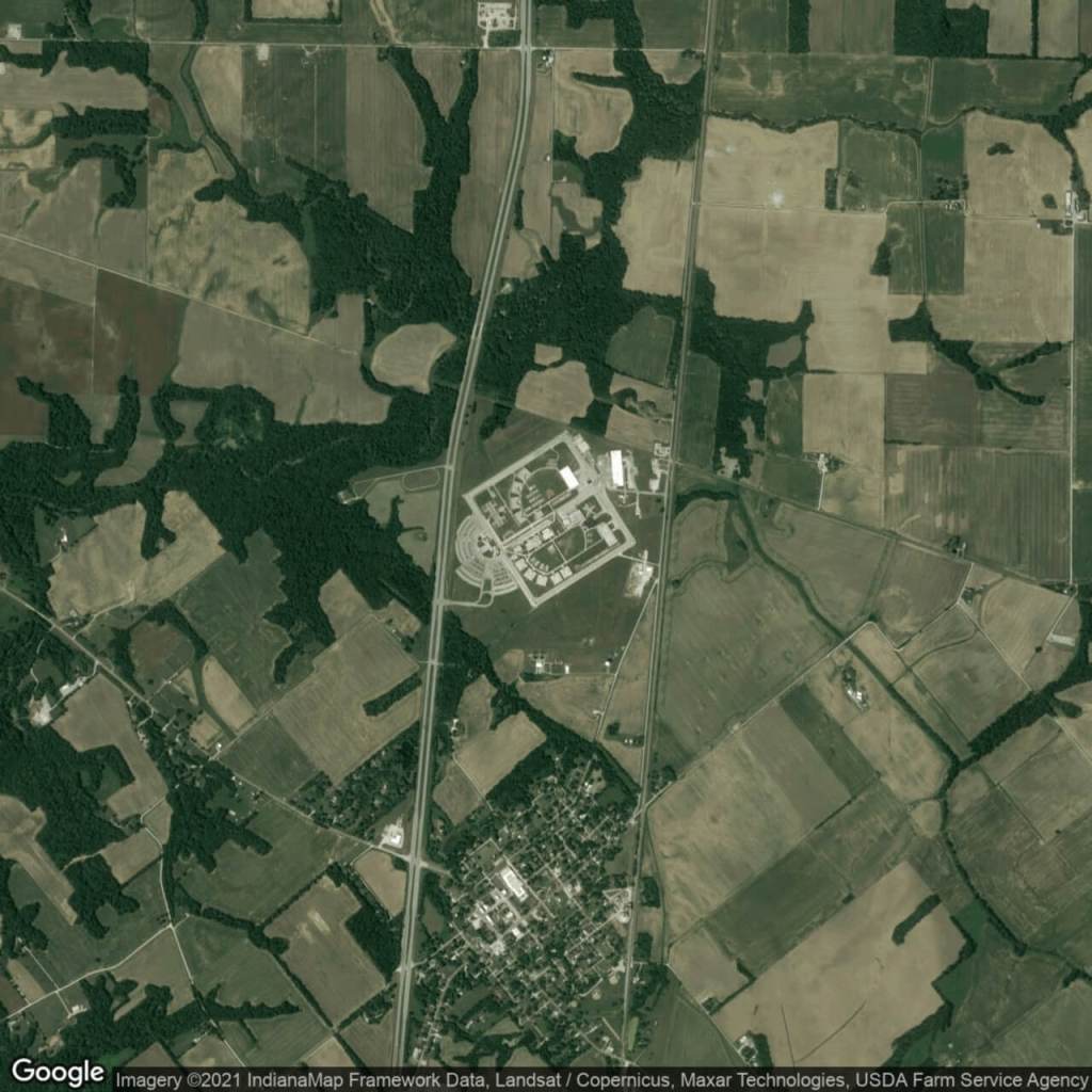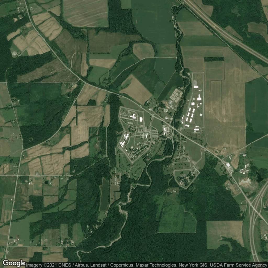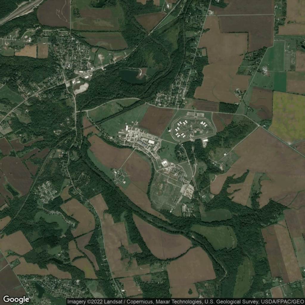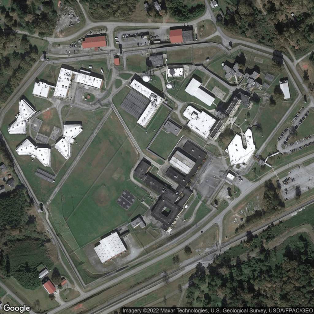 There are at least 662 prisons with prisoners who participate in some form of agriculture. This is sometimes visible from the air, revealing the carcerality of agricultural landscapes, while other times it is invisible, suggesting the carceral power to hide agricultural practices inside carceral architecture. While one could focus strictly on prisons, this would be to ignore the permeability of carceral space and the relationship of prisons to the broader social and ecological communities within which they reside. There are two images for each prison. The first is zoomed out to visually let the eyes stretch beyond prison walls, while the second is zoomed in to focus the viewer on the bricolage of agriculture and prison architecture.