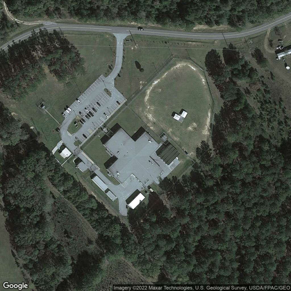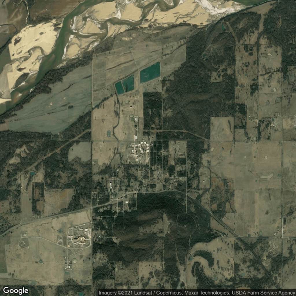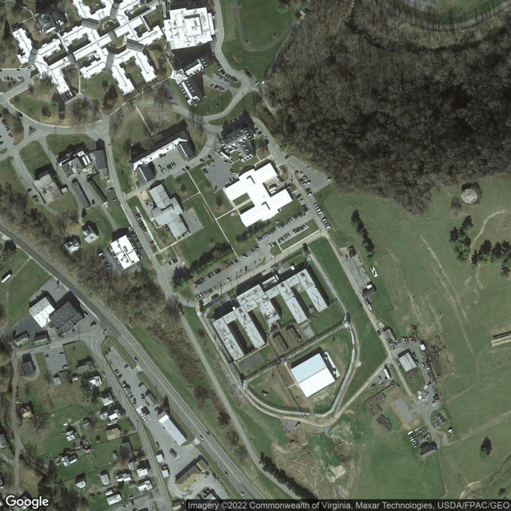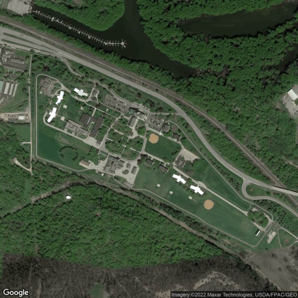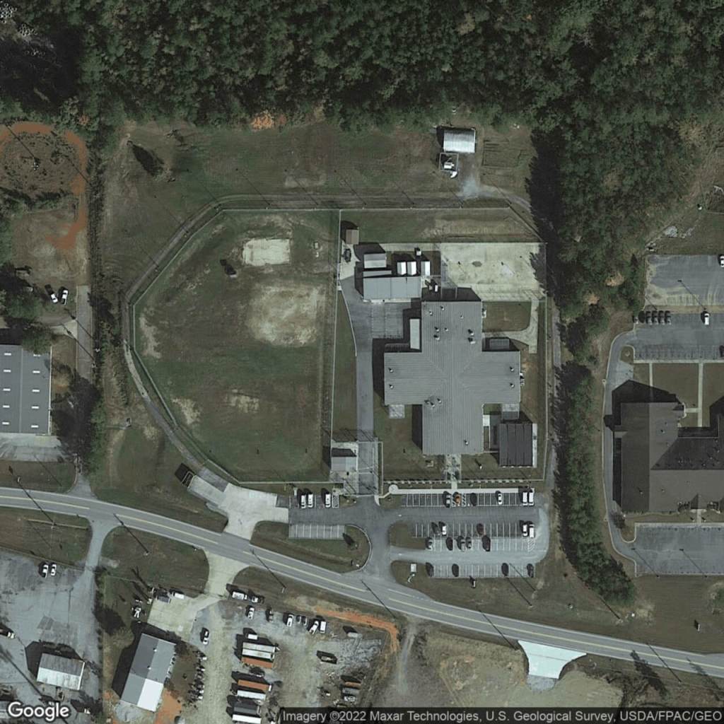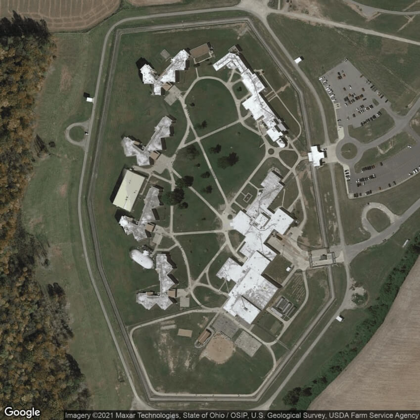 There are at least 662 prisons with prisoners who participate in some form of agriculture. This is sometimes visible from the air, revealing the carcerality of agricultural landscapes, while other times it is invisible, suggesting the carceral power to hide agricultural practices inside carceral architecture. While one could focus strictly on prisons, this would be to ignore the permeability of carceral space and the relationship of prisons to the broader social and ecological communities within which they reside. There are two images for each prison. The first is zoomed out to visually let the eyes stretch beyond prison walls, while the second is zoomed in to focus the viewer on the bricolage of agriculture and prison architecture.