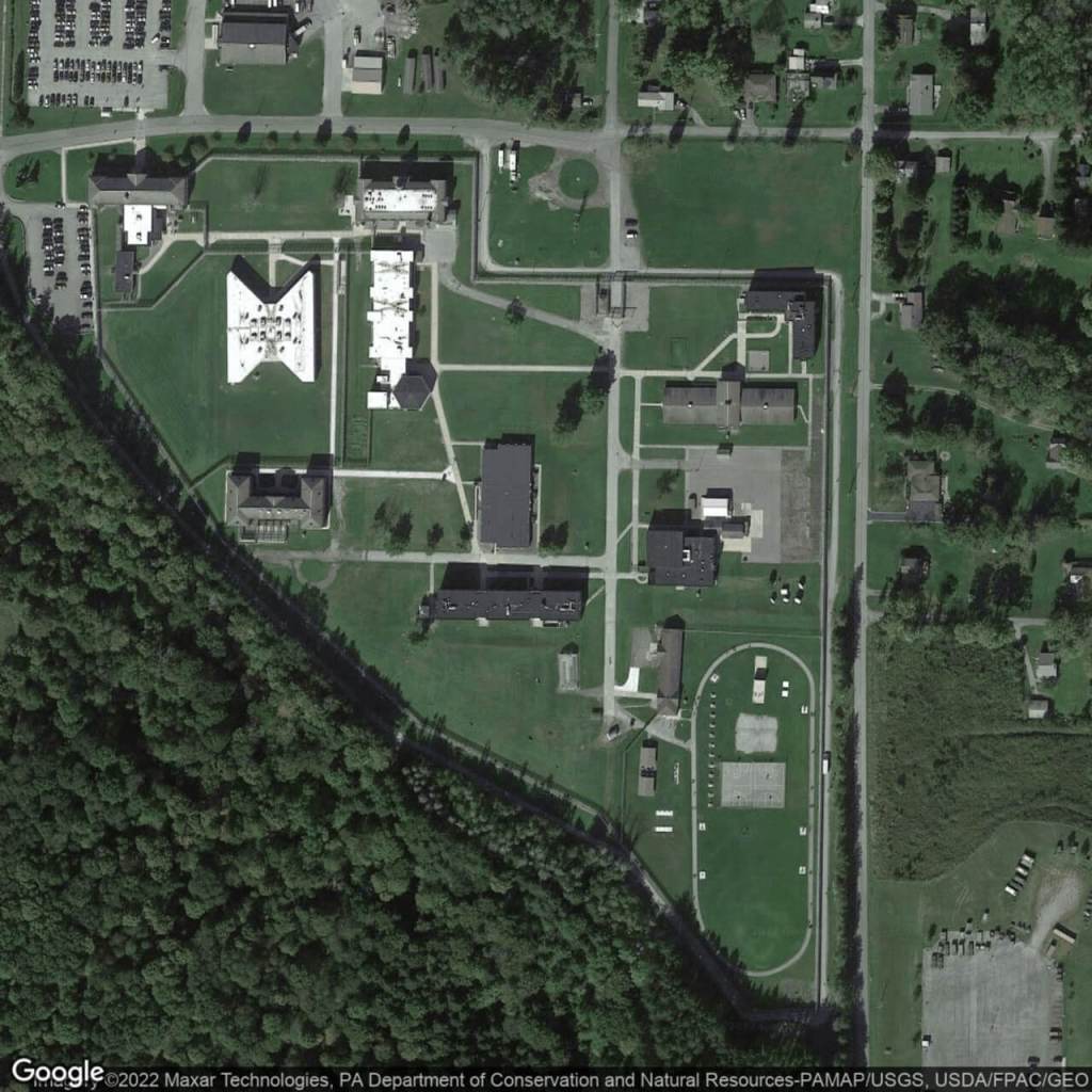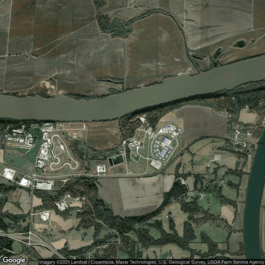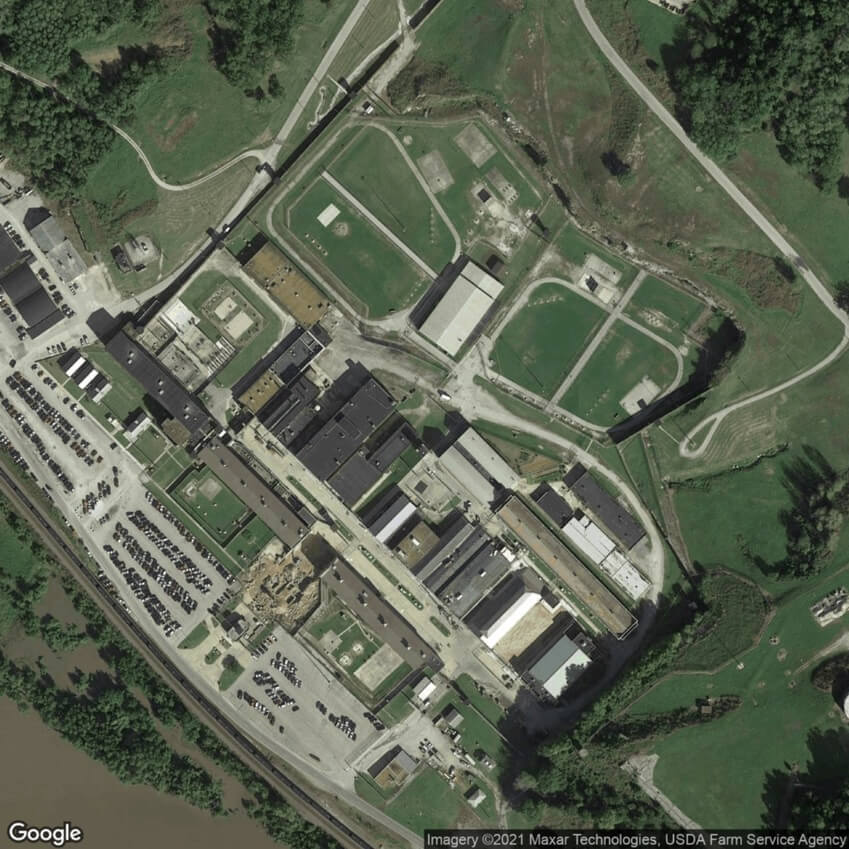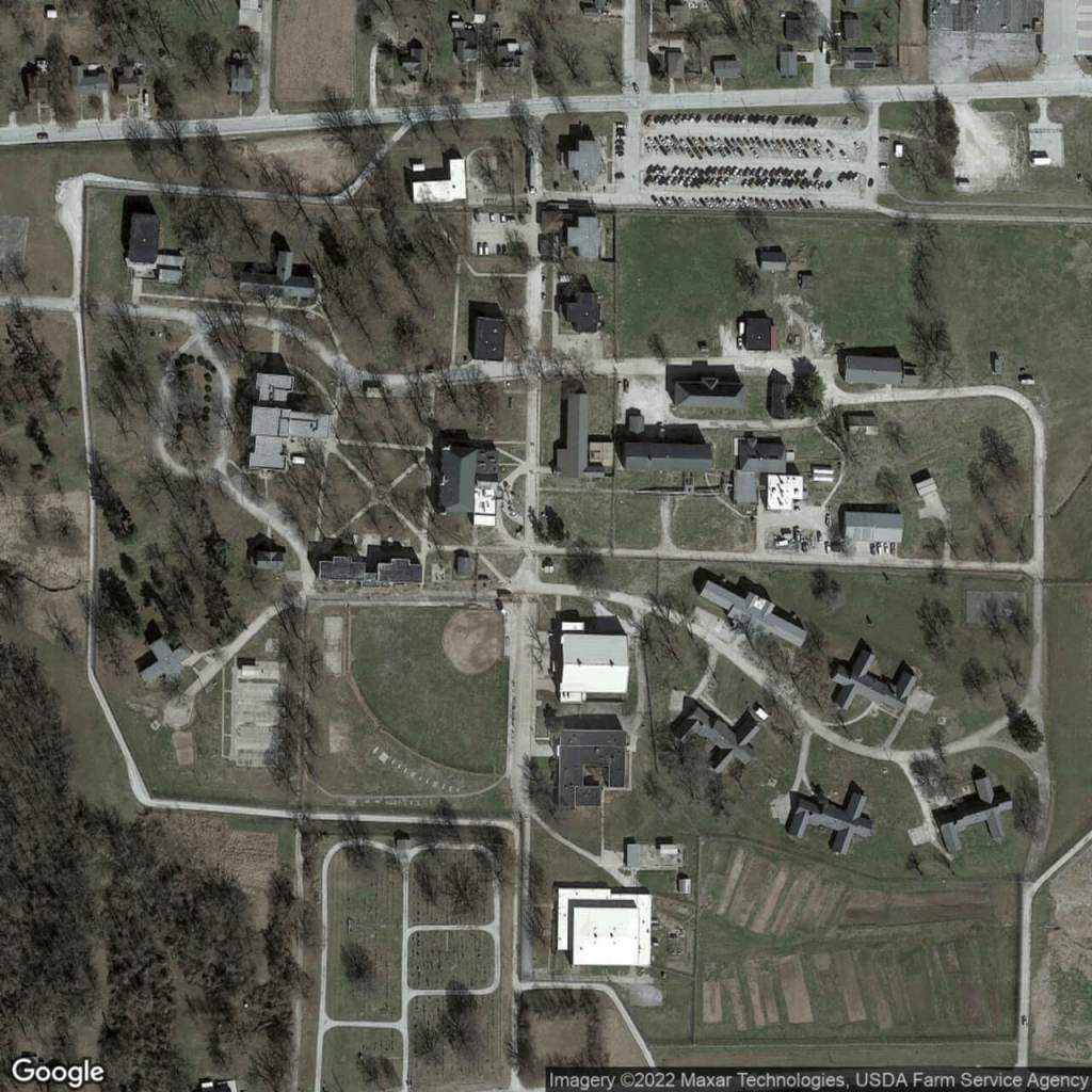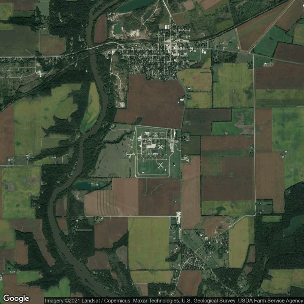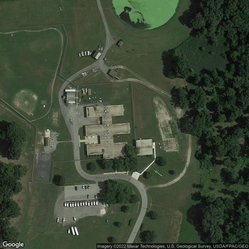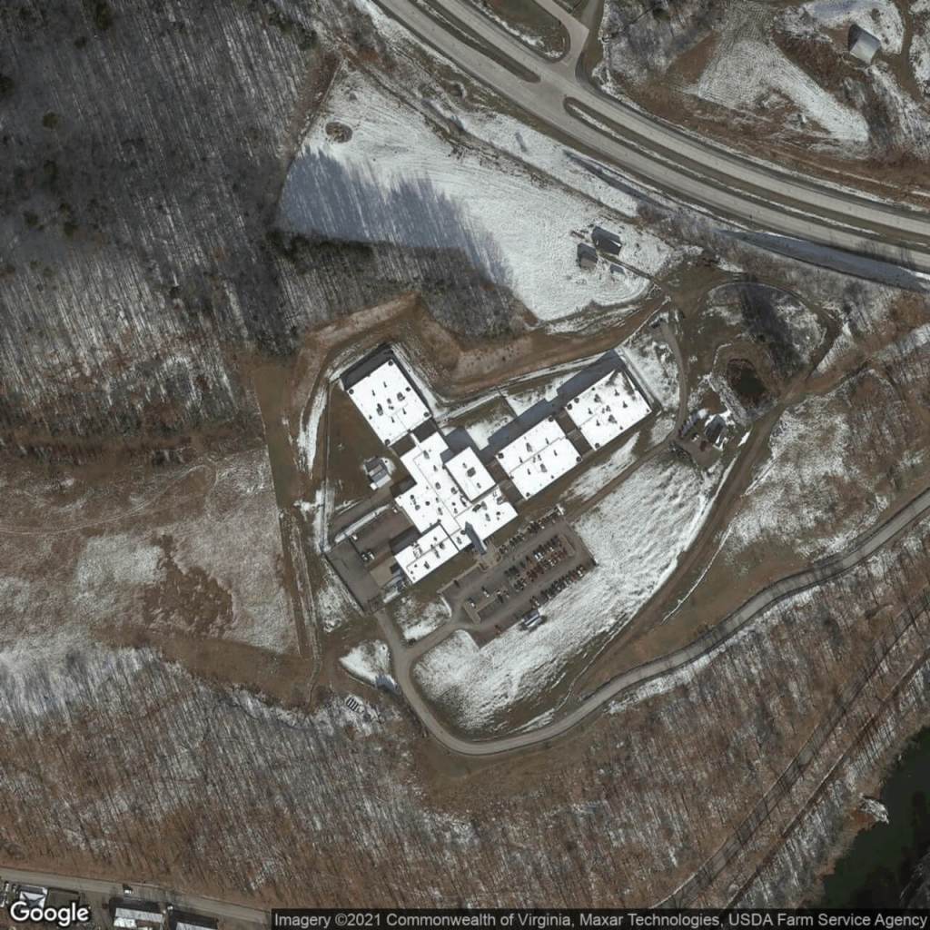 There are at least 662 prisons with prisoners who participate in some form of agriculture. This is sometimes visible from the air, revealing the carcerality of agricultural landscapes, while other times it is invisible, suggesting the carceral power to hide agricultural practices inside carceral architecture. While one could focus strictly on prisons, this would be to ignore the permeability of carceral space and the relationship of prisons to the broader social and ecological communities within which they reside. There are two images for each prison. The first is zoomed out to visually let the eyes stretch beyond prison walls, while the second is zoomed in to focus the viewer on the bricolage of agriculture and prison architecture.