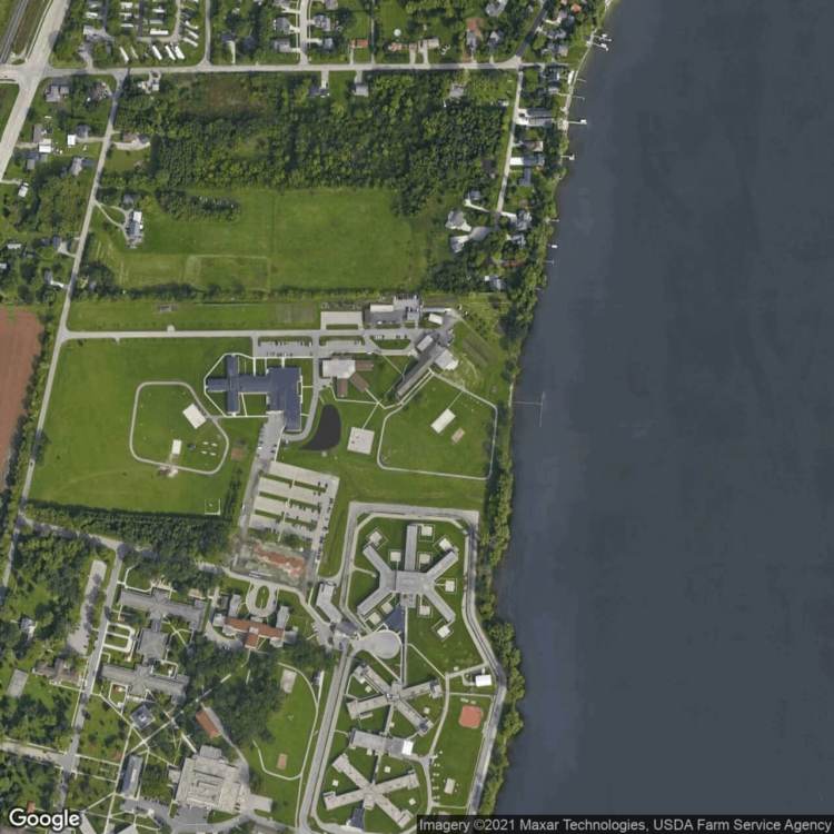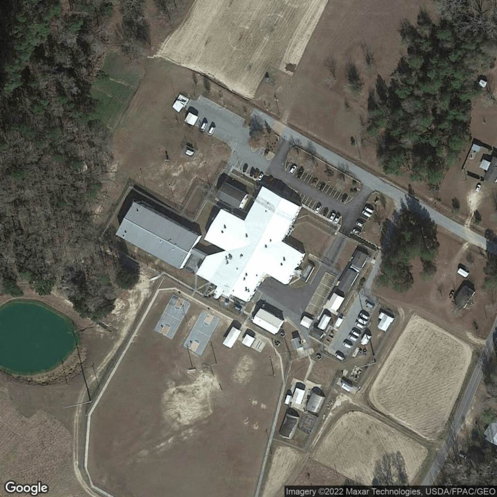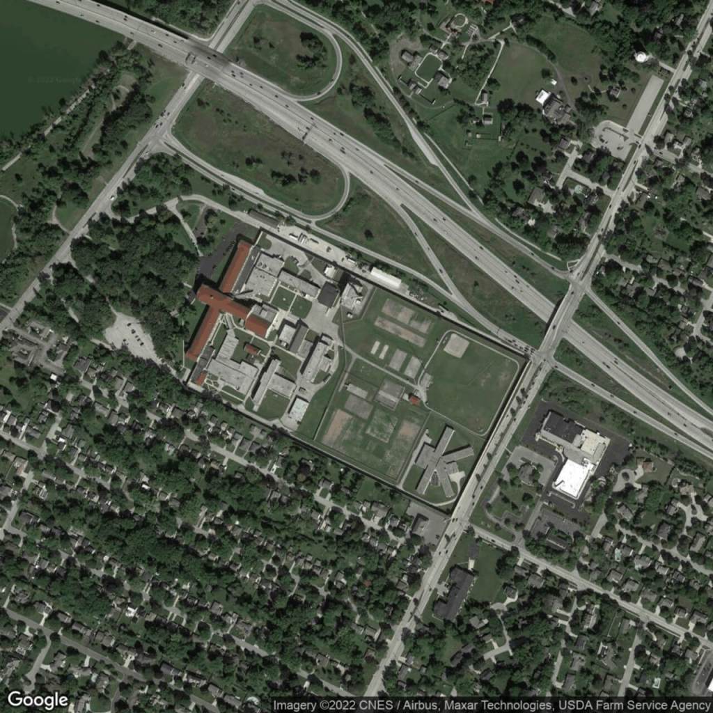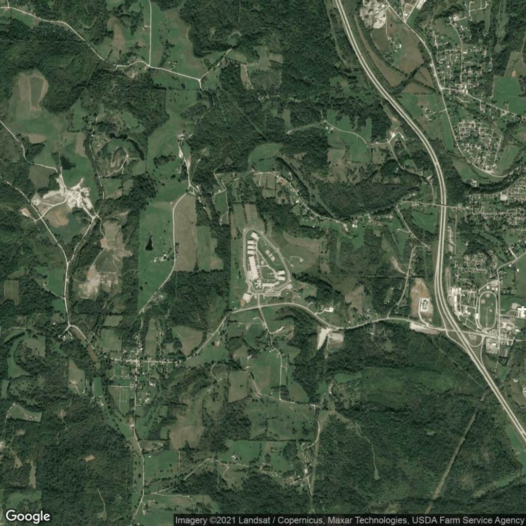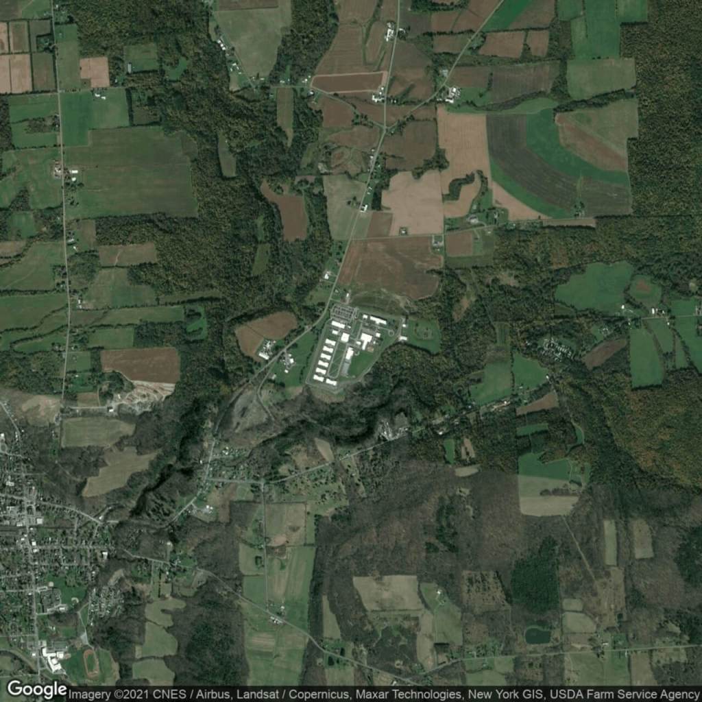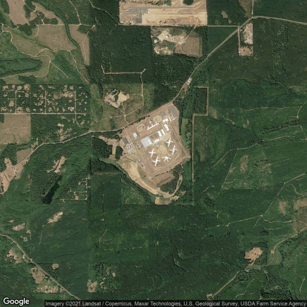 There are at least 662 prisons with prisoners who participate in some form of agriculture. This is sometimes visible from the air, revealing the carcerality of agricultural landscapes, while other times it is invisible, suggesting the carceral power to hide agricultural practices inside carceral architecture. While one could focus strictly on prisons, this would be to ignore the permeability of carceral space and the relationship of prisons to the broader social and ecological communities within which they reside. There are two images for each prison. The first is zoomed out to visually let the eyes stretch beyond prison walls, while the second is zoomed in to focus the viewer on the bricolage of agriculture and prison architecture.