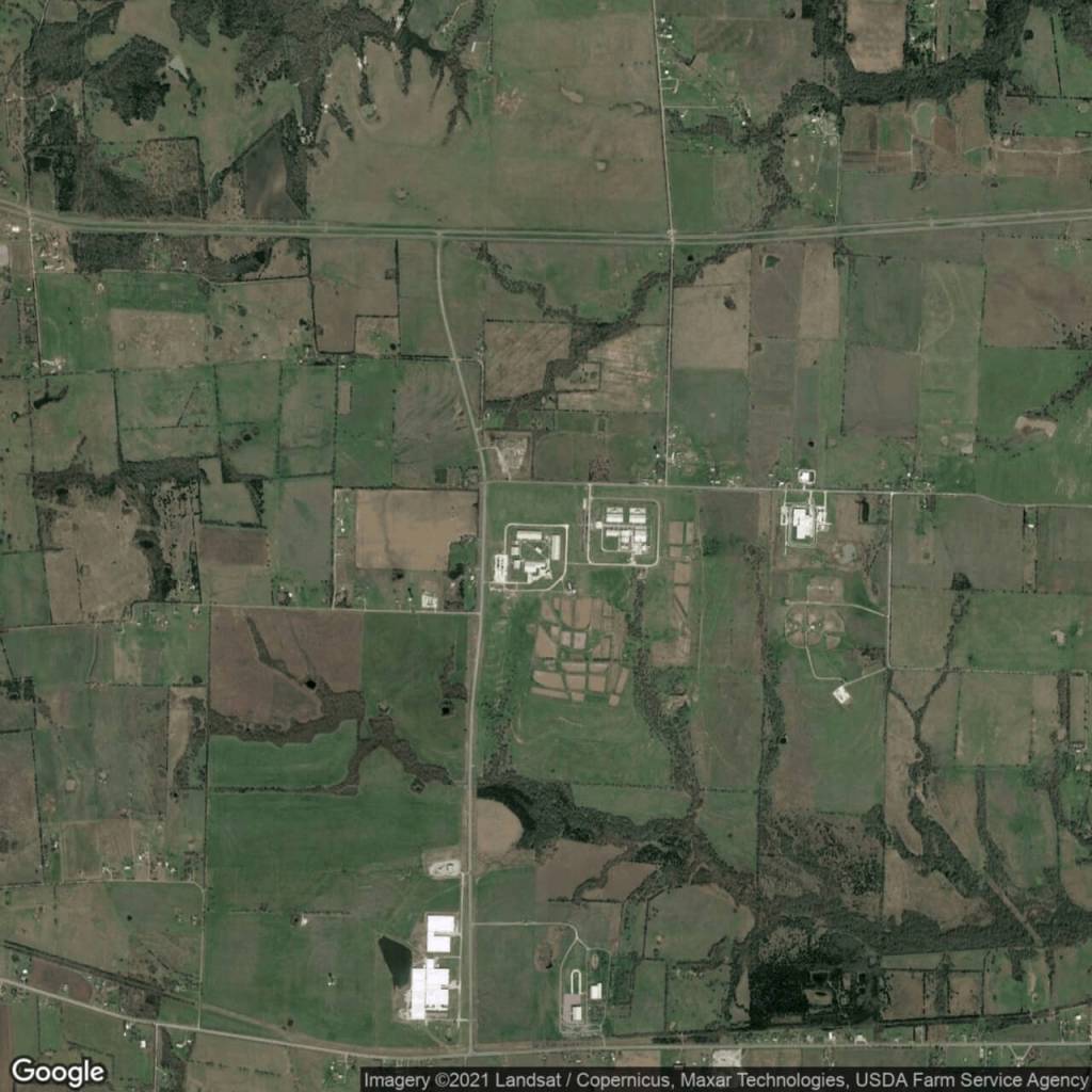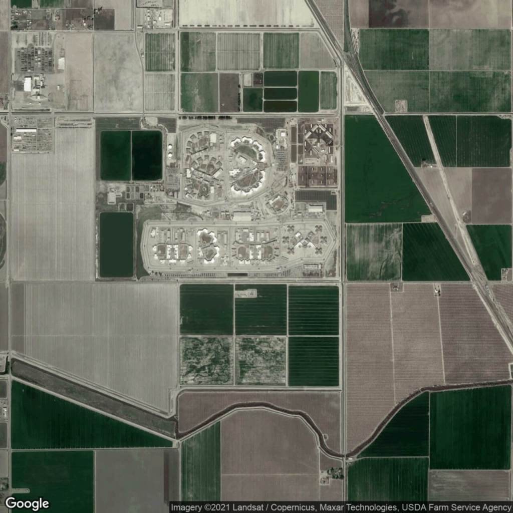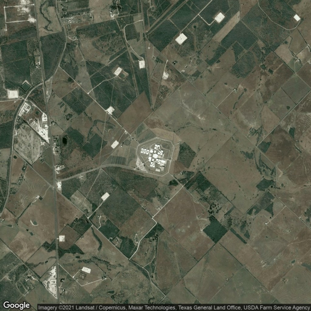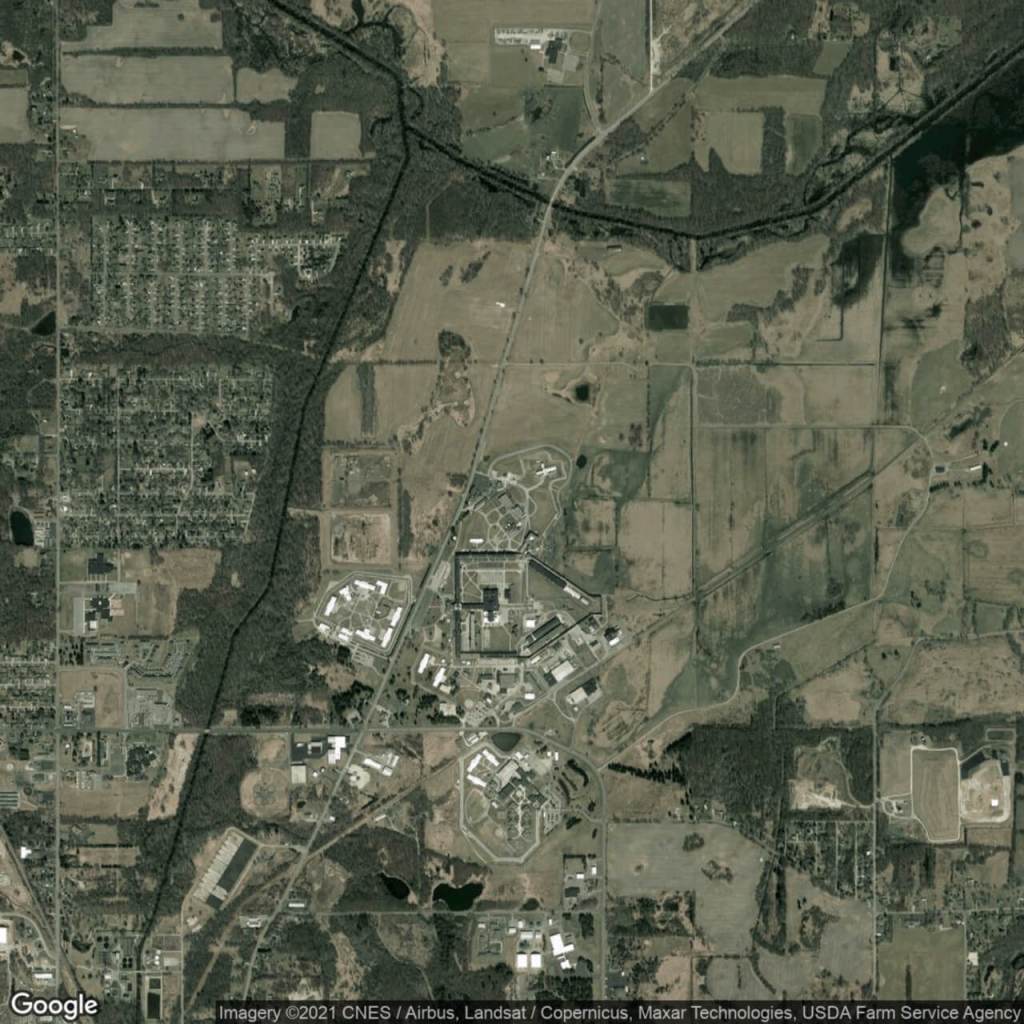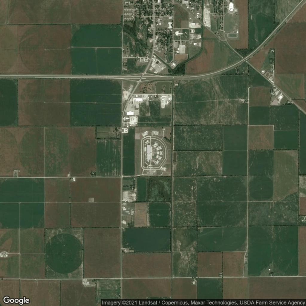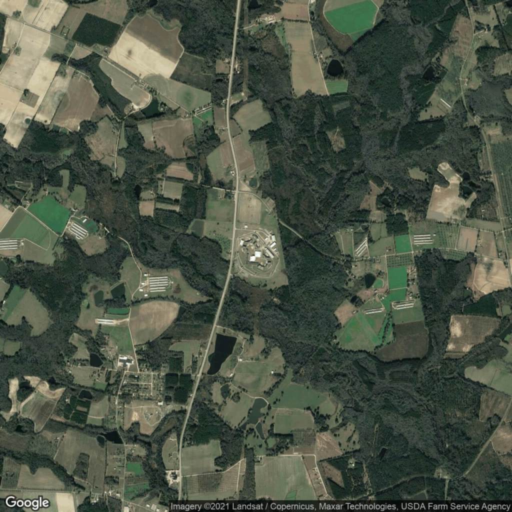 This series of satellite images takes its inspiration from the Prison Map project by Josh Begley. It is similarly interested in showing how carceral forms of discipline are etched into the landscape. In the case of prison agriculture, there are not only an array of places, but also prison architectures and agricultural practices. And these carceral conditions are embedded in a set of social and environmental spaces. Like agriculture, prisons are commonly located in remote locales hidden from most of the public. Concealed in these landscapes and cages are stories of exploitation, discipline, and at times, hope and resistance. Bringing together this set of images highlights the difficulty of identifying and accounting for the social death of incarceration and the supposed freedom that lies right outside prison walls.