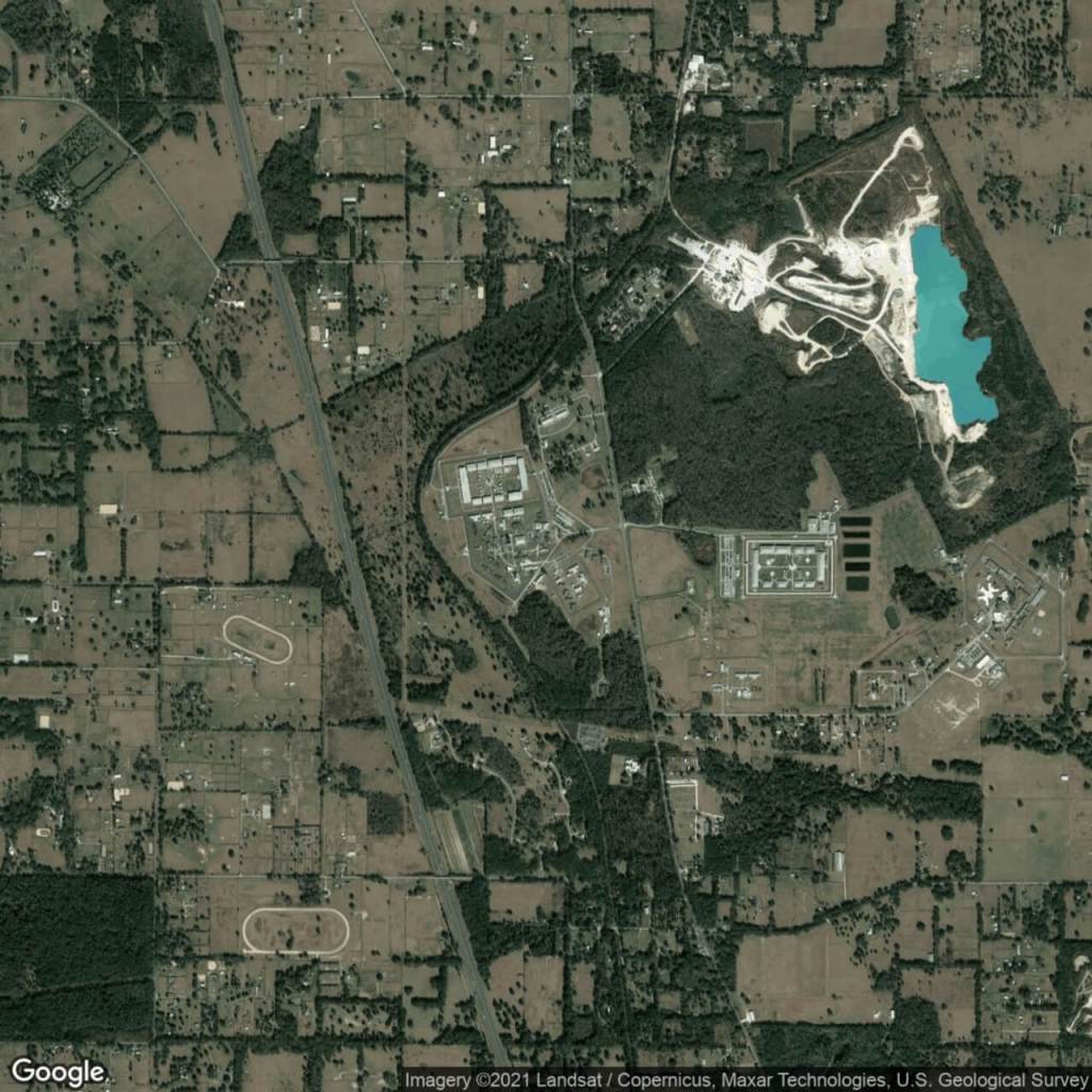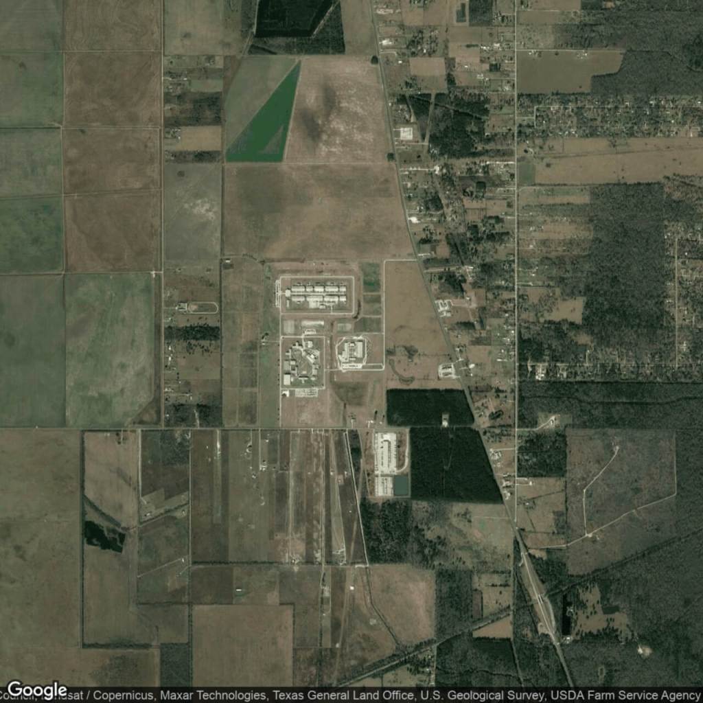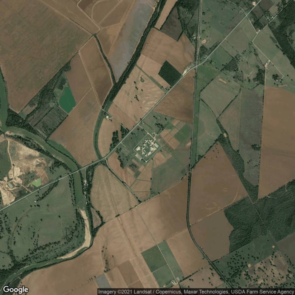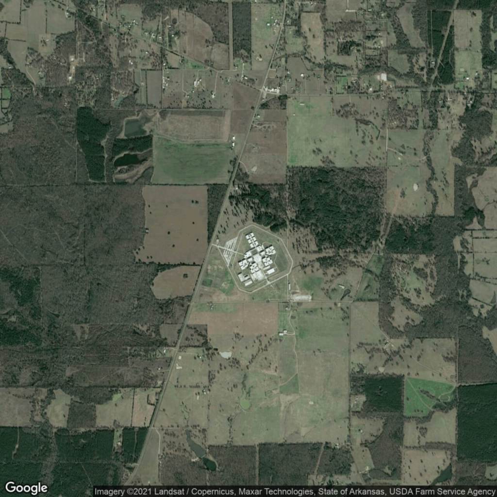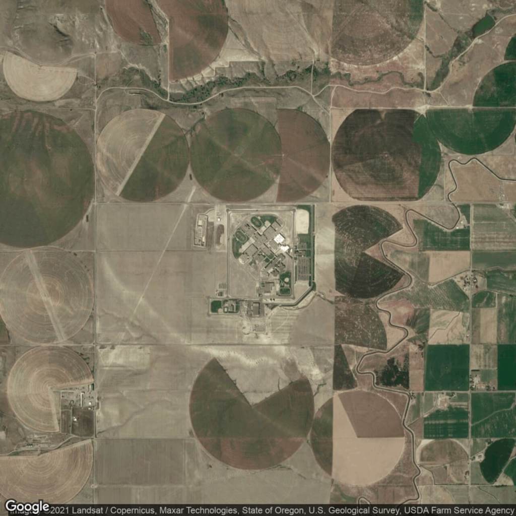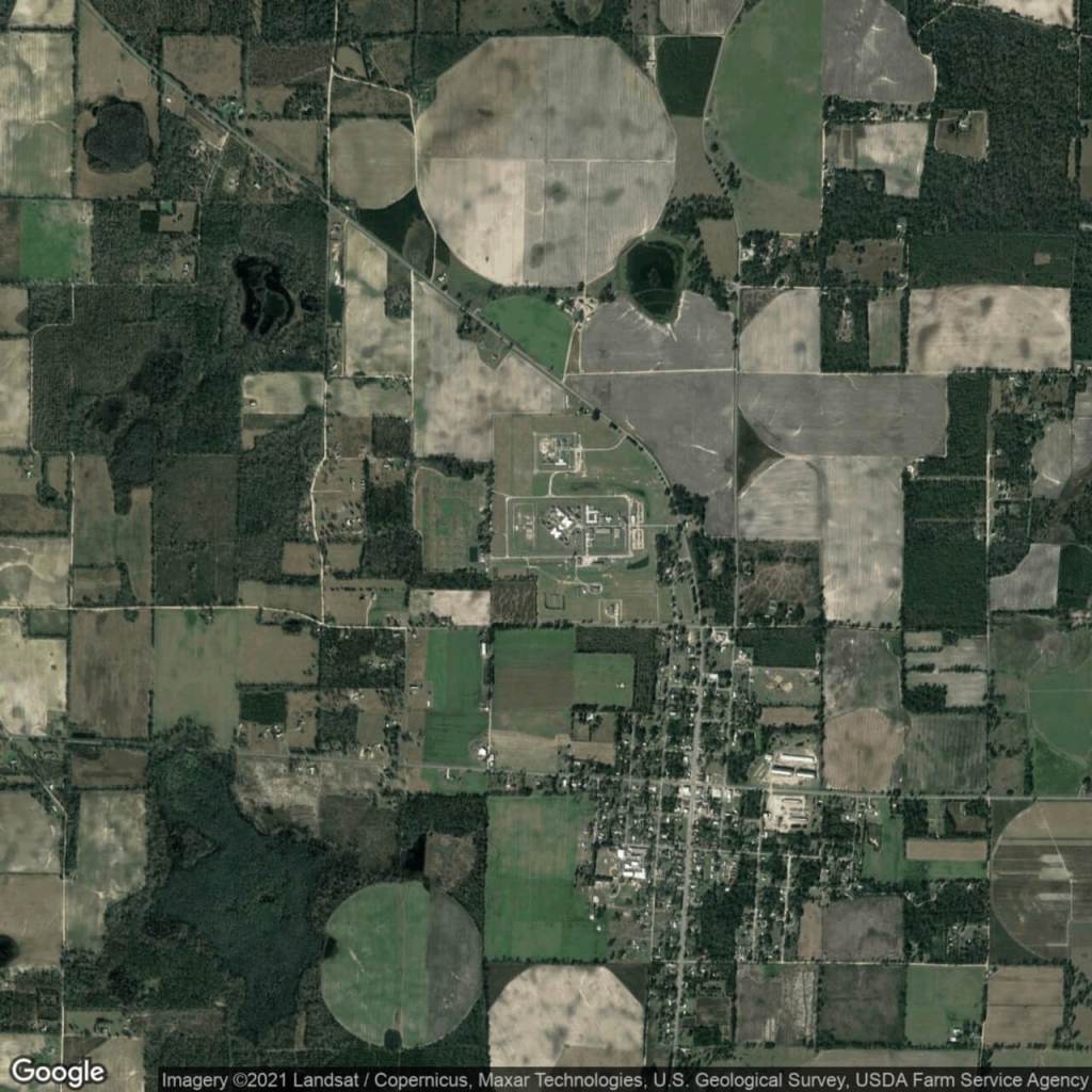 This series of satellite images takes its inspiration from the Prison Map project by Josh Begley. It is similarly interested in showing how carceral forms of discipline are etched into the landscape. In the case of prison agriculture, there are not only an array of places, but also prison architectures and agricultural practices. And these carceral conditions are embedded in a set of social and environmental spaces. Like agriculture, prisons are commonly located in remote locales hidden from most of the public. Concealed in these landscapes and cages are stories of exploitation, discipline, and at times, hope and resistance. Bringing together this set of images highlights the difficulty of identifying and accounting for the social death of incarceration and the supposed freedom that lies right outside prison walls.