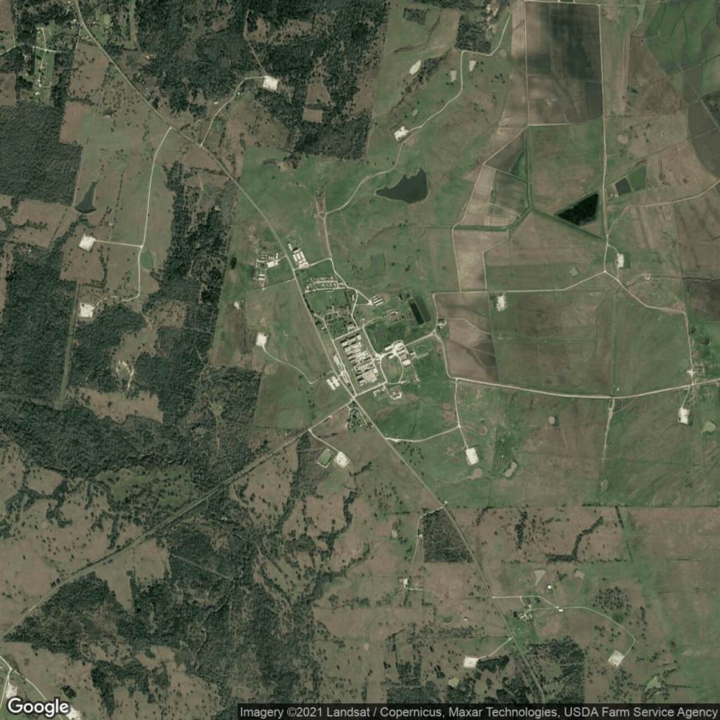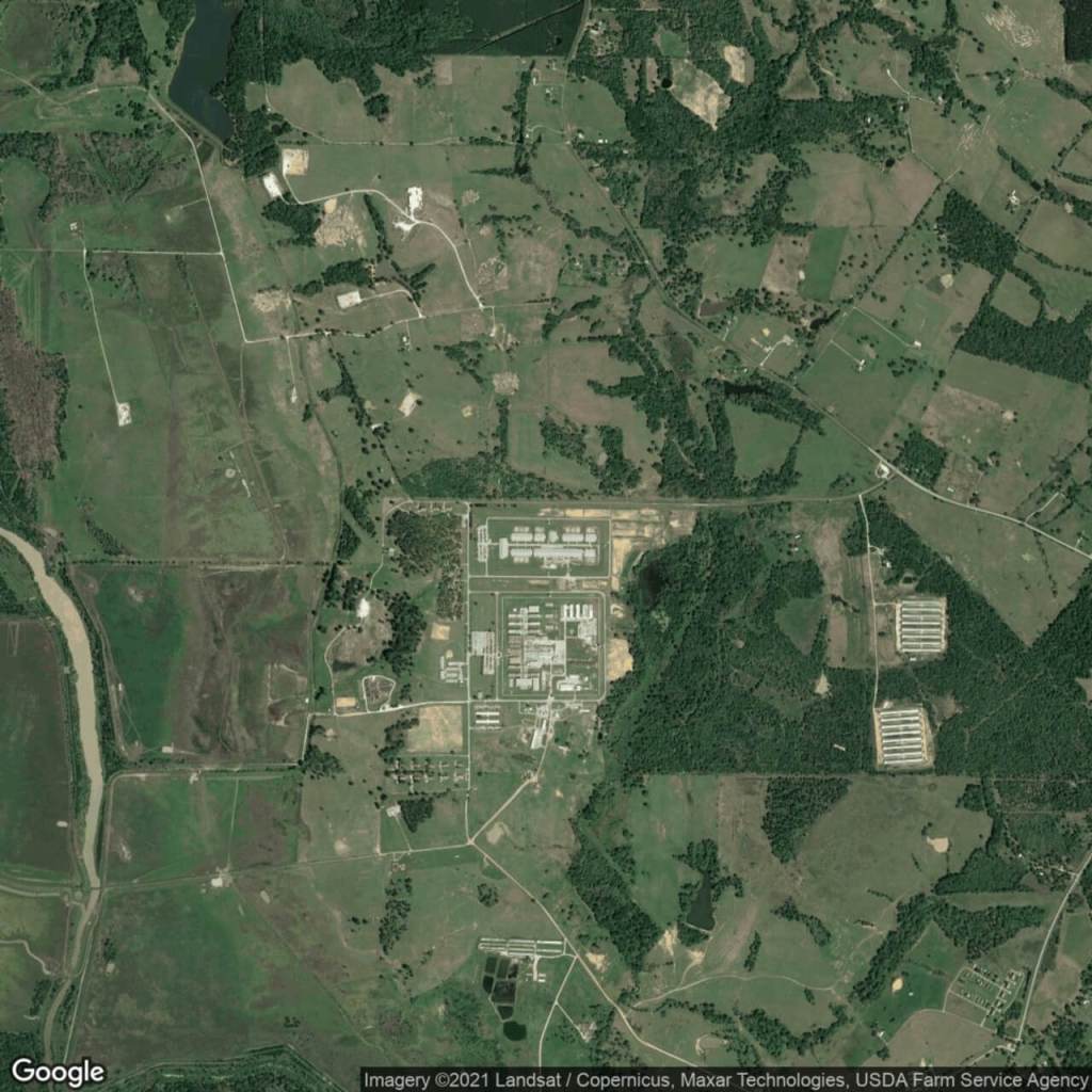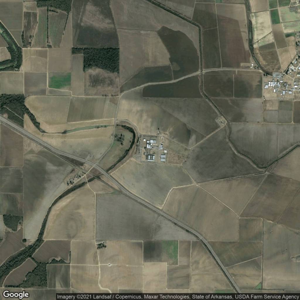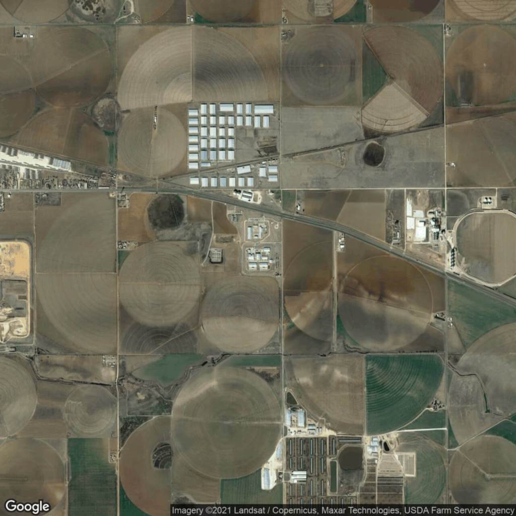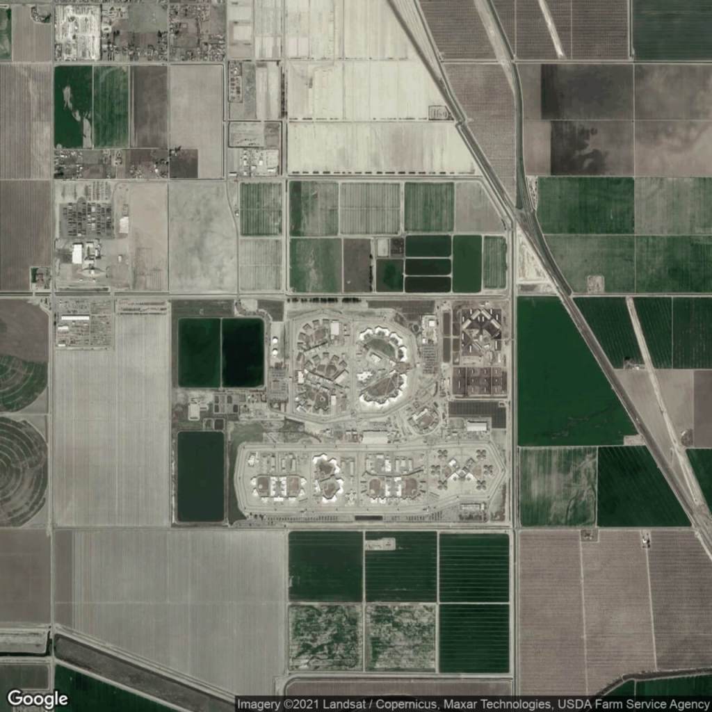 This series of satellite images takes its inspiration from the Prison Map project by Josh Begley. It is similarly interested in showing how carceral forms of discipline are etched into the landscape. In the case of prison agriculture, there are not only an array of places, but also prison architectures and agricultural practices. And these carceral conditions are embedded in a set of social and environmental spaces. Like agriculture, prisons are commonly located in remote locales hidden from most of the public. Concealed in these landscapes and cages are stories of exploitation, discipline, and at times, hope and resistance. Bringing together this set of images highlights the difficulty of identifying and accounting for the social death of incarceration and the supposed freedom that lies right outside prison walls.