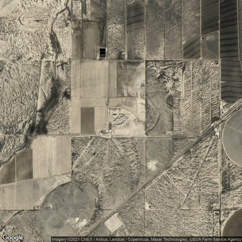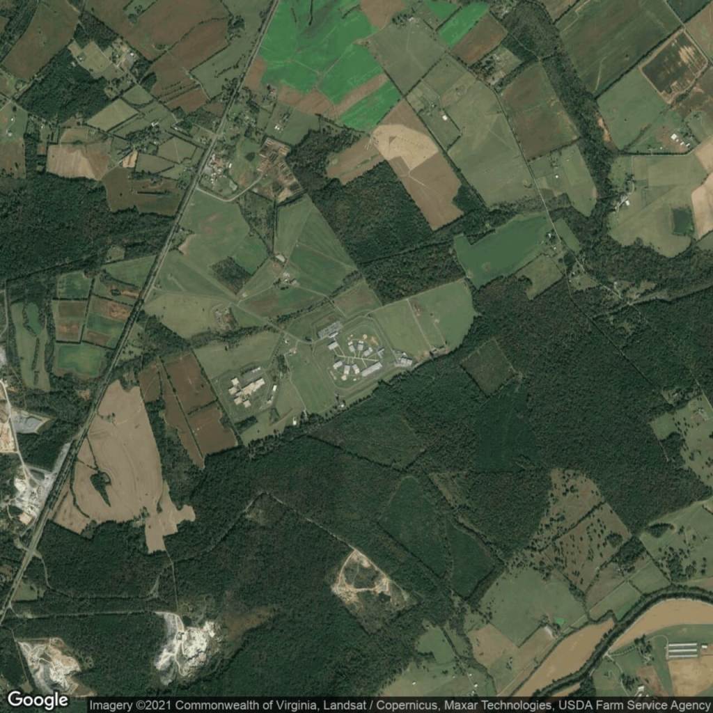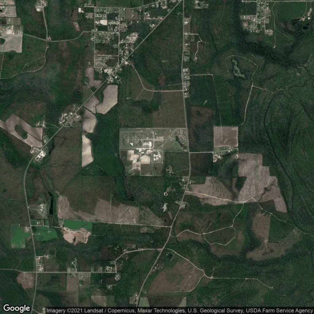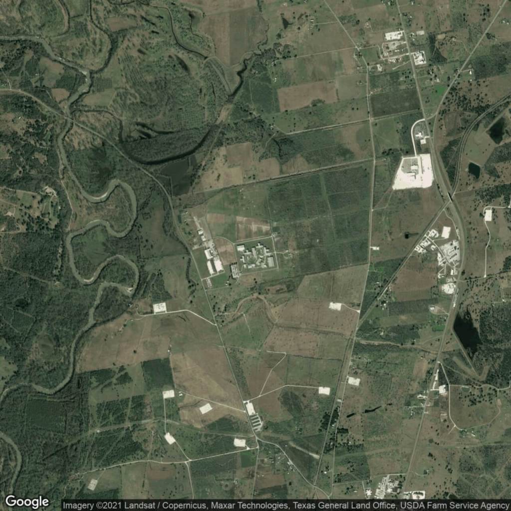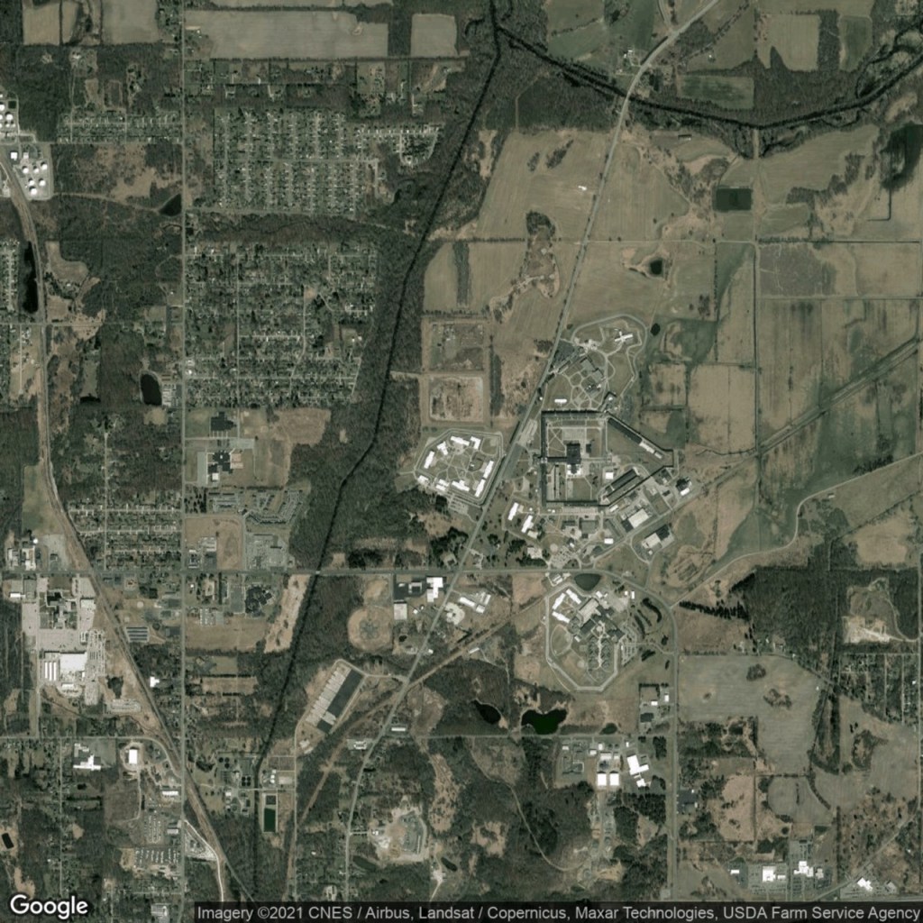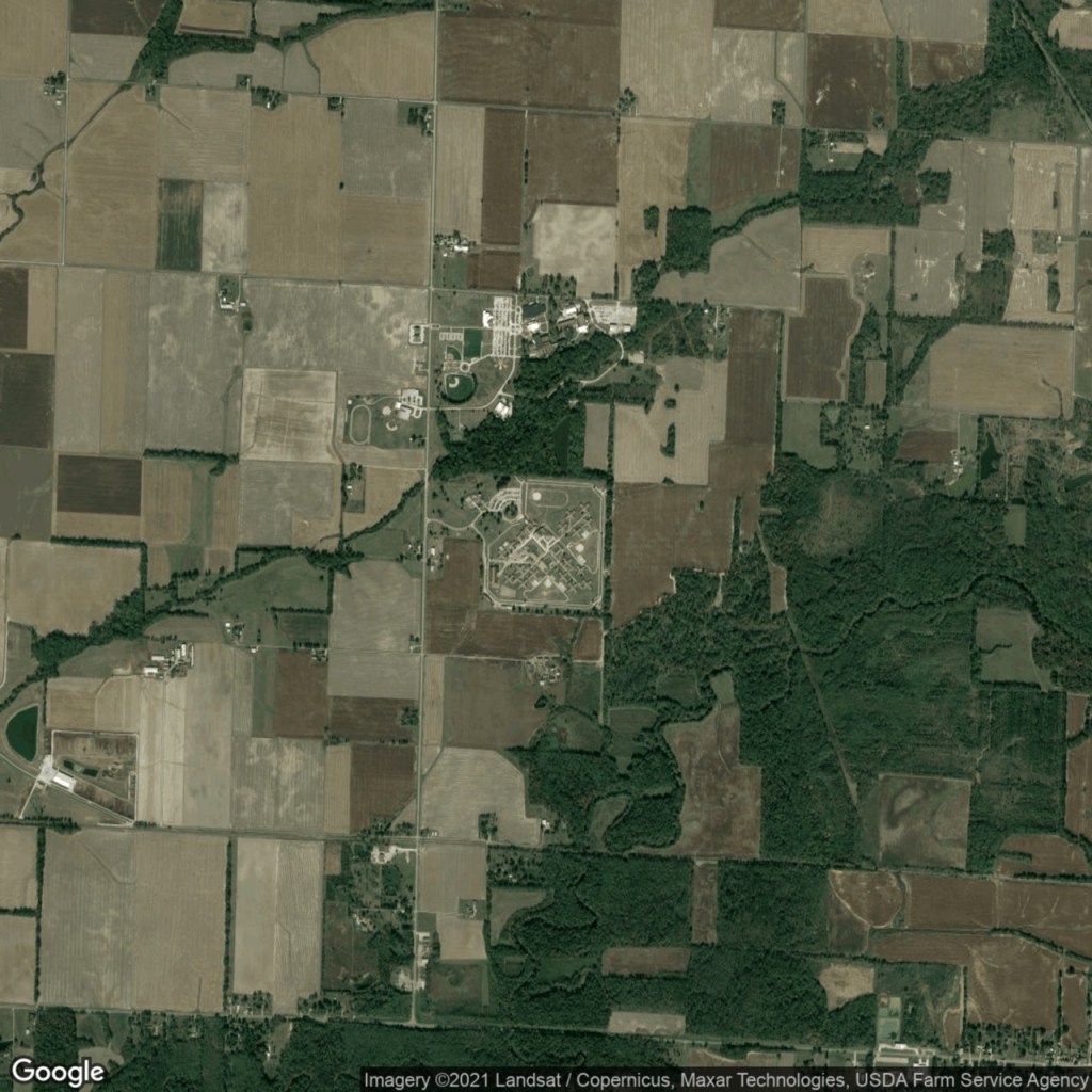 This series of satellite images takes its inspiration from the Prison Map project by Josh Begley. It is similarly interested in showing how carceral forms of discipline are etched into the landscape. In the case of prison agriculture, there are not only an array of places, but also prison architectures and agricultural practices. And these carceral conditions are embedded in a set of social and environmental spaces. Like agriculture, prisons are commonly located in remote locales hidden from most of the public. Concealed in these landscapes and cages are stories of exploitation, discipline, and at times, hope and resistance. Bringing together this set of images highlights the difficulty of identifying and accounting for the social death of incarceration and the supposed freedom that lies right outside prison walls.