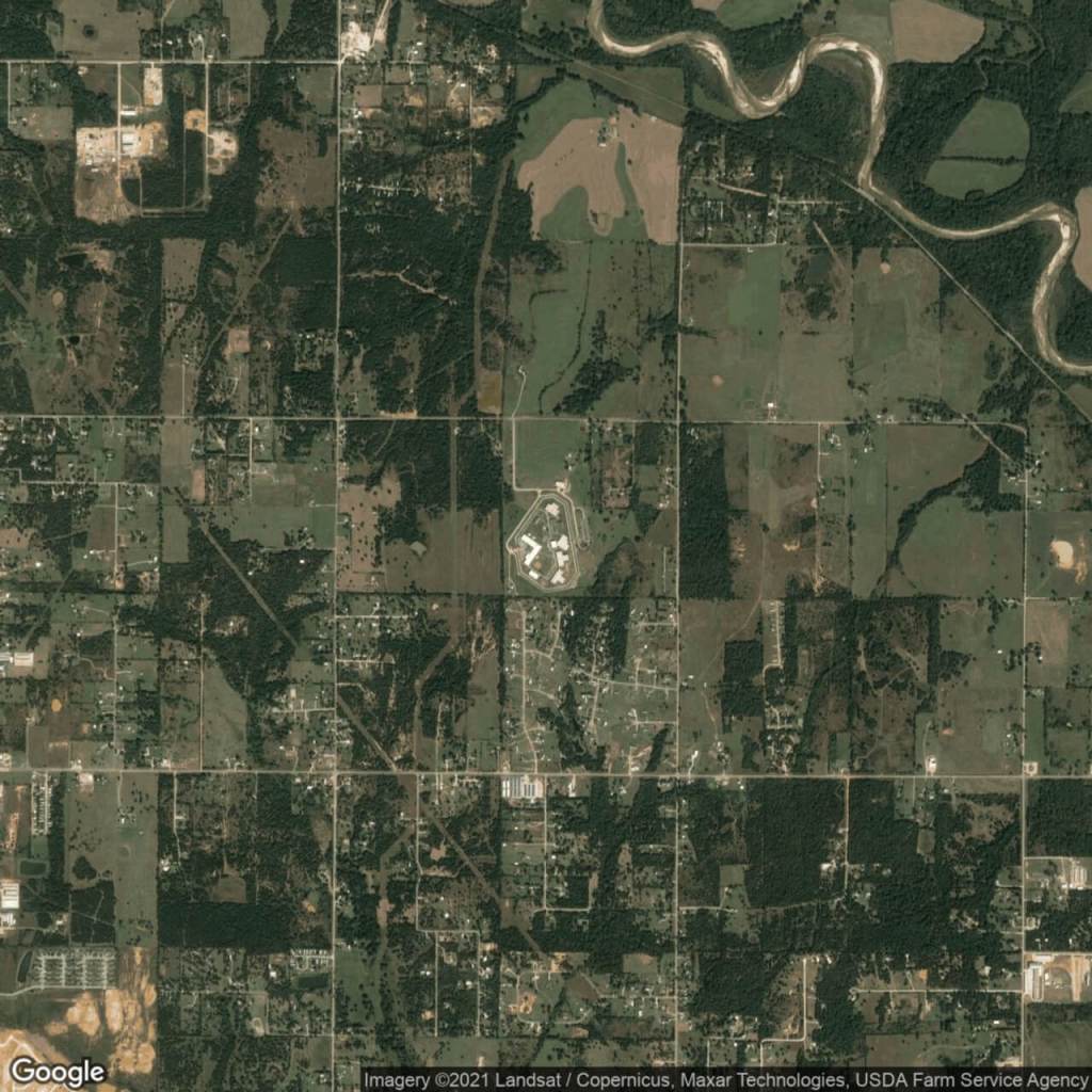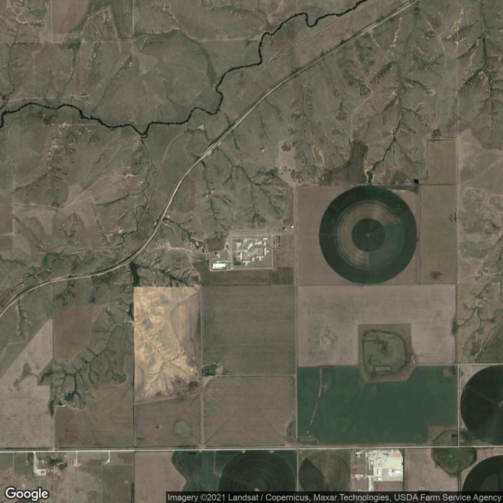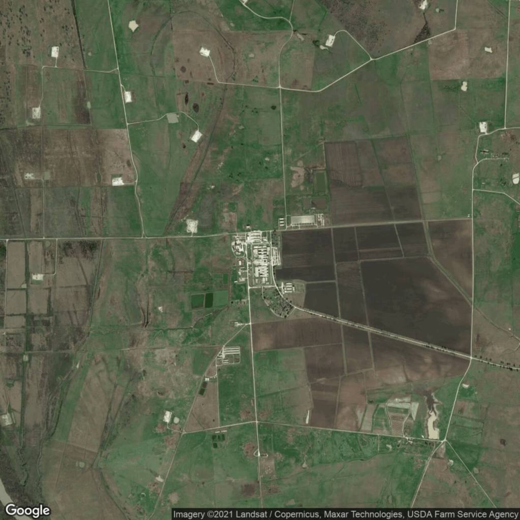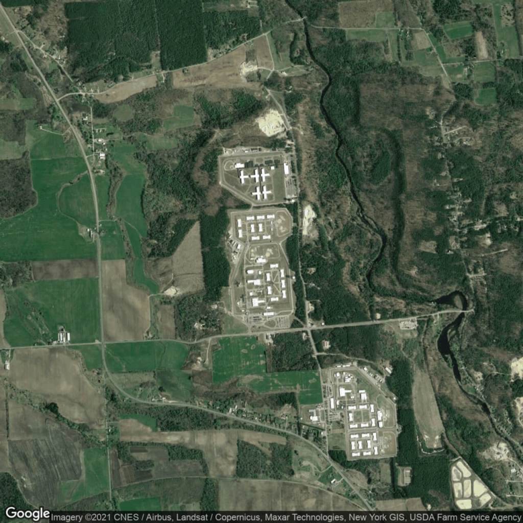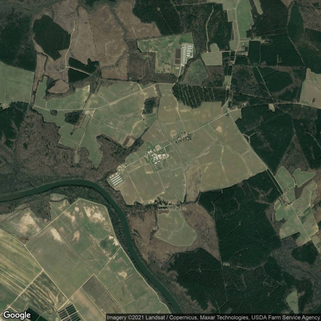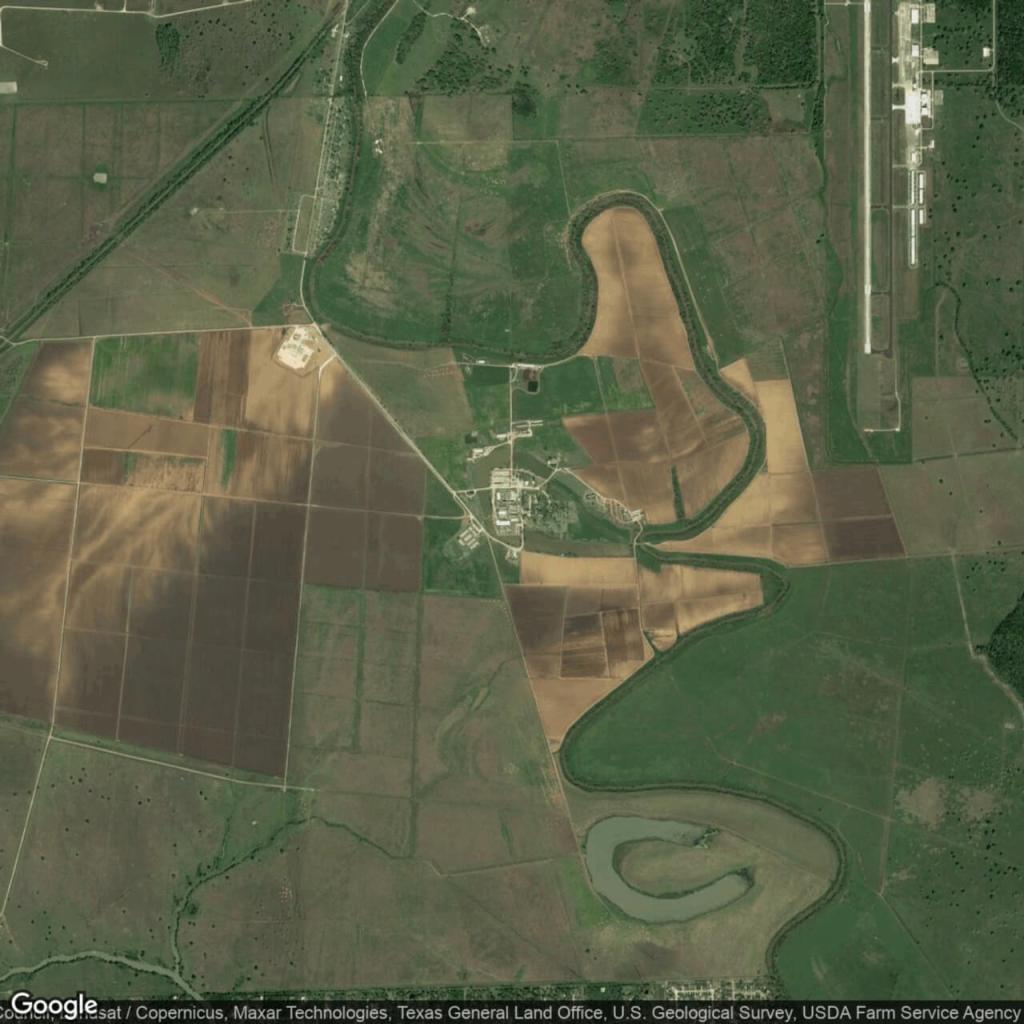 This series of satellite images takes its inspiration from the Prison Map project by Josh Begley. It is similarly interested in showing how carceral forms of discipline are etched into the landscape. In the case of prison agriculture, there are not only an array of places, but also prison architectures and agricultural practices. And these carceral conditions are embedded in a set of social and environmental spaces. Like agriculture, prisons are commonly located in remote locales hidden from most of the public. Concealed in these landscapes and cages are stories of exploitation, discipline, and at times, hope and resistance. Bringing together this set of images highlights the difficulty of identifying and accounting for the social death of incarceration and the supposed freedom that lies right outside prison walls.