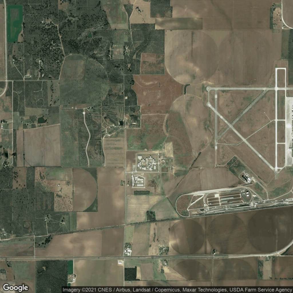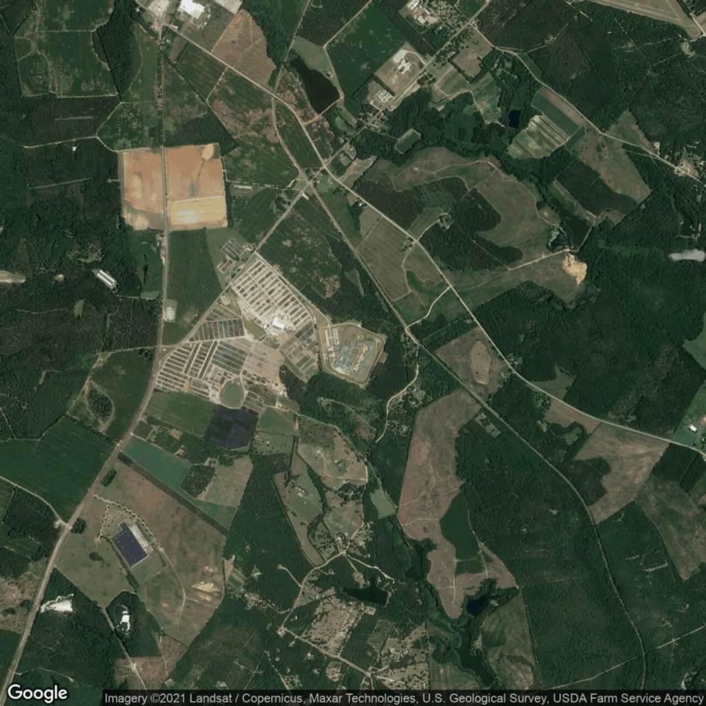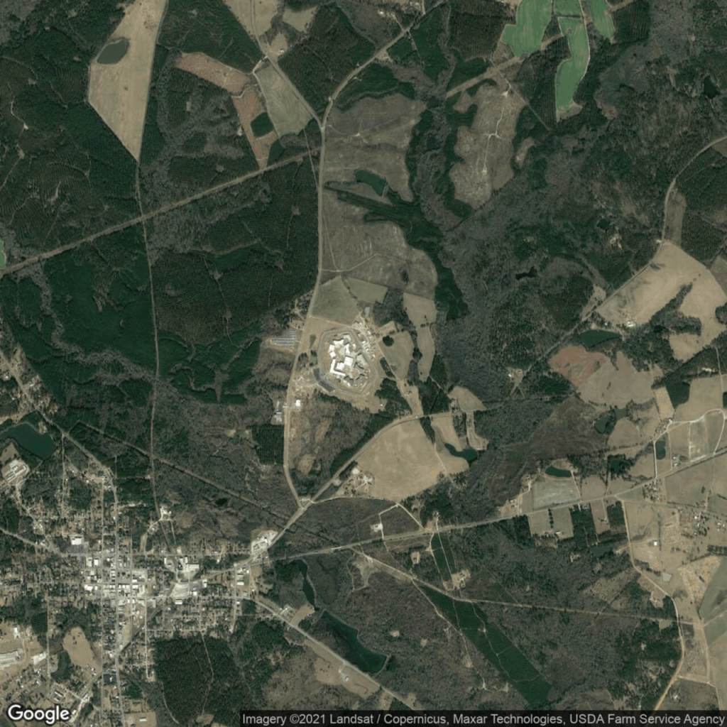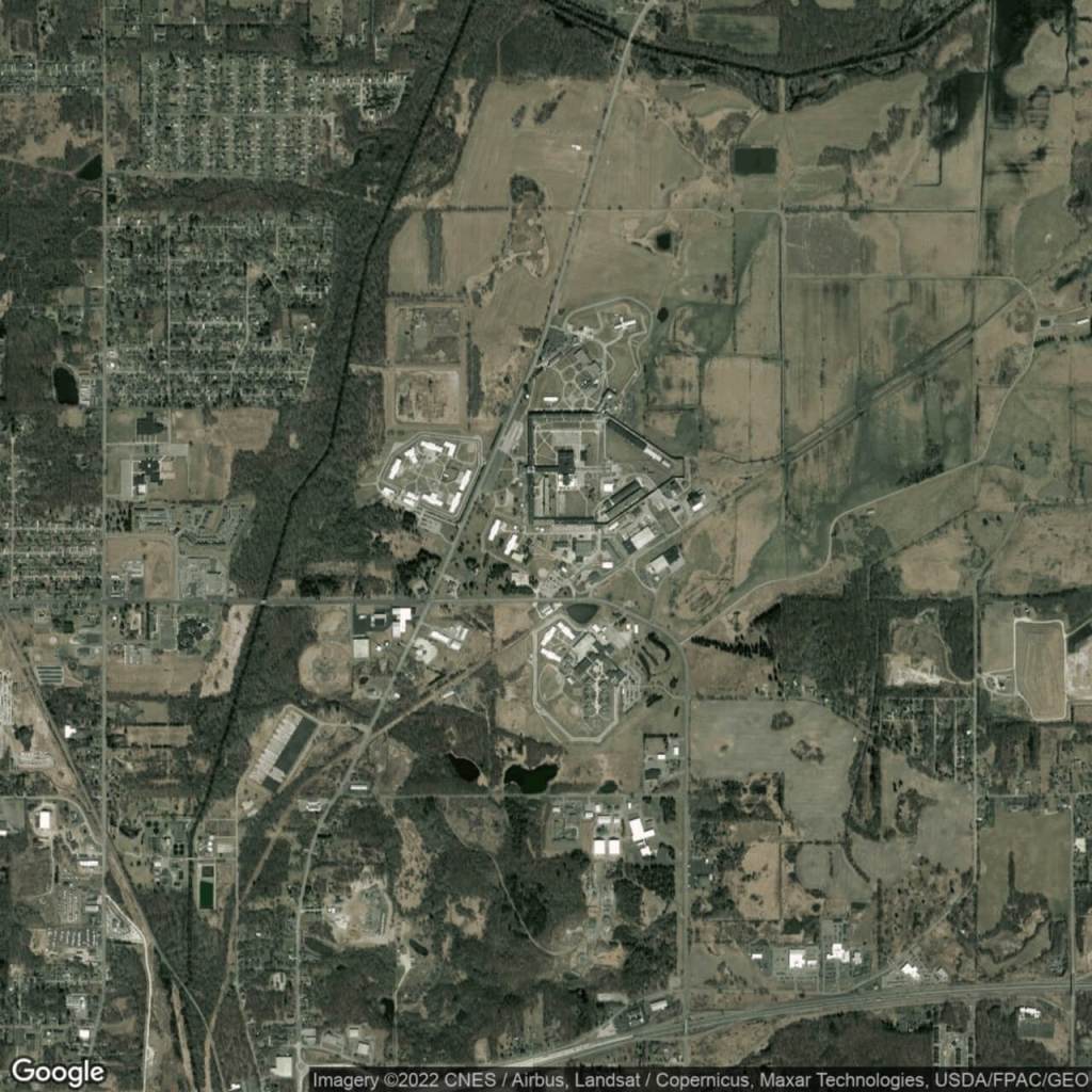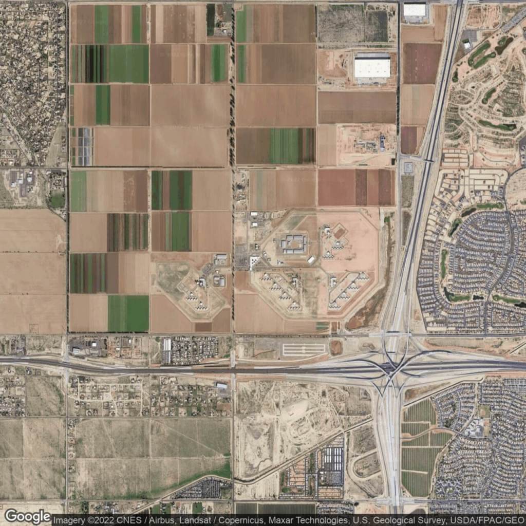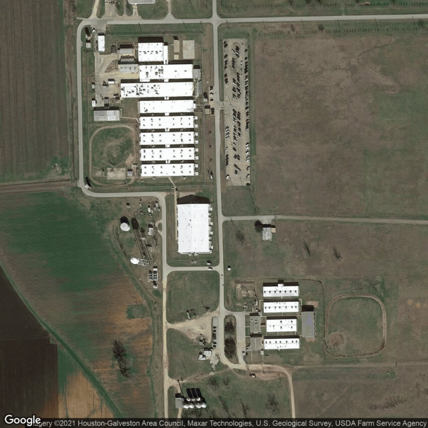 This series of satellite images takes its inspiration from the Prison Map project by Josh Begley. It is similarly interested in showing how carceral forms of discipline are etched into the landscape. In the case of prison agriculture, there are not only an array of places, but also prison architectures and agricultural practices. And these carceral conditions are embedded in a set of social and environmental spaces. Like agriculture, prisons are commonly located in remote locales hidden from most of the public. Concealed in these landscapes and cages are stories of exploitation, discipline, and at times, hope and resistance. Bringing together this set of images highlights the difficulty of identifying and accounting for the social death of incarceration and the supposed freedom that lies right outside prison walls.