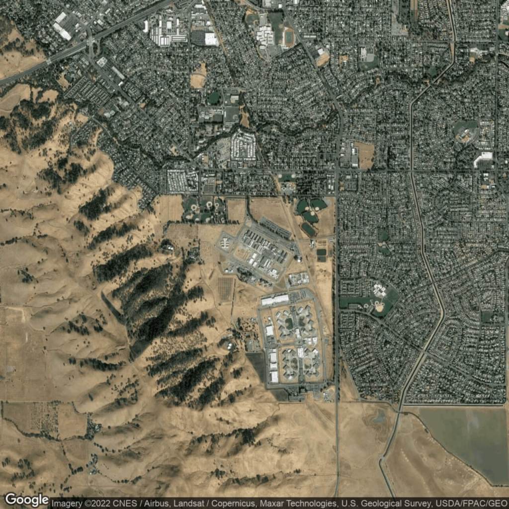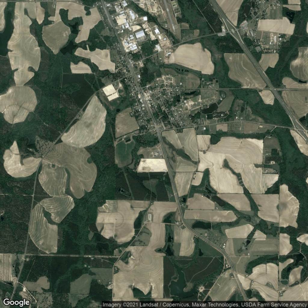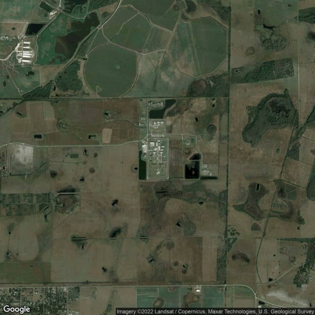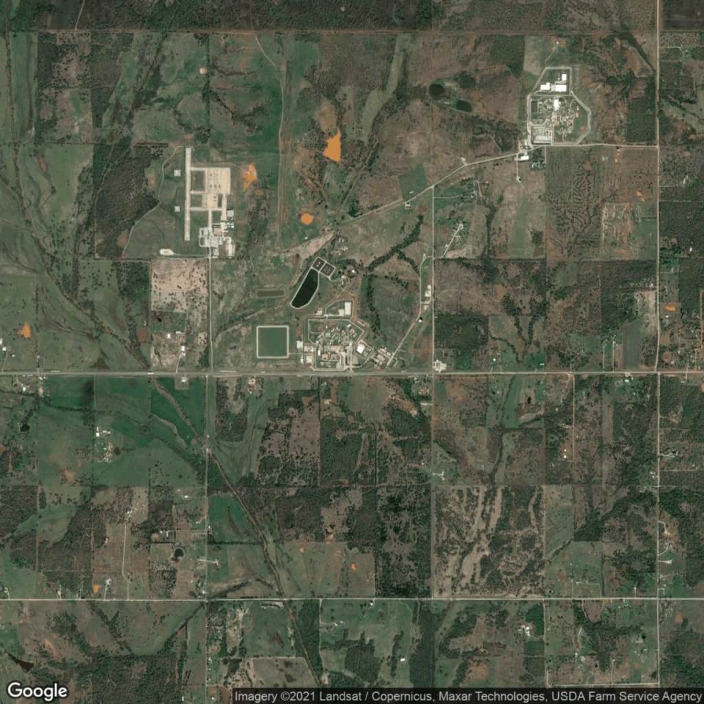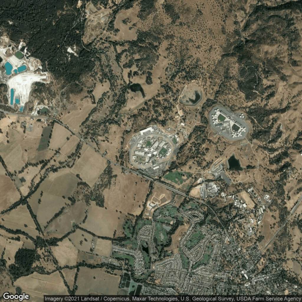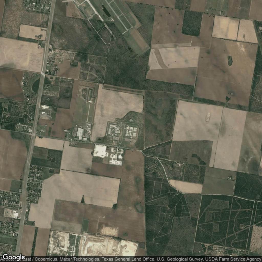 This series of satellite images takes its inspiration from the Prison Map project by Josh Begley. It is similarly interested in showing how carceral forms of discipline are etched into the landscape. In the case of prison agriculture, there are not only an array of places, but also prison architectures and agricultural practices. And these carceral conditions are embedded in a set of social and environmental spaces. Like agriculture, prisons are commonly located in remote locales hidden from most of the public. Concealed in these landscapes and cages are stories of exploitation, discipline, and at times, hope and resistance. Bringing together this set of images highlights the difficulty of identifying and accounting for the social death of incarceration and the supposed freedom that lies right outside prison walls.